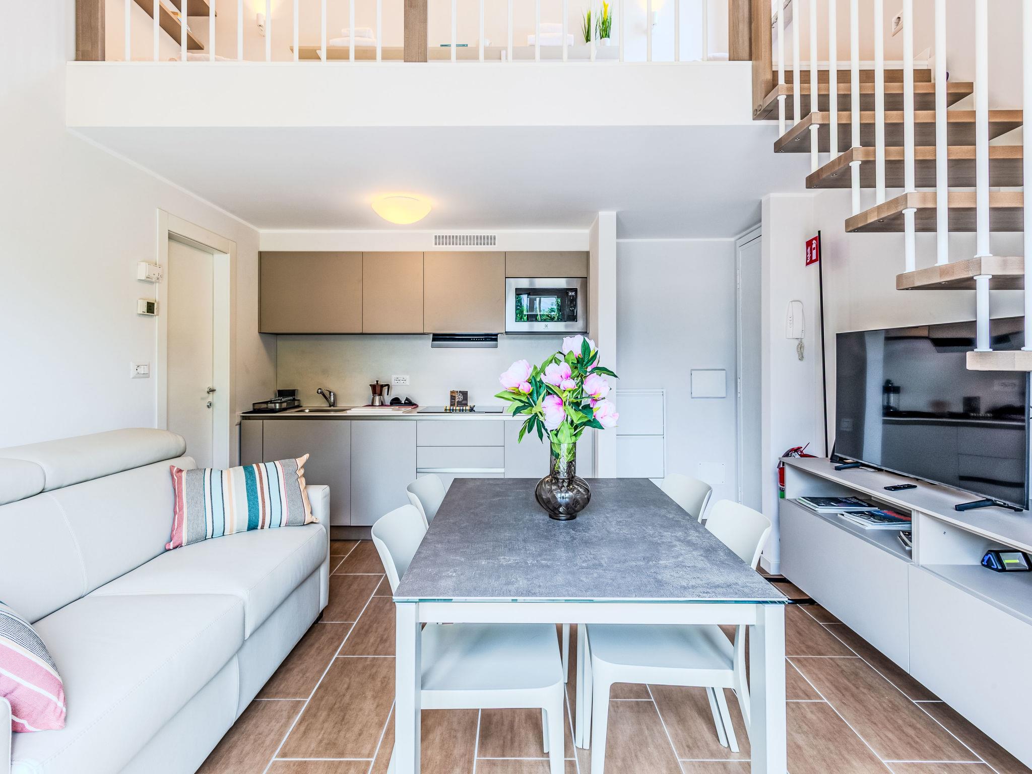 3-room apartment 45 m2 on 2 levels on 1st floor. Comfortable furnishings: open living/sleeping room with TV. Exit to the balcony. 1 double bedroom. Small, open kitchen (dishwasher, 4 induction hot plates, toaster, electric coffee machine). Shower/bidet/WC. Gas heating, air-conditioning. Heating available only from 15.10. to 15.04. Upper floor: open gallery with Dressing room with 2 beds. Balcony. Balcony furniture. Facilities: hair dryer. Internet (WiFi, free). Garage (1 car), height 200 cm, width 215 cm. Please note: non-smokers only. Private entrance, fire extinguisher. IT013089C258KQABC4