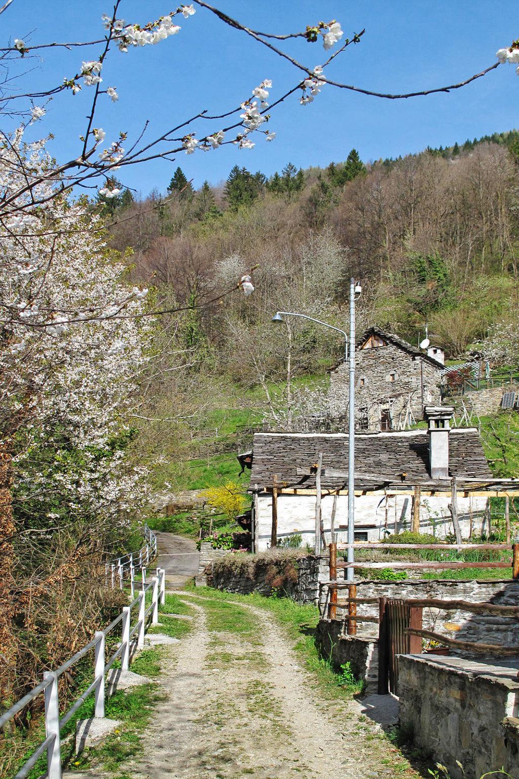 Rustic house "Baita Anita", 550 m a.s.l.. In the hamlet Anunzo 6 km from the centre of Domodossola, 45 km from the centre of Verbania/Intra, 47 km from the centre of Locarno, on a slope, 45 km from the lake, in the countryside. Private: natural state property 100 m2, terraced garden (fenced), meadow, orchard. 100 m long steep, narrow motor access (via unmade road, mountain road). Public parking 200 m. Shop 3 km, supermarket 6 km, bus stop 6 km, railway station "Domodossola" 6 km, pebble beach 47 km. Please note: car recommended. Please note: the fireplace in the living is the only heating option for the whole house (there is, however, an inlet to the bedroom).