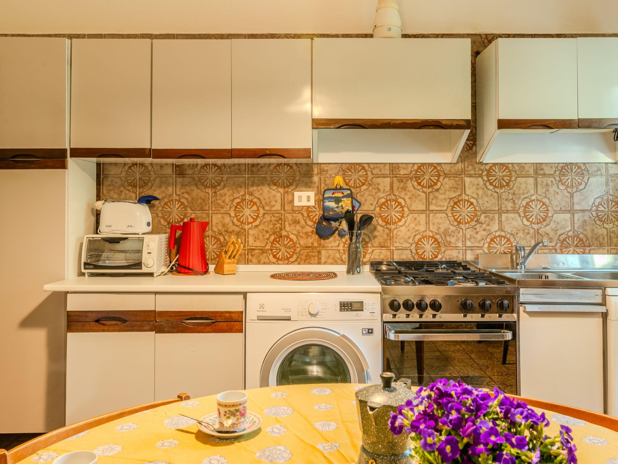 3-room apartment 95 m2 on 1st floor. Practical and rustic furnishings: small living room with TV. Exit to the balcony. 1 double bedroom. Exit to the balcony. 1 room with 1 bed and shower/WC. Exit to the balcony. Kitchen (oven, dishwasher, Gas stove, 4 gas rings, toaster, kettle, freezer) with dining table. Shower/bidet/WC. Gas heating. Heating available only from 15.10. to 30.04. Natural stone floors. Large balcony, small balcony, large terrace. Balcony furniture. Partial view of the lake and the mountains. Facilities: washing machine, hair dryer. Internet (WiFi, free). Parking. Please note: non-smokers only. Private entrance, smoke alarm, fire extinguisher. IT013090C22CSV8CIX