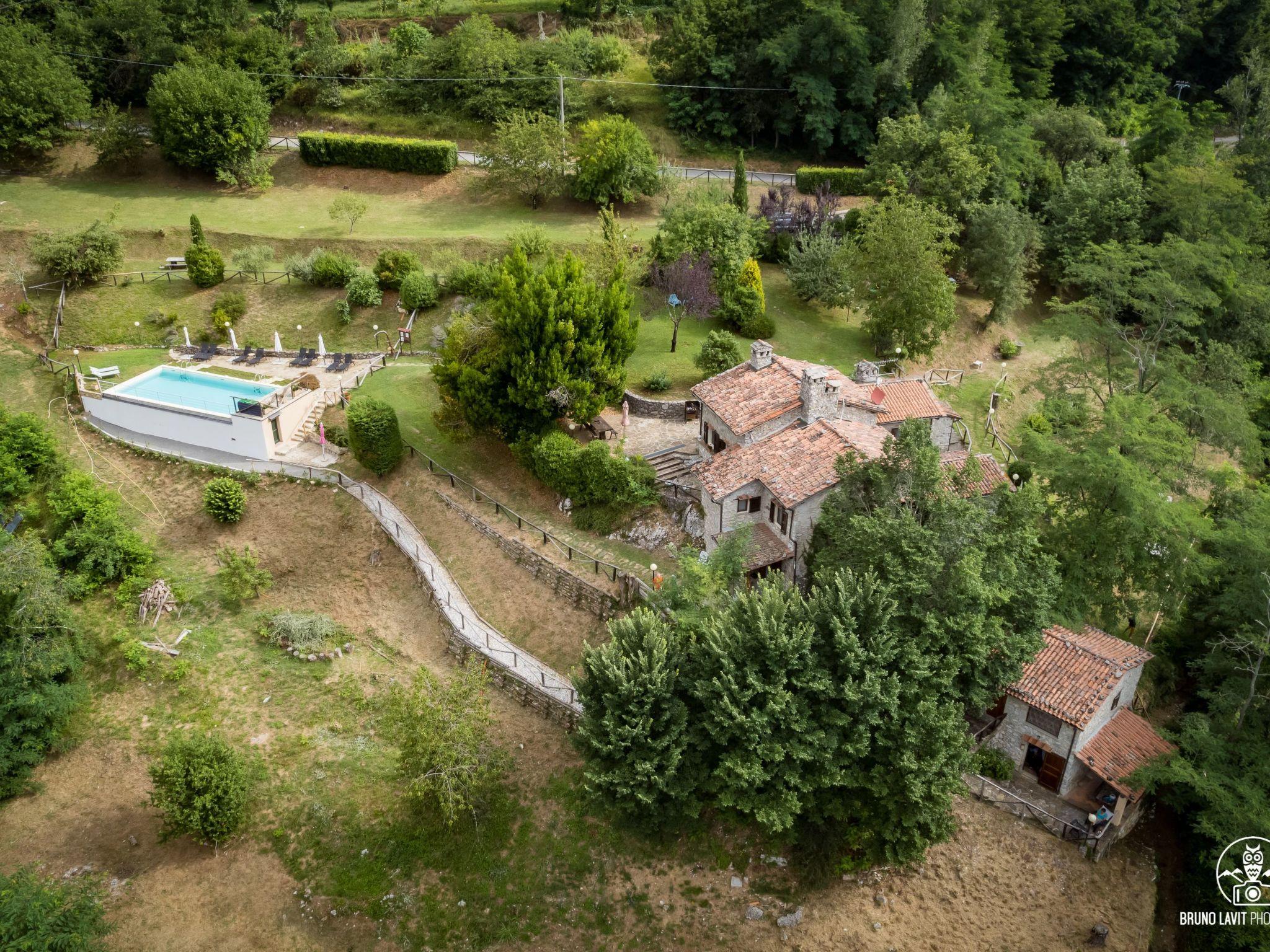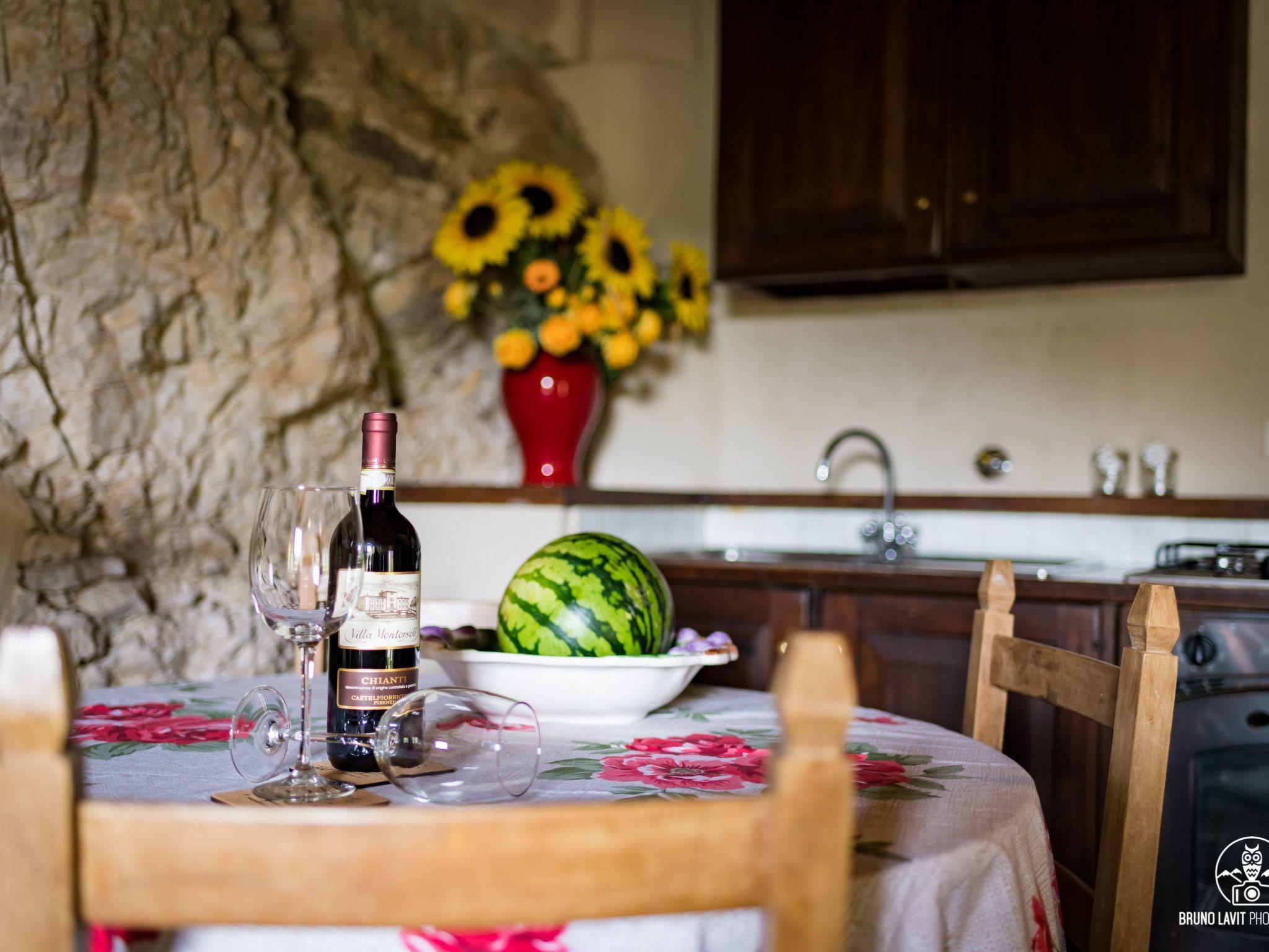 This hay-loft is separated from the main house and can be reached by a path to the left of the cottage that leads directly to the open gallery of this apartment. Since the path is a bit steep, we do not recommend this apartment to elderly persons. Instead, it is ideal for young couples on their honeymoon because it is separated from the rest of the cottage, and the open gallery offers a magnificent view of the century-old forests of the Apuan Alps. From the gallery one can access the living room. Also here there is beautiful fireplace and a bed couch. The dining table is close to a door that opens up to the terrace. In a corner created by the wooden staircase upwards, is a fully equipped kitchen. At the end of the stairs is a double bedroom, with a window door to the upper terrace, and a window where the original, typical windscreen bricks have been preserved. In the bedroom, a door leads to a small fully equipped bathroom. The apartment is genuinely beautiful with the old stones that appear here and there on the surface of the white walls.