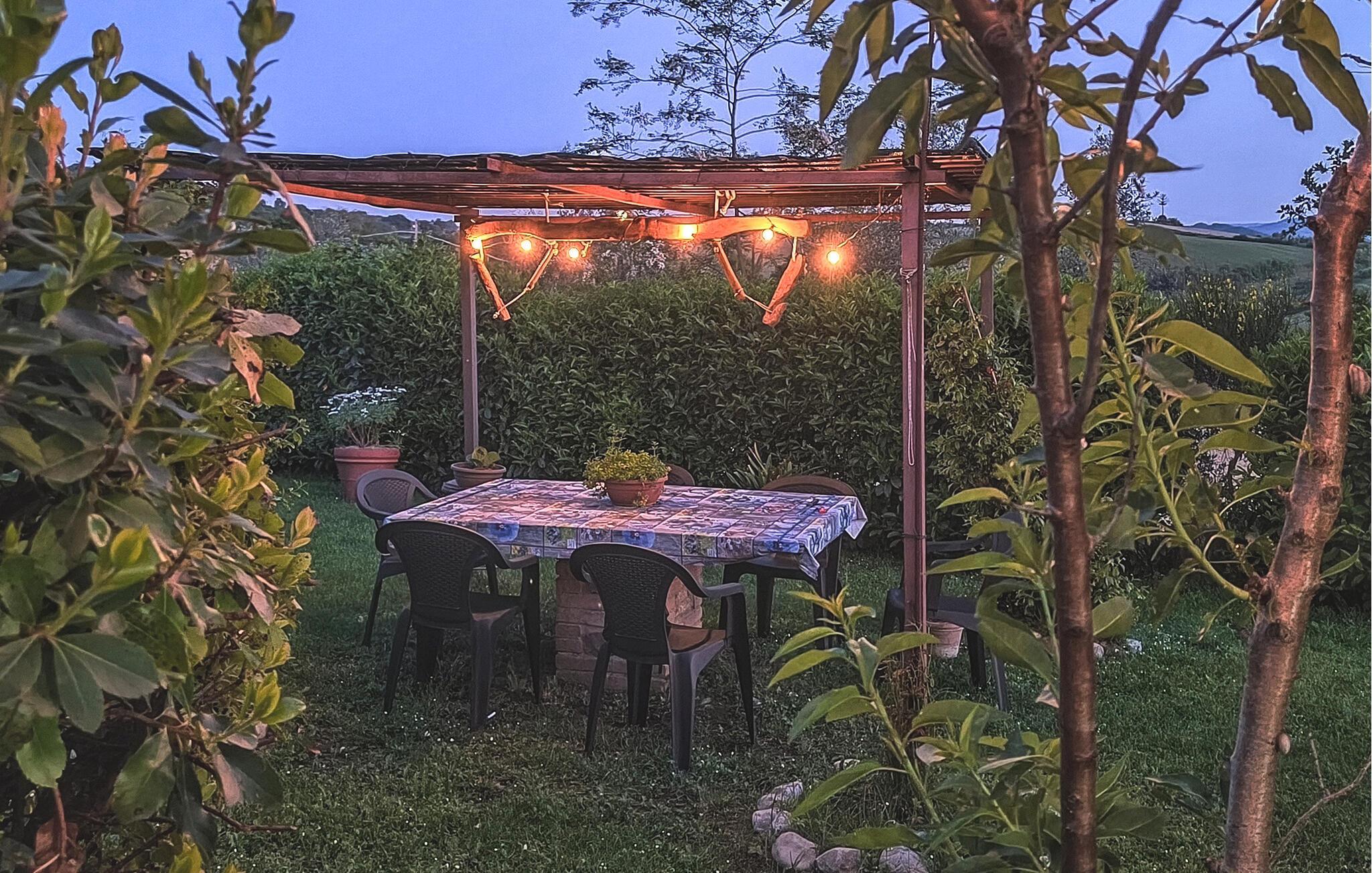 Servera din frukost under den romantiska pergolan och låt dina barn leka i den mysiga trädgården. Använd den murade grillen för att njuta av mysiga kvällar i det fria.
