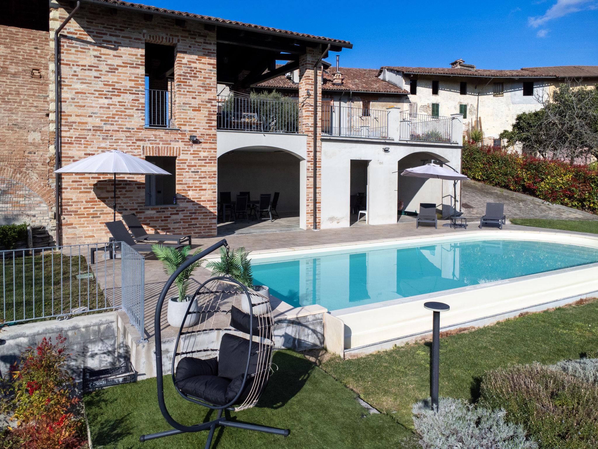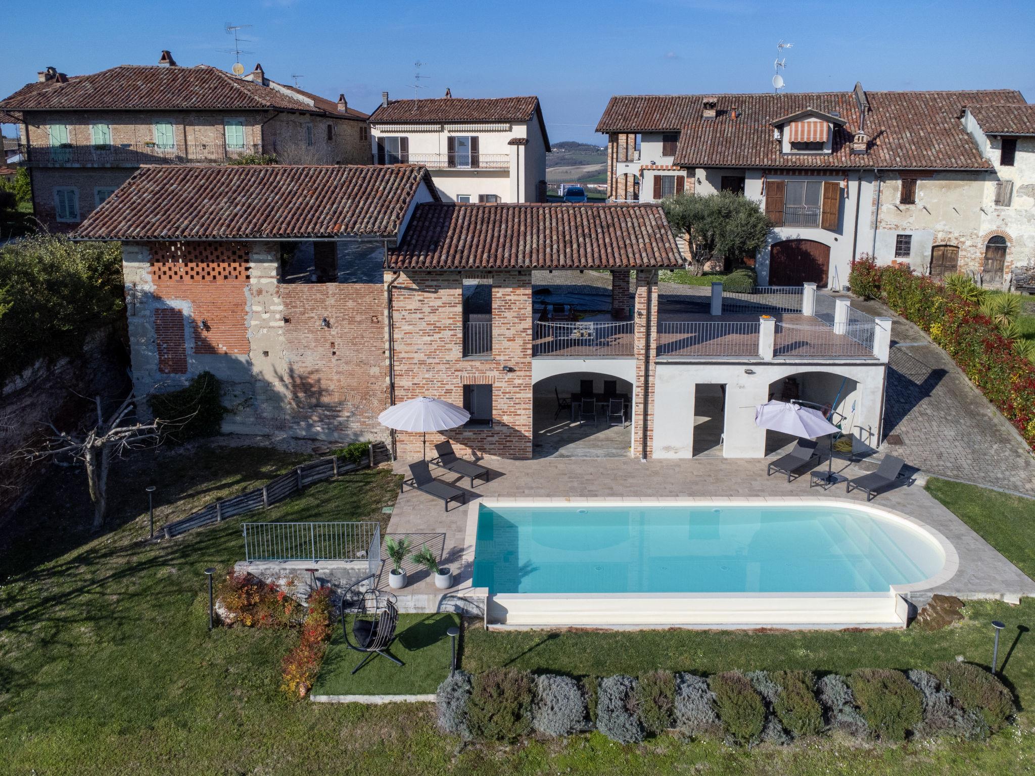 Cosy country house. In the district of Varengo, 4 km from the centre of Gabiano, in a sunny, elevated position. For shared use: swimming pool (11 x 4 m, depth 130 cm, seasonal availability: 01.May. - 31.Oct.). Shower/WC in the pool area, patio, garden furniture, parking (for 2 cars) at the house. Grocery 4 km, restaurant 500 m, bar 4.5 km, bus stop 450 m. Nearby attractions: Casale Monferrato 25 km, Parco Naturale del Sacro Monte di Crea 15 km. Please note: car recommended. The owner lives on the same property.