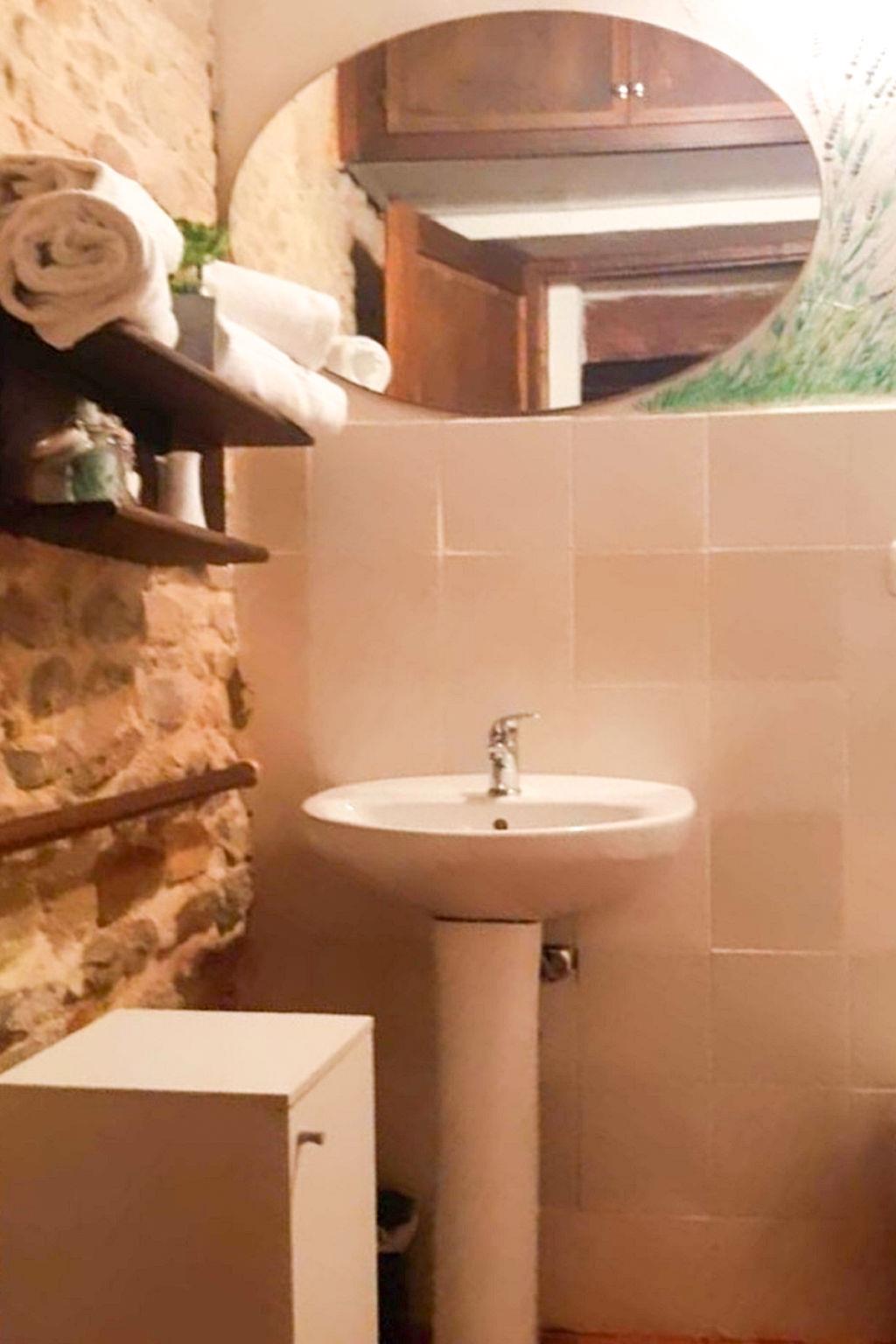 Parco San Bartolo: Rustic, simple, historical cottage "Casamare Gabicce", 2 storeys, from the 17th century, surrounded by meadows and fields. 8 apartments in the residence. Above Baia Vallugola 2.7 km from the centre of Gabicce Monte, 5 km from the centre of Cattolica, outside the resort, in a secluded, sunny position on top of a hill, 1.5 km from the sea, 1.5 km from the beach, in the countryside. For shared use: natural state property, garden (not fenced) with plants and trees, meadow, swimming pool (40 m2, depth 120 cm, seasonal availability: 01.Jun. - 15.Oct.). Unconventional pool shape. Outdoor shower, hot tub, patio, terrace, garden furniture. In the complex: WiFi. Linen change weekly. Towel change 2 times per week. Room cleaning on request (extra). 200 m long motor access (via unmade road). Parking on the premises. Shop 1.5 km, supermarket 7 km, bus stop 800 m, railway station "Cattolica" 5 km, pebble beach "Baia Vallugola" 1.5 km. Marina 1.5 km. Nearby attractions: Gradara 3.5 km, Casteldimezzo 3.5 km, Pesaro 13 km, Rimini 30 m. Hiking paths: Parco San Bartolo 200 m, Parco Sasso Simone Simoncello 55 km. Please note: car recommended. Local sale of farm products.