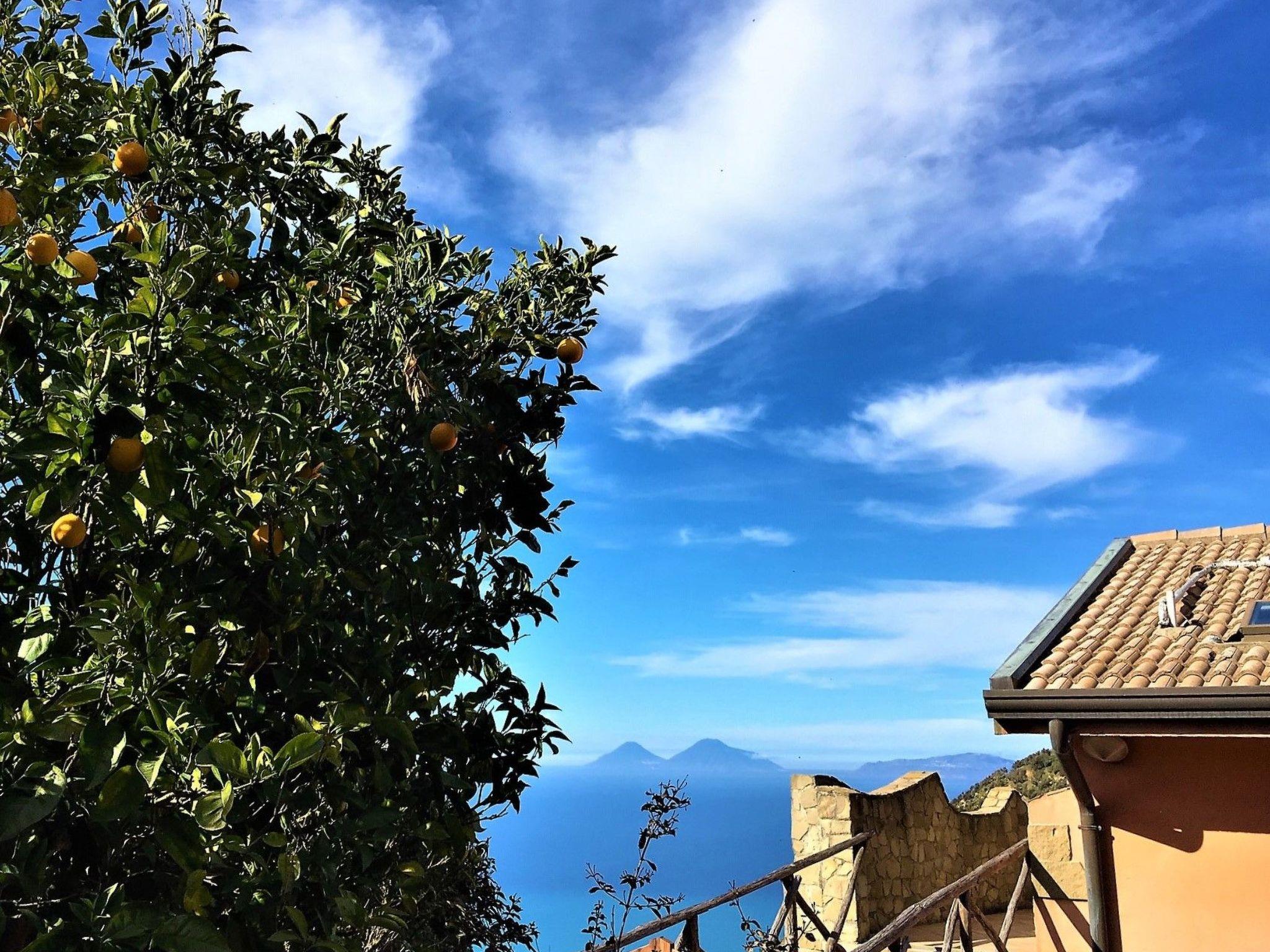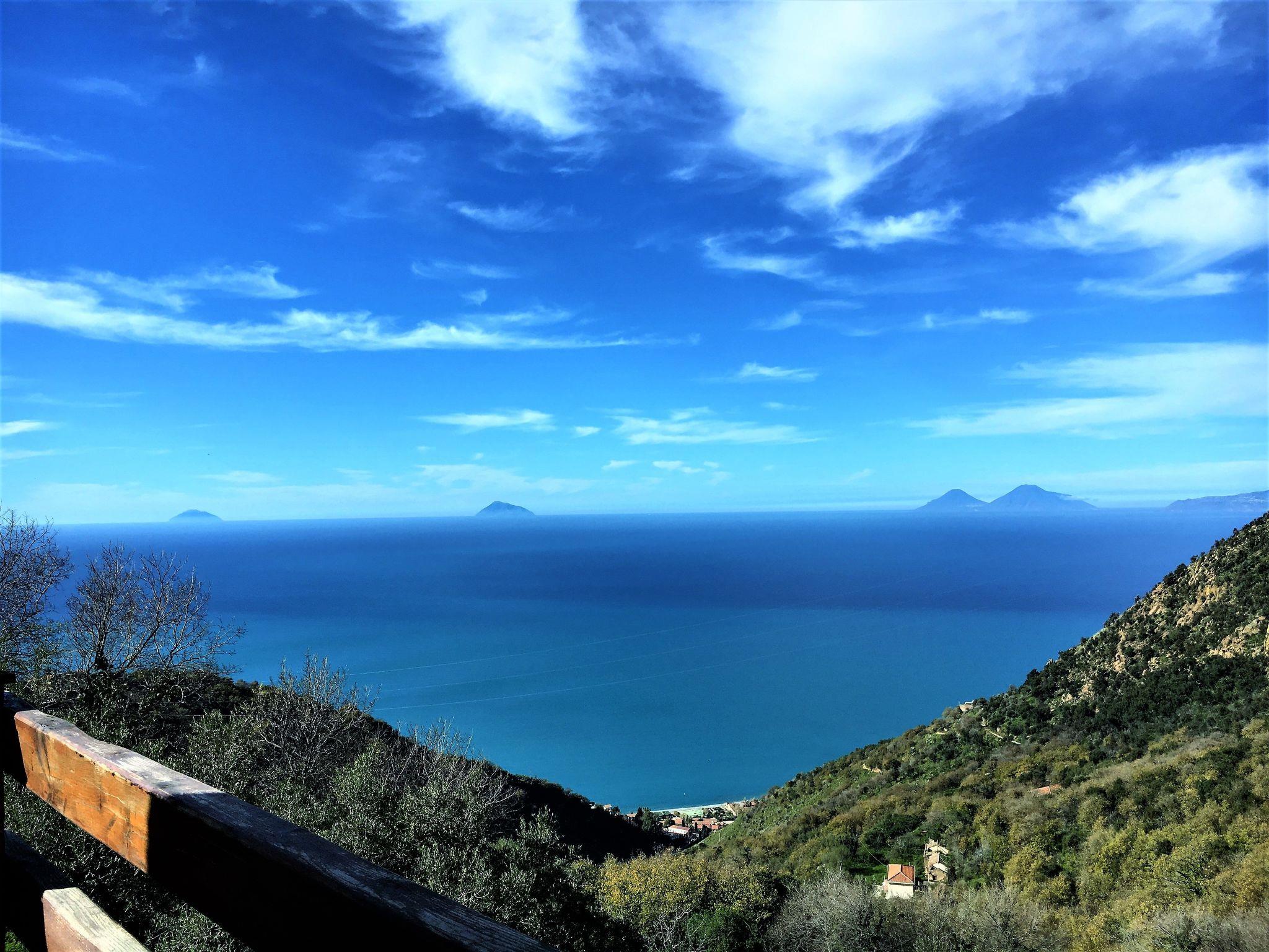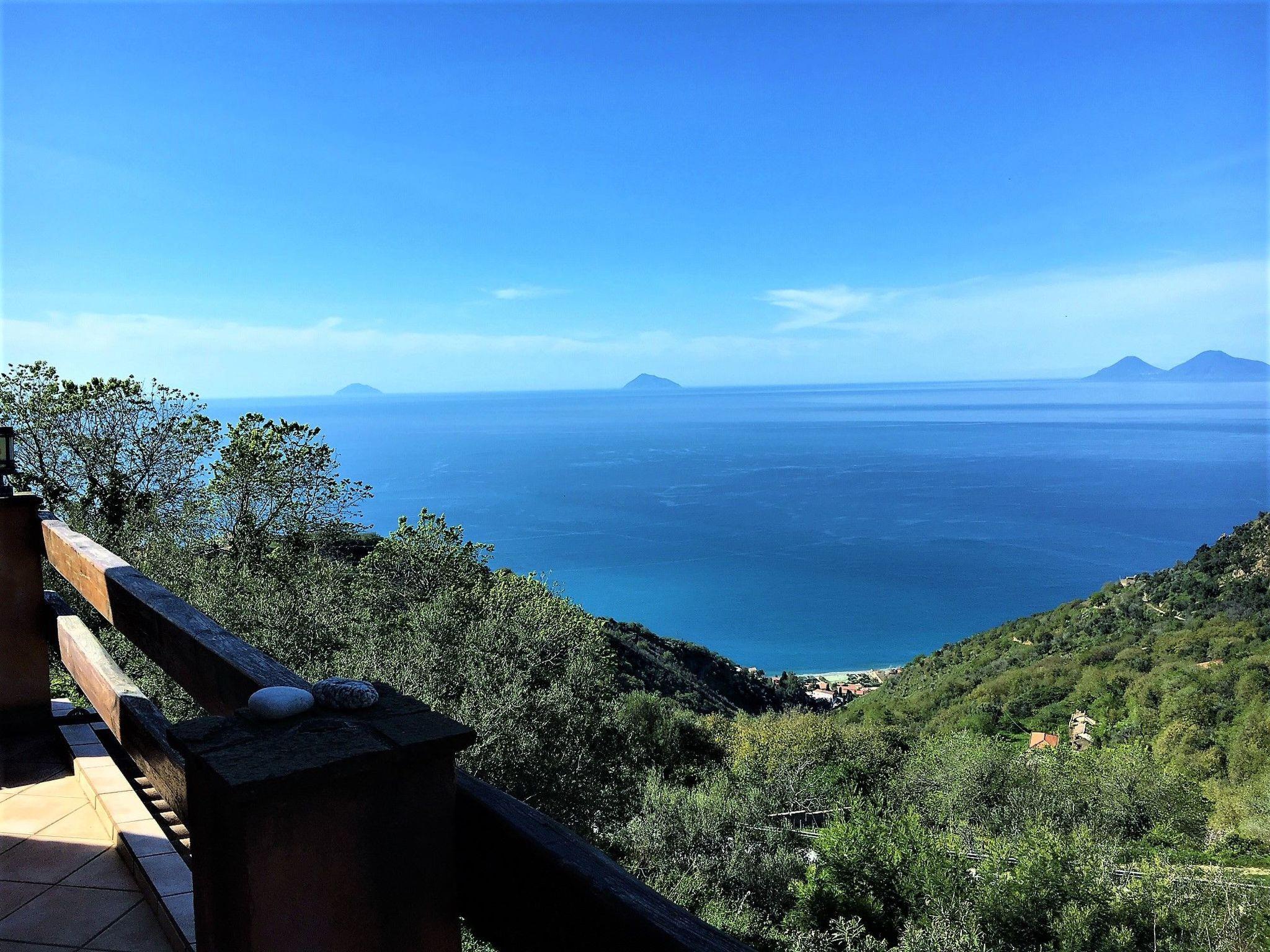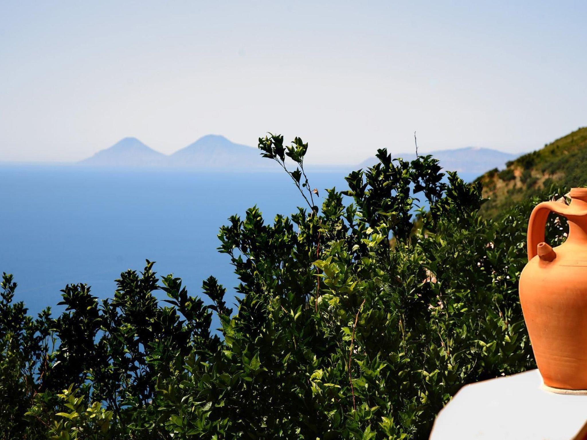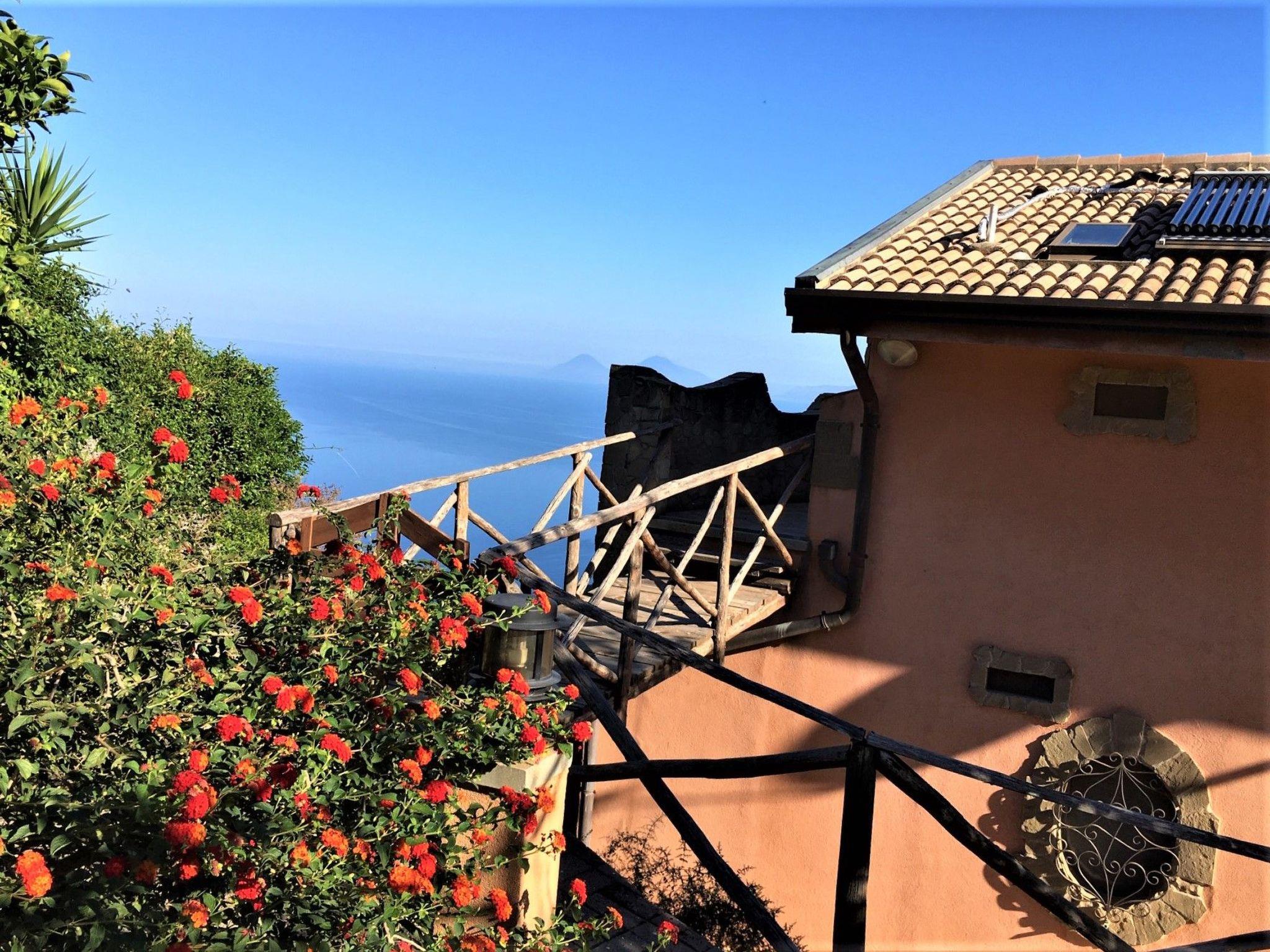 Possibility of using the outside kitchen with barbecue. From the garden and the orchard you have an enchanting view of the sea and the Aeolian Islands.