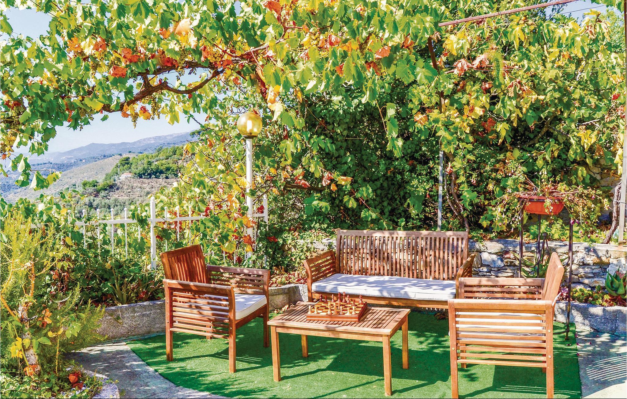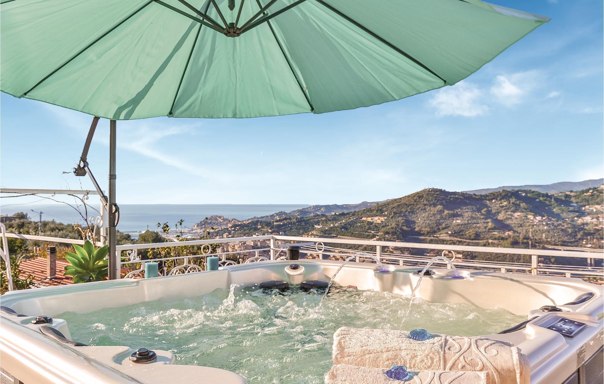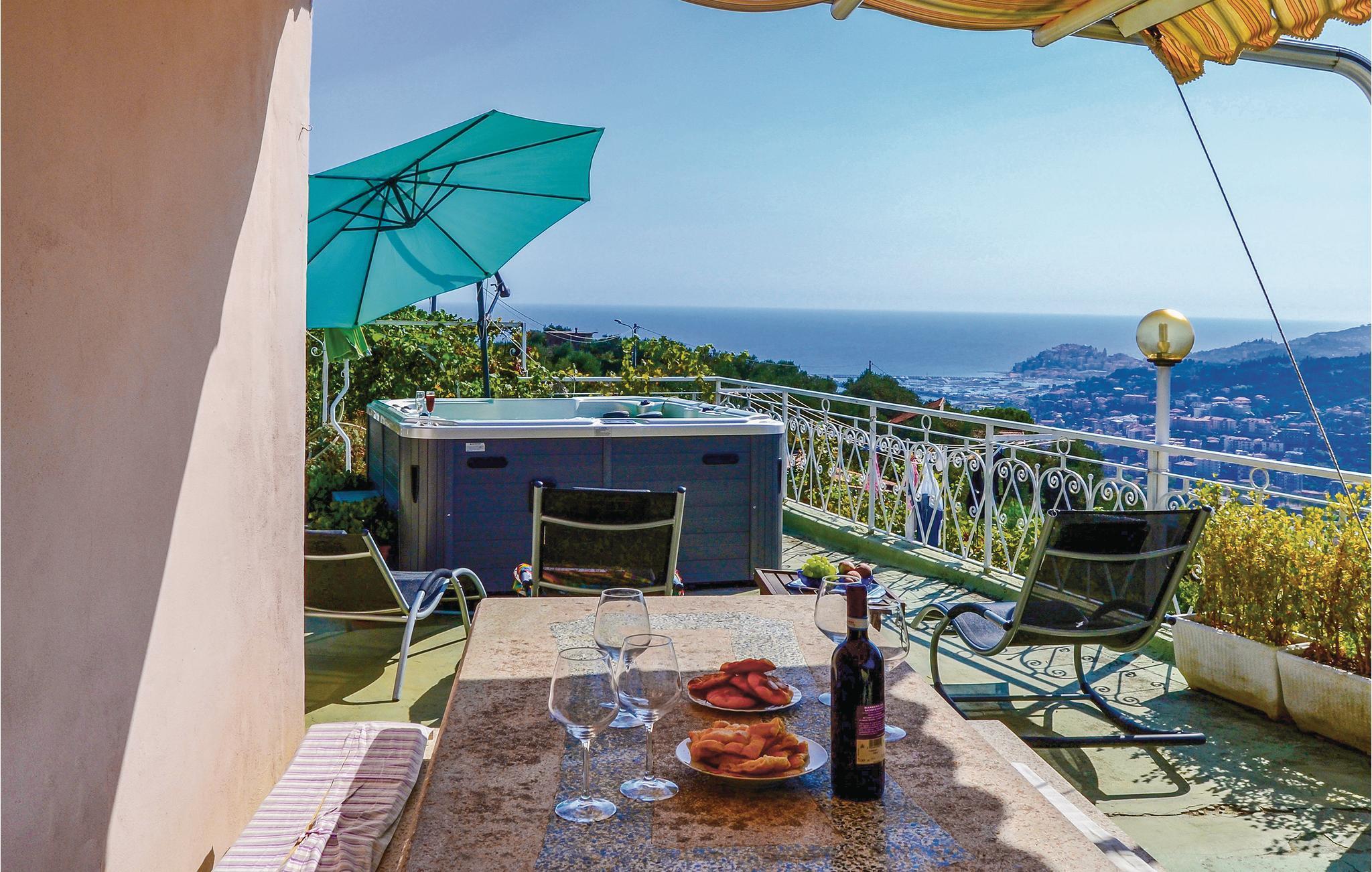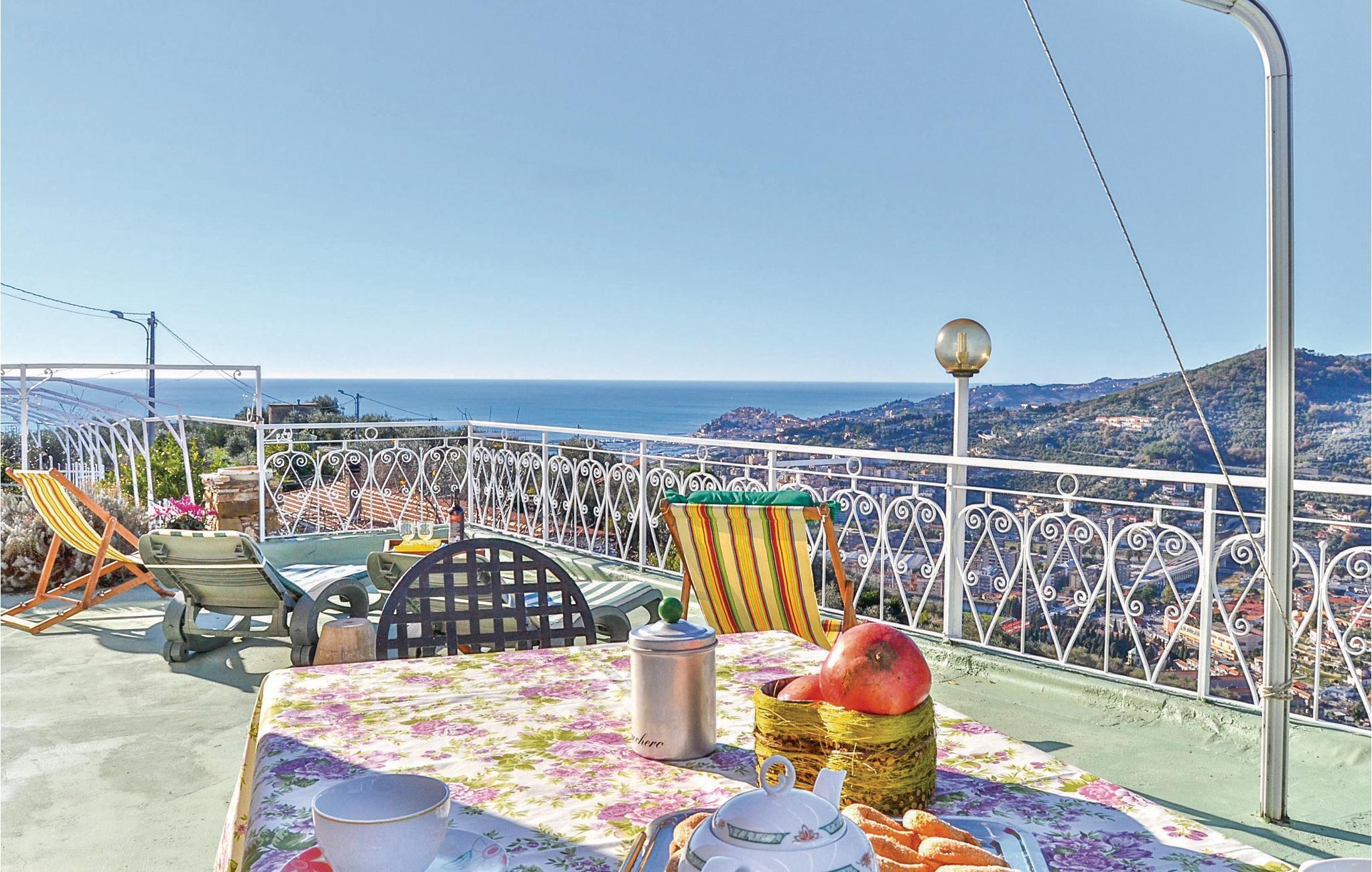 Härligt semesterhus med utsikt över havet, bara några kilometer från stränderna och några minuter från den berömda Villa Grock. Boendet är smakfullt inrett, erbjuder ett stort utrustat utomhusområde och har en bowlingbana och en gunga. Ungefär 4 km bort ligger Imperias centrum, känt för sina stränder med fin gyllene sand och viktiga evenemang, bland annat Vele d'Epoca, tillägnad historiska vattenskotrar, med regattor, auktioner och guidade turer. Tack vare det goda läget kan man lätt nå inlandets byar och slott, Hanburys botaniska trädgård, termalbadet i Pigna och den berömda blomsterstaden Sanremo. Uppmärksamhet: Vägen till boendet är mycket brant, smal och med mötande trafik.