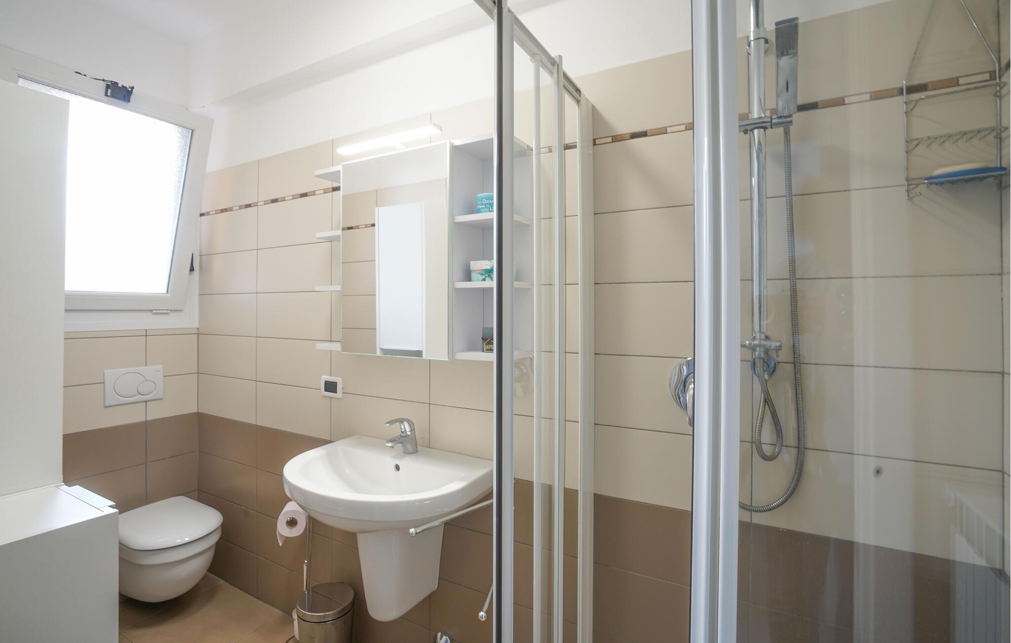 Badrum (nr. 1) - WC: Varmt och kallt vatten. Dusch