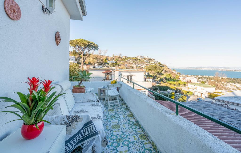 Högt belägen över Ischias kommun har man från balkongen utsikt över hela staden ner till det blå havet. Om du väljer att laga mat hemma kan du ta dina måltider antingen inomhus eller i uteserveringen, där du kan njuta av långa medelhavskvällar i den friska luften. Själva lägenheten är stor och synnerligen hemtrevlig.