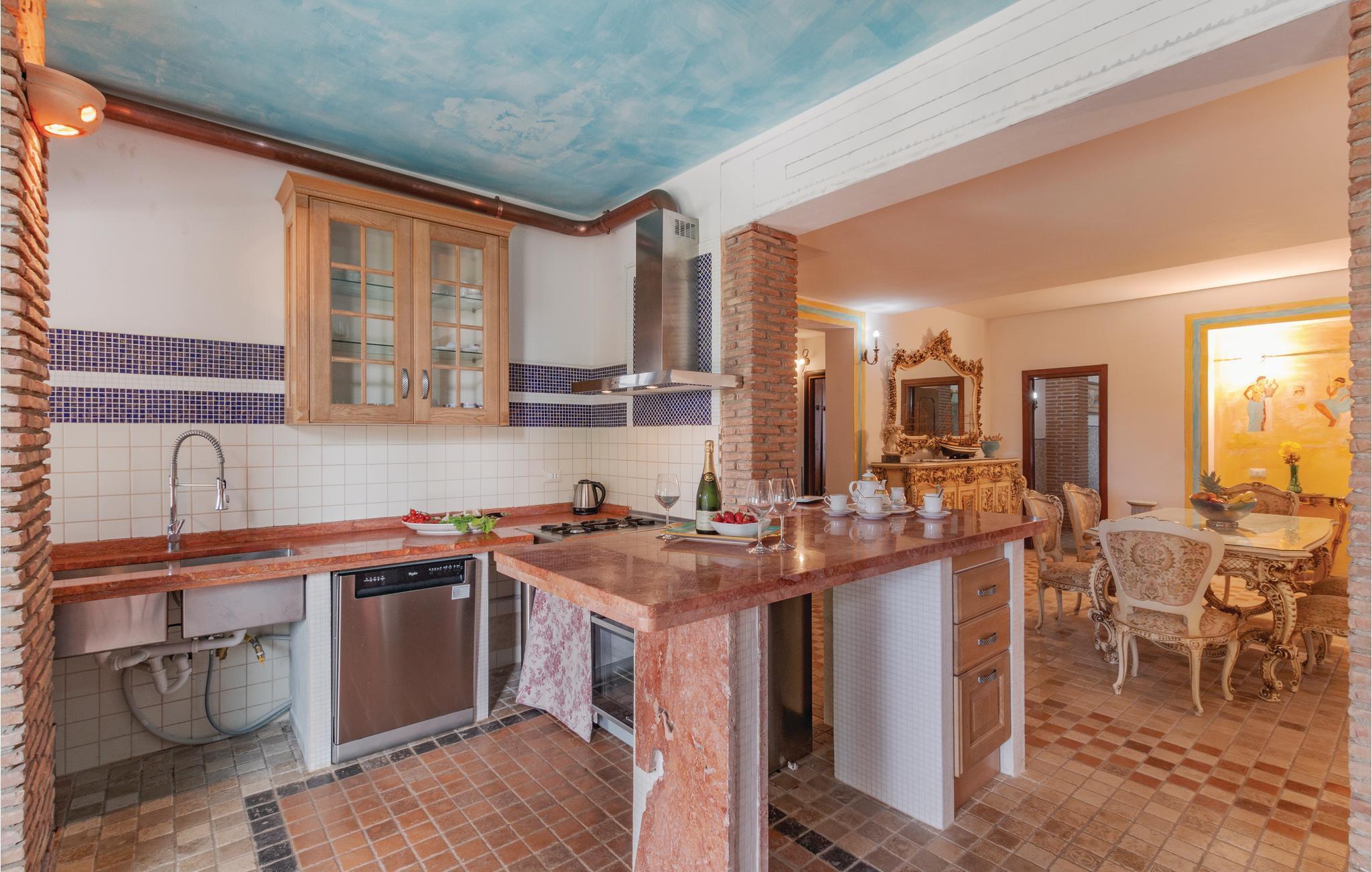 Stor och välutrustad semestervilla med privat pool, bara 10 km från stranden i Sperlonga med sin pittoreska gamla stad och arkeologiska platser. Den ligger på en 1,5 hektar stor egendom med olivlundar, vingårdar och ekar, ett riktigt paradis mitt i Lazio-regionens gröna medelhavsvegetation. Det ligger på en 1,5 hektar stor egendom omgiven av olivträd, vingårdar och ekar, en idealisk plats för en lugn semester i naturen, men utan att behöva ge avkall på närheten till de välkända turistcentrumen: Formia, med shopping, hamn och färjor till öarna (12 km), Gaeta, med sina utrustade badorter, naturparken Monte Orlando och de medeltida monumenten i gamla stan (13 km), Sperlonga, med sitt pittoreska centrum och sina arkeologiska platser (10 km). På drygt en timme når du Rom och Neapel, idealiska destinationer för dina dagsutflykter. Gästerna har till sitt förfogande en stor rektangulär och sandfärgad pool utrustad med solstolar, ett stort lusthus med soffor, en utomhusdusch och en rymlig grillplats. Huset består av två enheter, dessa är inte sammankopplade internt. En stor terrass möblerad med bord och soffor gör att gästerna kan njuta av de svala sommarkvällarna och sina måltider utomhus. Boendet sträcker sig över två våningar och består av två enheter som inte är sammankopplade internt. Bottenvåning: Lägenhet med fyra dubbelrum, två av dem med eget badrum, i ett av de större sovrummen finns möjlighet till en extrasäng, ett stort badrum med separat dusch, ett rymligt vardagsrum uppdelat i vardagsrum med soffor och satellit-TV och matplats med stort bord i venetiansk stil. Det fantastiska köket erbjuder direkt tillgång till den stora terrassen med utsikt över trädgården . Första våningen är oberoende av bottenvåningen: stor ingång och vardagsrum med öppen spis och ljust kök med utsikt över det gröna landskapet och en terrass möblerad med bord och stolar. Det finns tre dubbelrum och två badrum med dusch.