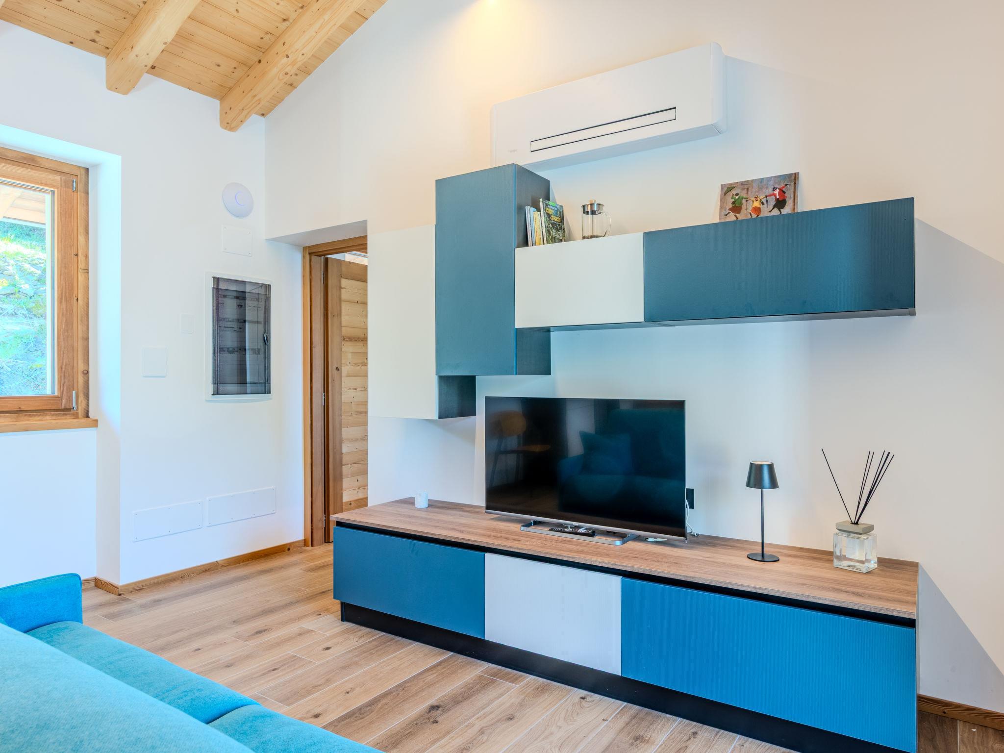 "Svasso", 2-room apartment 50 m2 on 1st floor. Tasteful furnishings: open living/sleeping room with 1 double sofabed, dining table and TV. Exit to the balcony. 1 double bedroom. Open kitchen (oven, dishwasher, 4 induction hot plates, toaster, kettle, microwave, electric coffee machine). Shower/bidet/WC. Air-conditioning, floor heating. Balcony 30 m2, south facing position. Balcony furniture. Marvellous view of the lake and the mountains. Facilities: children's high chair, baby cot for up to 2 year olds, hair dryer. Internet (WiFi, free). Parking (1 car). Please note: non-smokers only. Fire extinguisher. IT014075C28ULTUPRJ