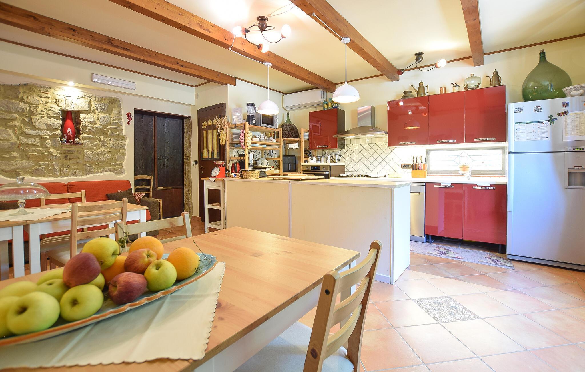 I semesterlägenheten finns ett välutrustat, modernt kök där du kan laga en italiensk middag. Njut av dina måltider i den rymliga matplatsen, som skapar en inbjudande atmosfär med mycket trä och varma färger. Dra nytta av terrassen för att njuta av din frukost med utsikt över det förtrollande omgivande landskapet. Slå dig ner i den mysiga trädgården, som är möblerad med bekväma sittplatser och solstolar, och njut av lugnet och grönskan omkring dig. Din bubbelpool ger ren avkoppling.