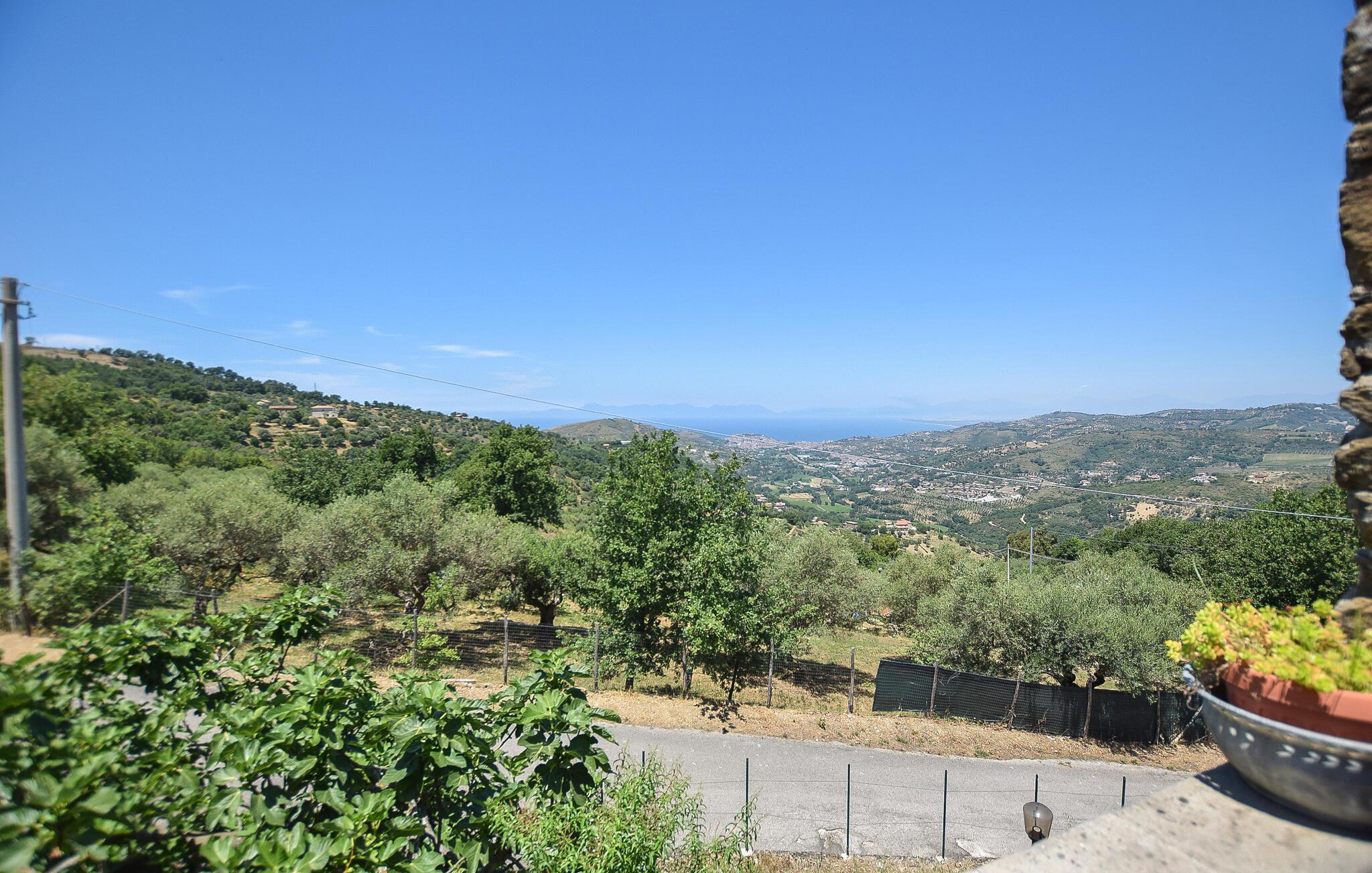 På kvällen kan du slå dig ner med ett glas vin på terrassen till din semesterlägenhet och njuta av solnedgången över de böljande kullarna i Laureana Cilento.