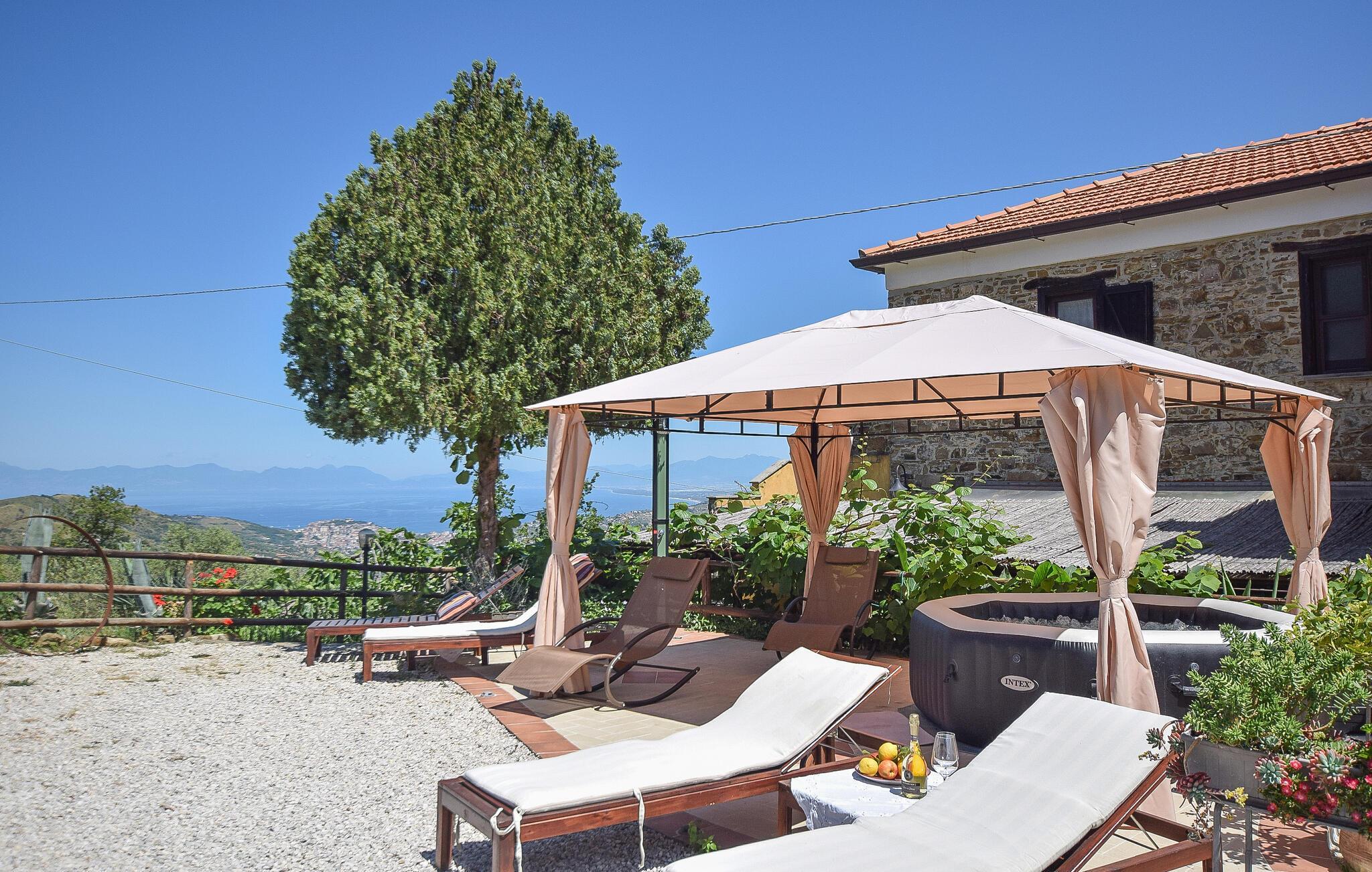 Upptäck detta mysiga semesterhus med vacker utsikt och bubbelpool.