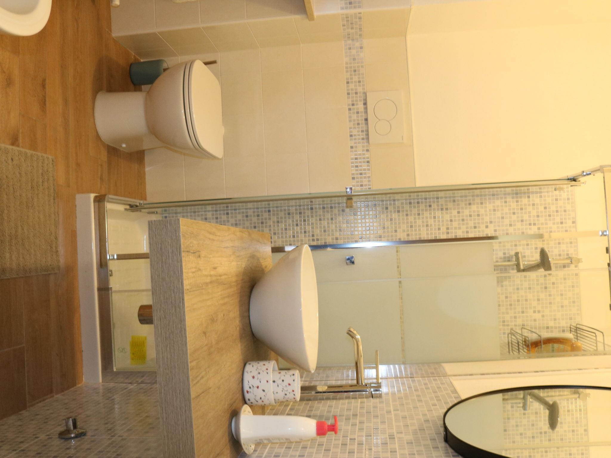 2-room apartment 45 m2 on 1st floor. Bright, beautiful furnishings: living/sleeping room with 1 double sofabed, dining table, satellite TV and flat screen. Exit to the balcony. 1 double bedroom. Open kitchen (oven, dishwasher, 4 gas rings, microwave). Shower/bidet/WC. Gas heating (extra). Balcony, west facing position. Balcony furniture. Distant view of the lake. Facilities: Internet (WiFi, free). Parking. Please note: non-smokers only. Maximum 1 pet/ dog allowed. IT023043B48N8BHZOI