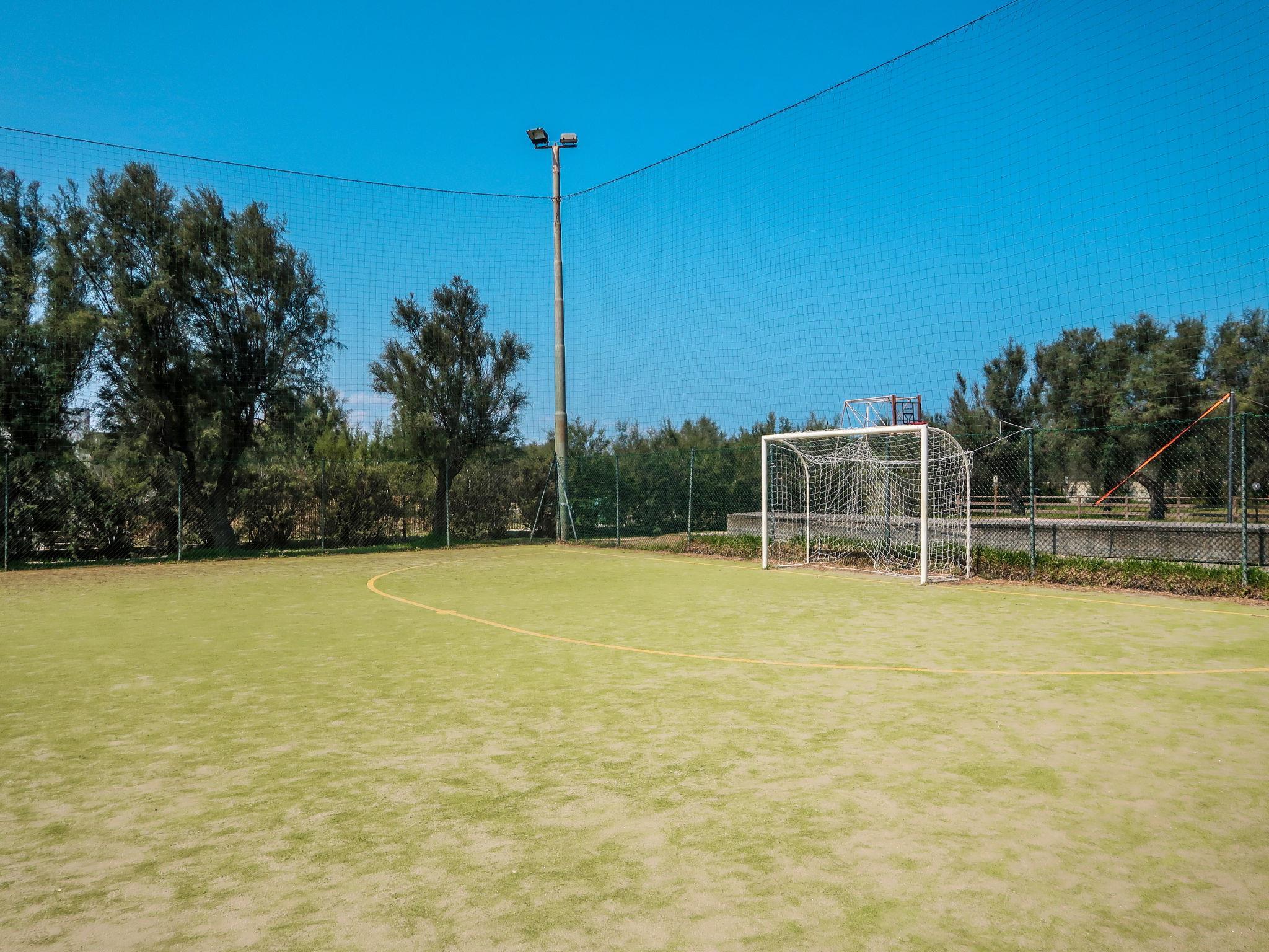 Salento: Large, child friendly holiday village "Happy Camp Mobilhome Torre Rinalda". Outside the resort Torre Rinalda, 150 m from the sea, direct access to the beach. For shared use: property 15 ha (fenced) with trees, lawn for sunbathing, swimming pool (25 x 15 m, depth 80 - 120 cm, seasonal availability: 01.Jun. - 08.Sep.). Children's pool, tennis (extra), basketball, volleyball, children's playground. In the complex: reception, restaurant, bar, WiFi, shopping facilities, kiosk, washing machine (for shared use, extra), bicycle rental. Parking. Grocery 2.8 km, supermarket 5.6 km, bus stop 1.5 km, sandy beach 150 m. Nearby attractions: Torre Chianca 8 km, San Cataldo 21 km, Lecce (shuttle bus extra) 28 km, Brindisi 30 km. Please note: car-free holiday complex. Entertainment in the season. Suitable for families. The owner does not accept any groups. The owner does not accept any youth groups. Loading and unloading of baggage is possible at the holiday house. Residence with electric gates. Obligation to wear bathing caps.