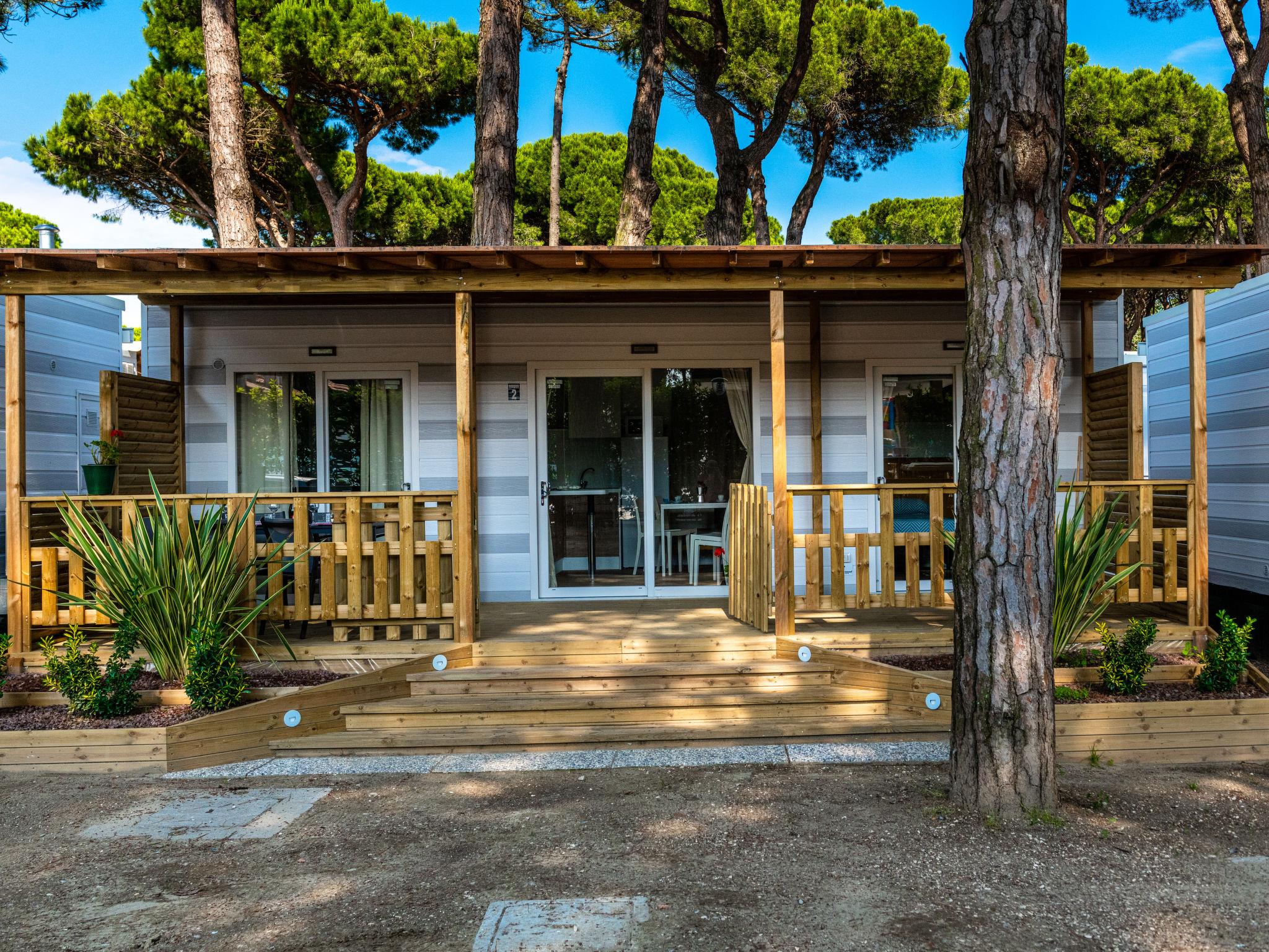 "Ambra", 3-room mobile home 34 m2. Object suitable for 4 adults + 1 child. Modern furnishings: living/dining room with satellite TV, air conditioning and forced-air heating. Exit to the veranda. 1 double bedroom with shower/bidet/WC. Exit to the veranda. 1 room with 2 beds and 1 x 1 bunk beds, shower/WC. Exit to the veranda. Open kitchen (4 gas rings, microwave). Shower/bidet/WC. Air-conditioning, forced-air heating. Terrace roofed. Terrace furniture. Parking (1 car). Maximum 1 pet/ dog allowed. IT038006B17TCUP7WY