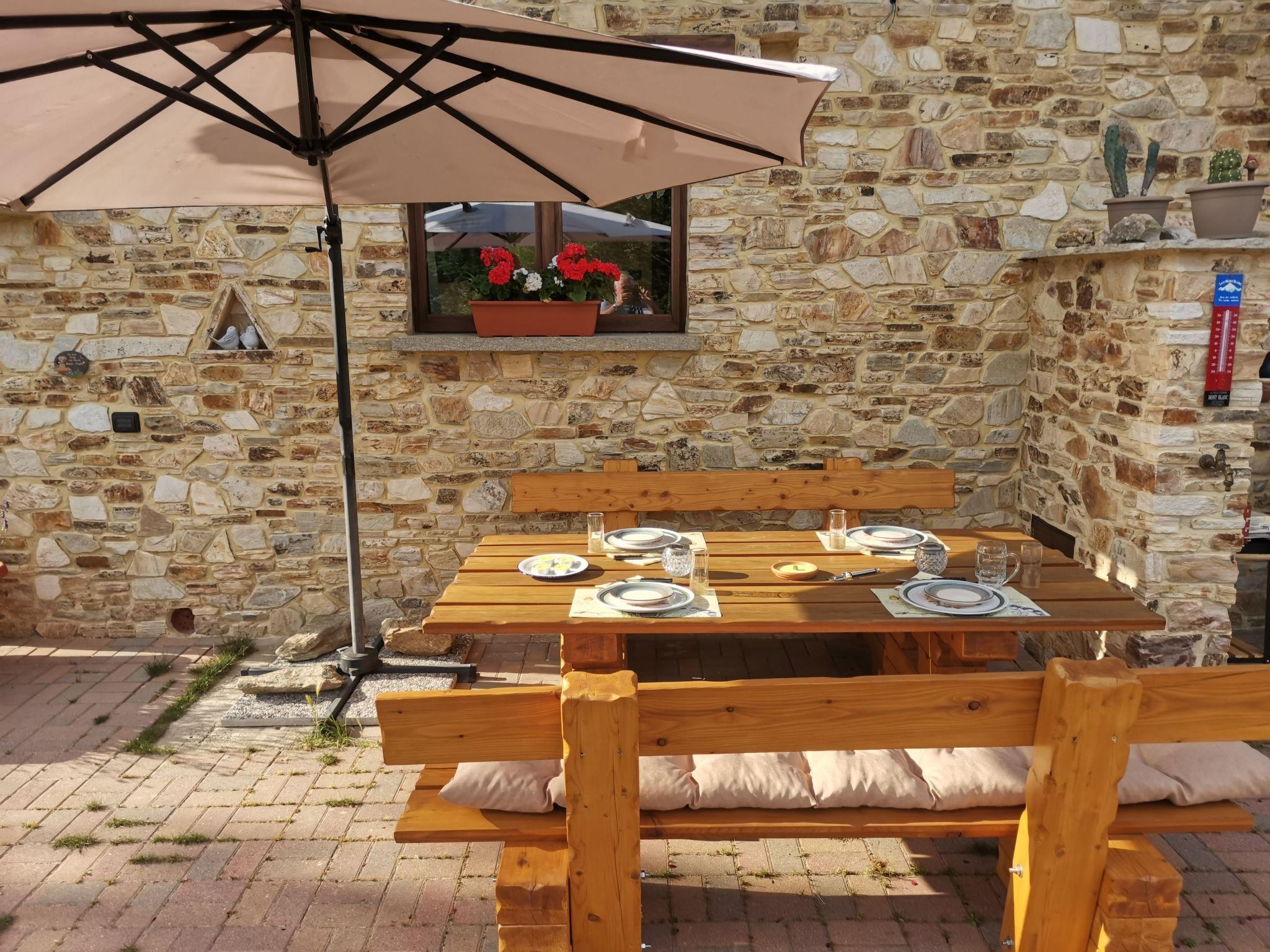 Our house is situated approx. 930 metres above sea level in an absolutely secluded location with a fantastic view of the Cuneo plain and the surrounding three thousand metre peaks of the Piedmont Alps. The south-facing location means we have glorious sunshine all day long. The holiday flat with approx. 45 sqm is located on the ground floor with its own entrance. W-Lan (WIFI) is available free of charge throughout the property and parking is available directly at the house. Access from Morra del Villar on a tarmac mountain road, the last approx. 150 m on a gravel road that is easy to drive on. Even in winter the road is cleared of snow up to the house. Our house is located at the entrance to the Valle Maira. As every season has its charm, here are just a few possibilities for an entertaining holiday. The Ligurian coast is about 100 km away with the famous beaches of Alassio, Sanremo or Monaco. For wine lovers and truffle connoisseurs, the Langhe is approx. 50 km away with the famous towns of Barolo and Alba not far away. In autumn we have chestnuts for tasting on our own property. In the snow-free season you can go on wonderful hikes or mountain bike tours in the valleys, the famous Percorsi Occitani hiking trail in our valley can be reached directly from the house. For the more sporty guests, we have several via ferratas and challenging high-altitude trails and climbing routes of all levels of difficulty in the valley (via ferrata equipment or snowshoes can be hired from us in winter). The take-off point for paragliders can be reached on foot. In winter, the valley is known for its wonderful ski tours. Thanks to the many hours of sunshine we have in the Southern Alps, ski tours can be undertaken in December even at suitable LWS levels. Our surrounding ski areas are also within easy reach (ski season in the ski areas from the end of November to the end of April depending on snow conditions), snowshoe hikes and ski tours can also be started directly from the house if the snow conditions are suitable. For everything worth knowing (including where to eat/shop) we are always at our guests' disposal. We would be delighted to welcome you (benvenuto) Your hosts Claudia & Peter