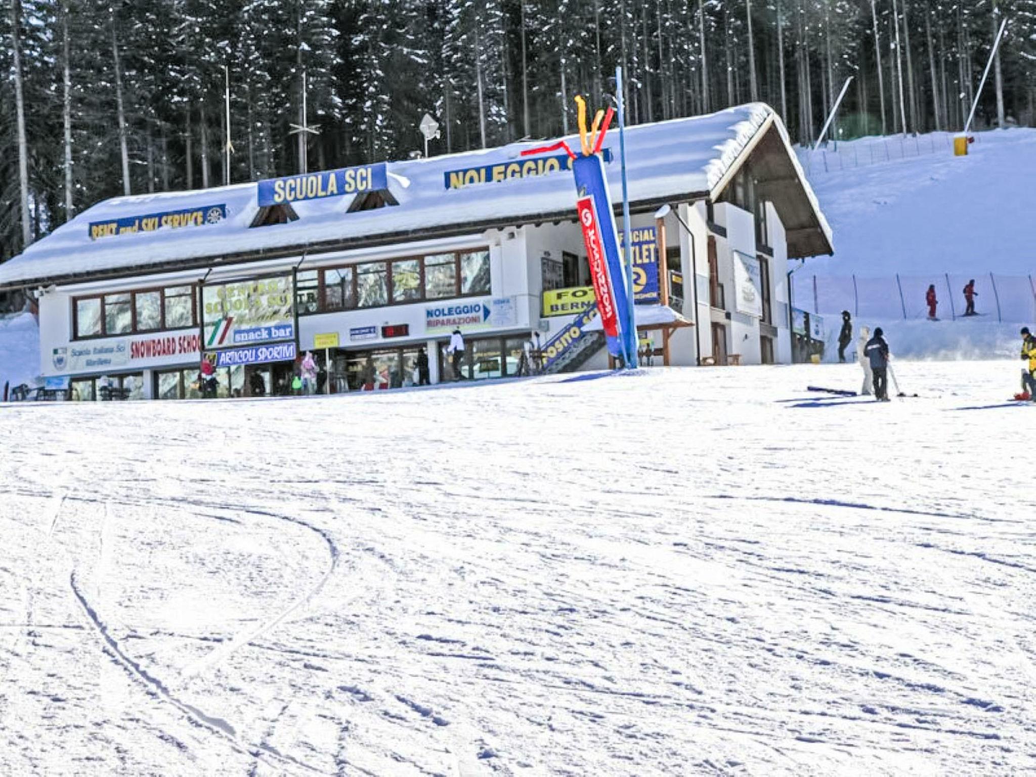 Marilleva 1400: Cosy, rustic residence "Residence Sole Alto", 2 storeys. 60 apartments in the residence. In the centre of Marilleva 1400 10 km from the centre of di Mezzana, in a quiet, sunny position, 50 m from the edge of the forest, 50 m from the skiing area, in the countryside. For shared use: natural state property with lawn. Children's playground. In the complex: reception, restaurant, bar, breakfast room, heating available only from 05.Dec. - 05.Apr.. Linen change weekly (suppl. charge extra). Towel change weekly (suppl. charge extra). Room cleaning weekly on request (extra). Breakfast and half board possible on request (extra). Parking on the premises. Grocery, supermarket, restaurant, bar 100 m, 1 minute walk to the centre, bus stop 100 m, railway station "Marilleva 900". Walking paths from the house 50 m, chair lift, gondola lift, skisport facilities 100 m, slopes 50 m, ski rental, ski bus stop, ski school, children's ski school, ski-kindergarten 100 m. Nearby attractions: Presepi di Ossana 14 km, Ponte di Legno 41 km, Madonna di Campiglio 33 km, Città di Trento 75 km, Terme di Pejo 25 km, Val di Rabbi 21 km. Well-known ski regions can easily be reached: Marilleva-Campiglio-Folgarida 100 m. Well-known lakes can easily be reached: Lago delle Malghette 6 km, Lago dei Caprioli 17 km, Lago di Covel 26 km. Hiking paths: Cascate di Valor 28 km, Ponte Tibetano 32 km, Cascate Saent 34 km. Please note: entertainment in the season. In case of good snow conditions, the house is accessible on skis. 24hr guard. Neighbourhood highly sensitive to noise. Quietness and good behaviour expected.