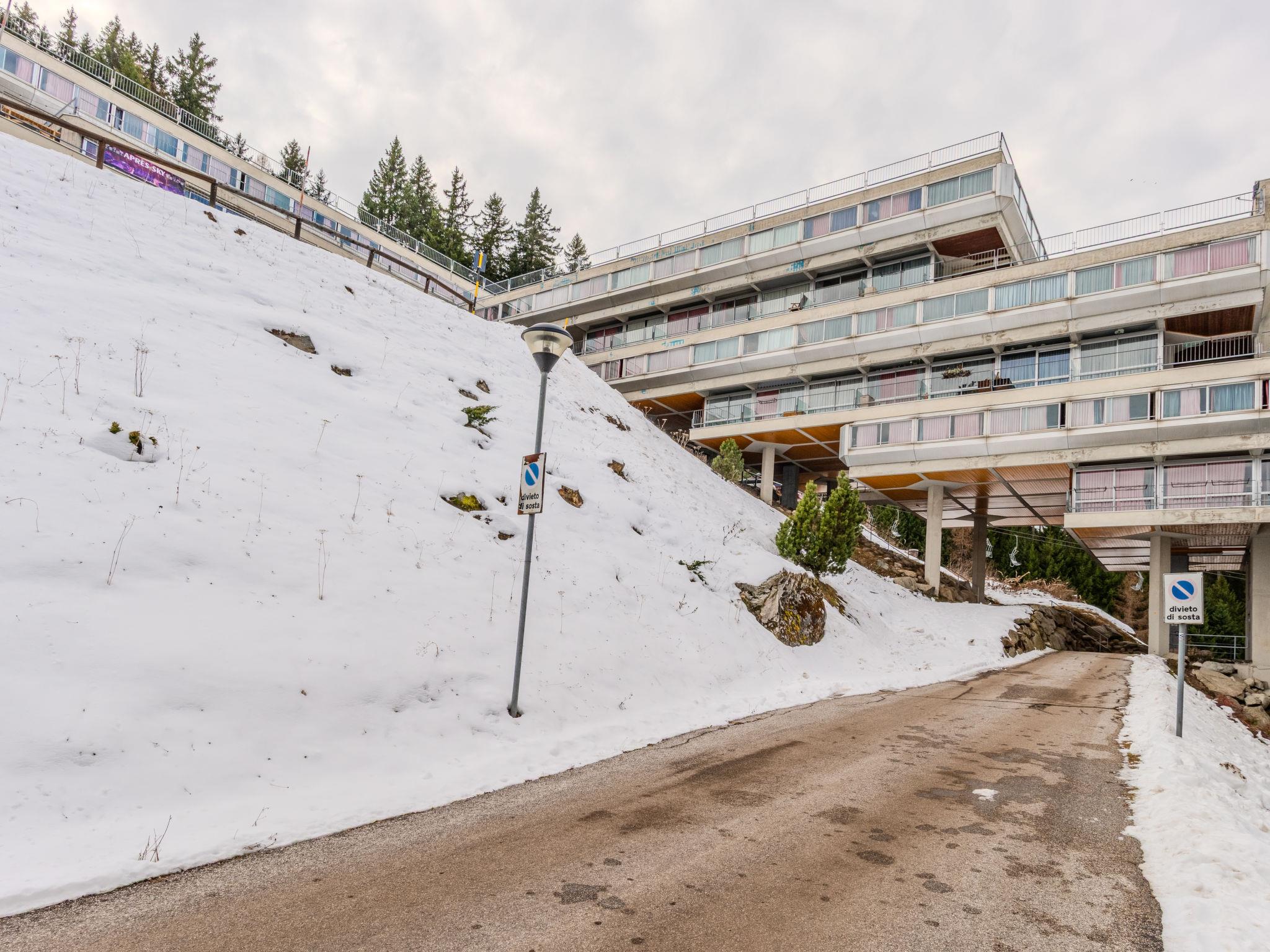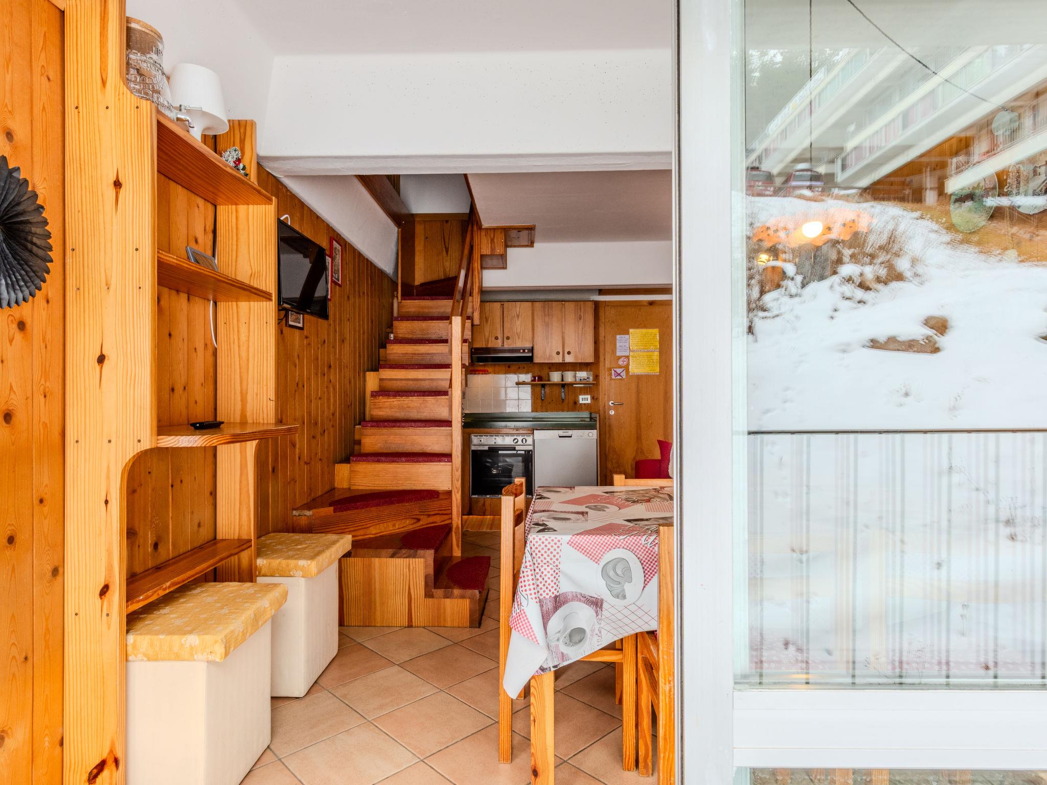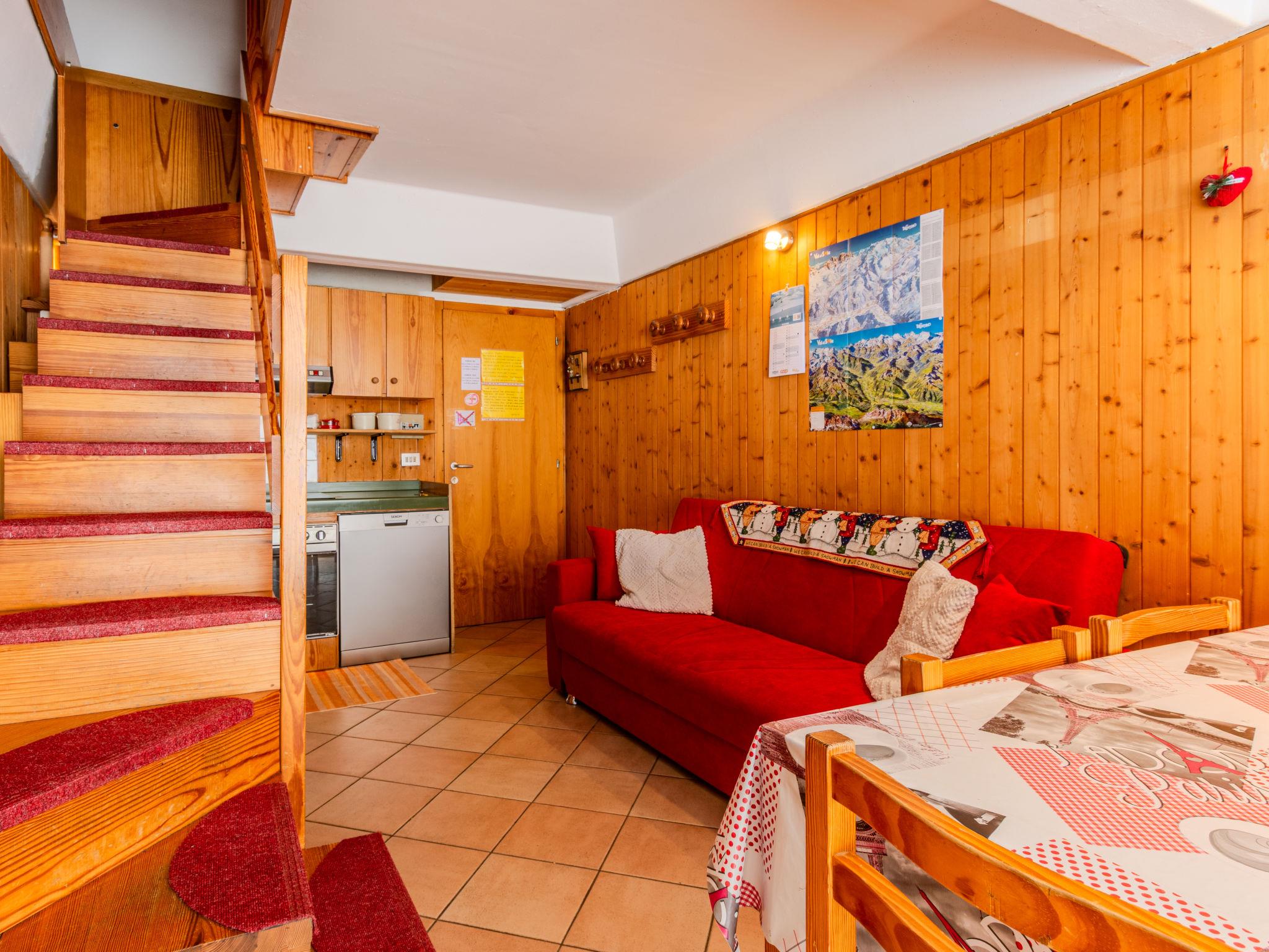 "Tra le Piste", 3-room maisonette 60 m2 on 1st floor. Bright, partly renovated in 2025, simple and comfortable furnishings: living/dining room with TV. Exit to the balcony. Kitchenette in the entrance (dishwasher, 4 induction hot plates, kettle, microwave). Exit to the balcony. Upper floor: 1 double bedroom. 1 double bedroom with 1 bed. Shower/bidet/WC. Heating. Heating available only from 15.11. to 31.05. Small balcony. Sitting area. Beautiful panoramic view of the mountains and the ski run. Facilities: iron, hair dryer. Parking space n 62 (roofed, 1 car). Please note: non-smokers only. Fire extinguisher. IT022114C2CB3OA8HP