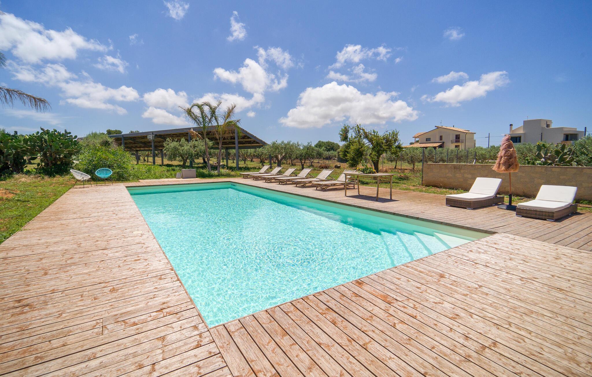 Tillbringa en solig semester i detta rymliga semesterhus med pool.