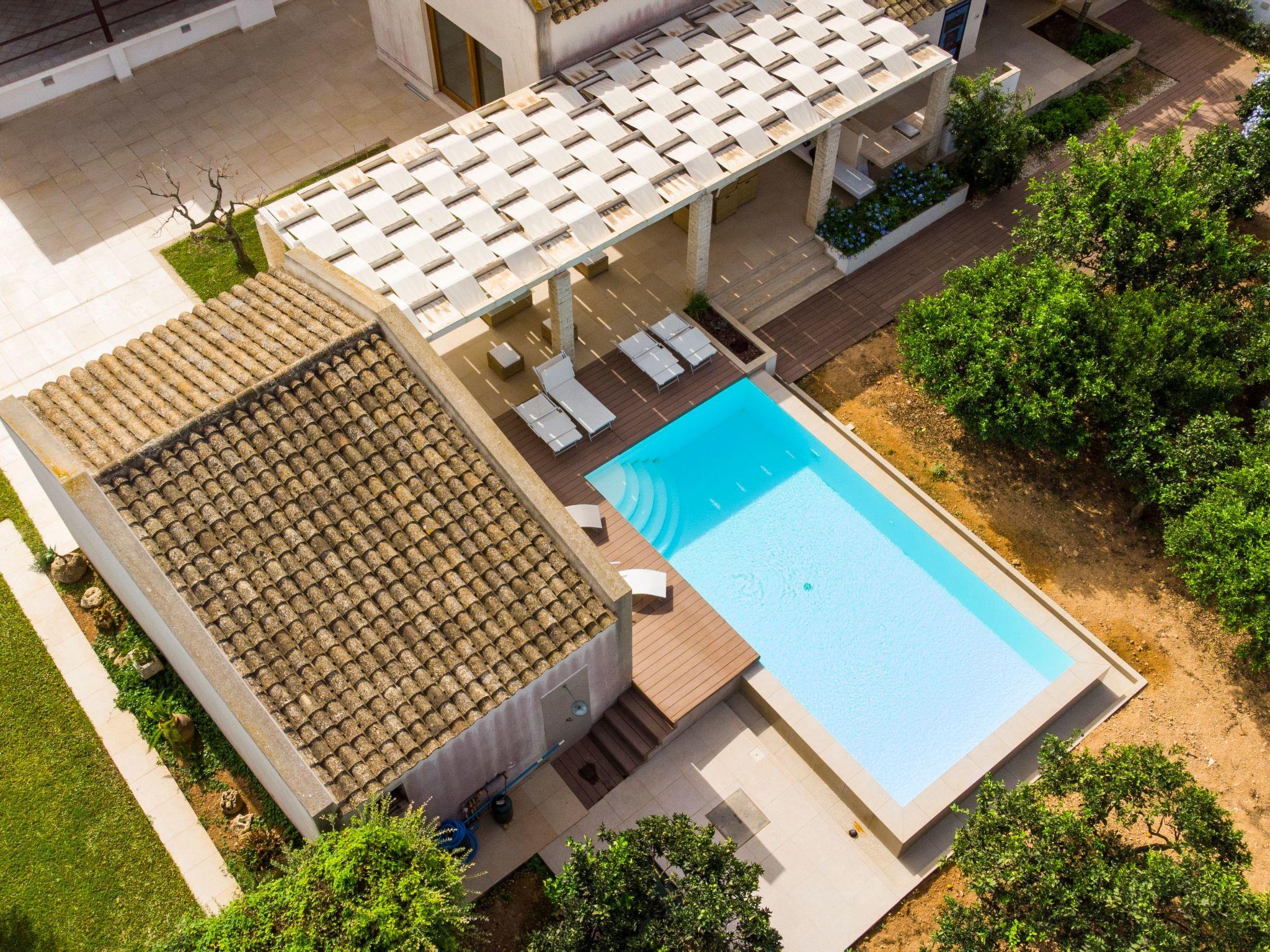 The house is surrounded by a fragrant citrus grove. The pool and patio are perfect for spending pleasant moments of relaxation in the open air.