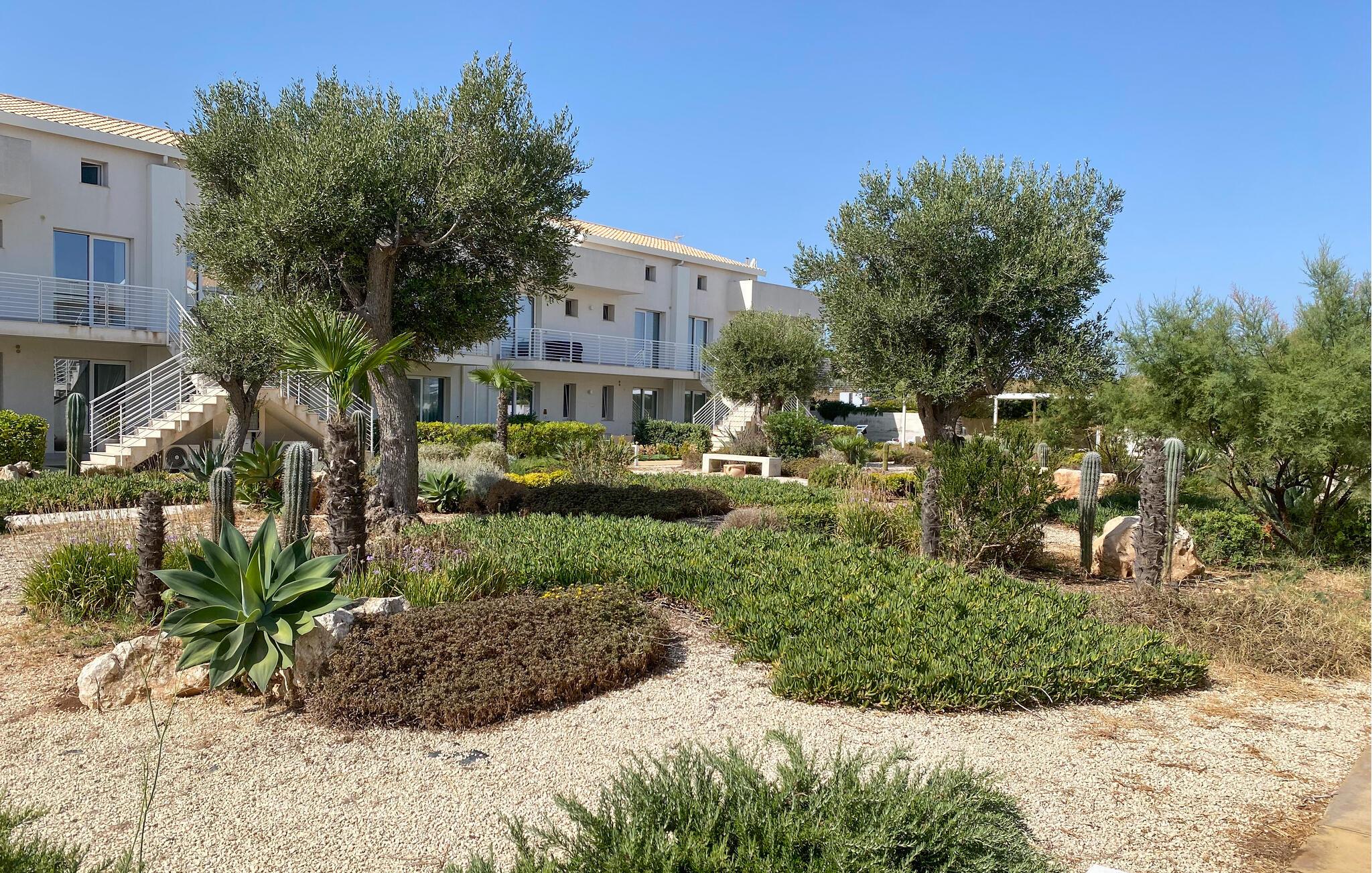 Njut av en avkopplande timme på den stora terrassen vid frukosten eller läs mysigt i den hängande korgen. Den gemensamma poolen erbjuder ett uppfriskande dopp mellan måltiderna. Det finns en lekplats för barn i anläggningen och vuxna kan träna med andra gäster i fitnessrummet, spela beachvolleyboll eller använda grillen.