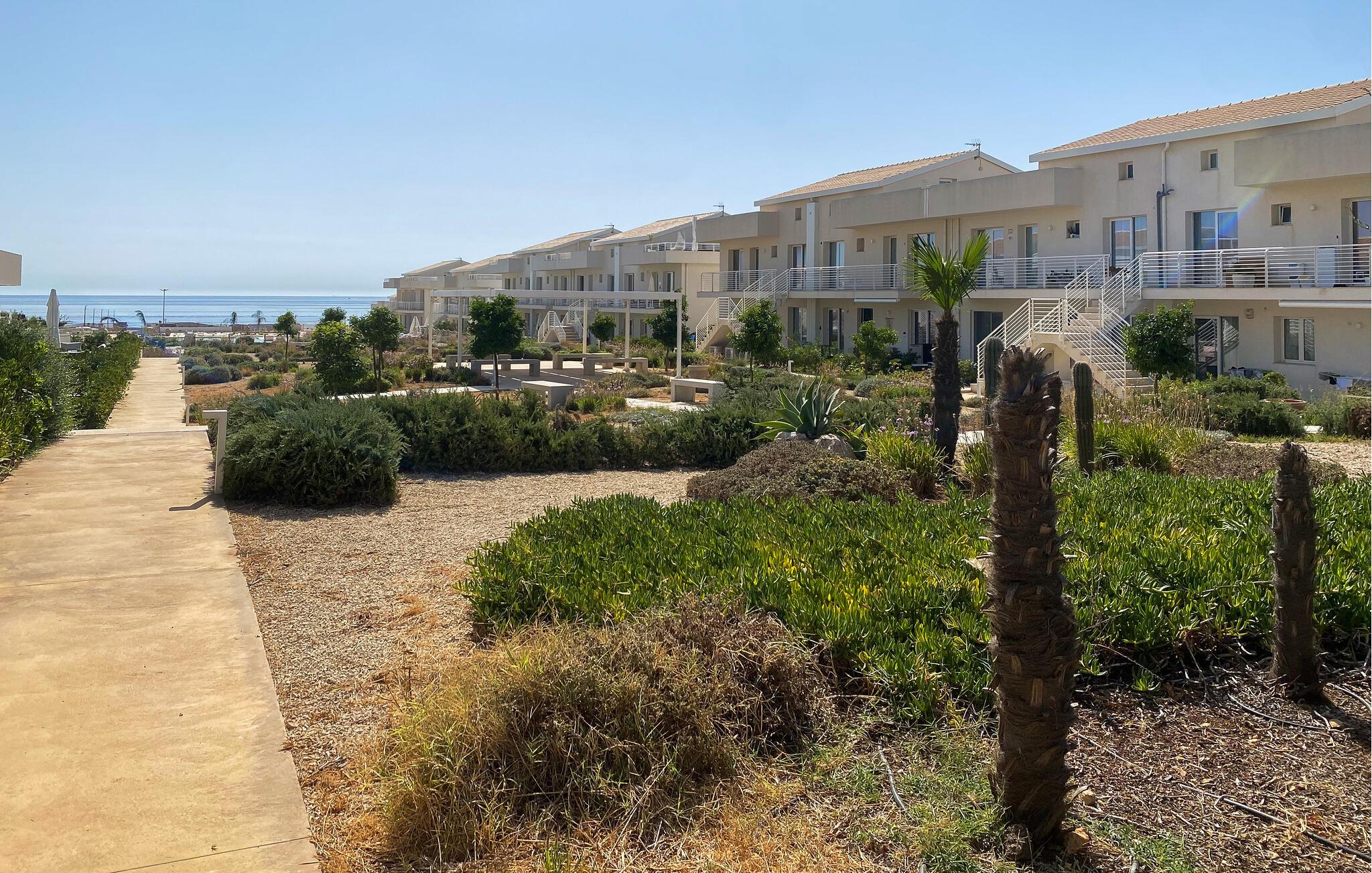 Kliv ut och slå dig ner på din privata terrass. Börja morgonen med frukost under markisen och låt blicken vandra över poolen och havet. Koppla av på eftermiddagen med en bok eller avsluta dagen med ett glas vin. Ta ett uppfriskande dopp i den rymliga gemensamma poolen och njut av den välskötta tomten som är omgiven av olivträd och andra medelhavsväxter.