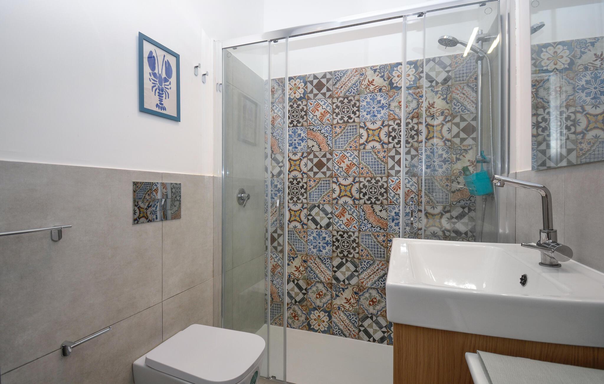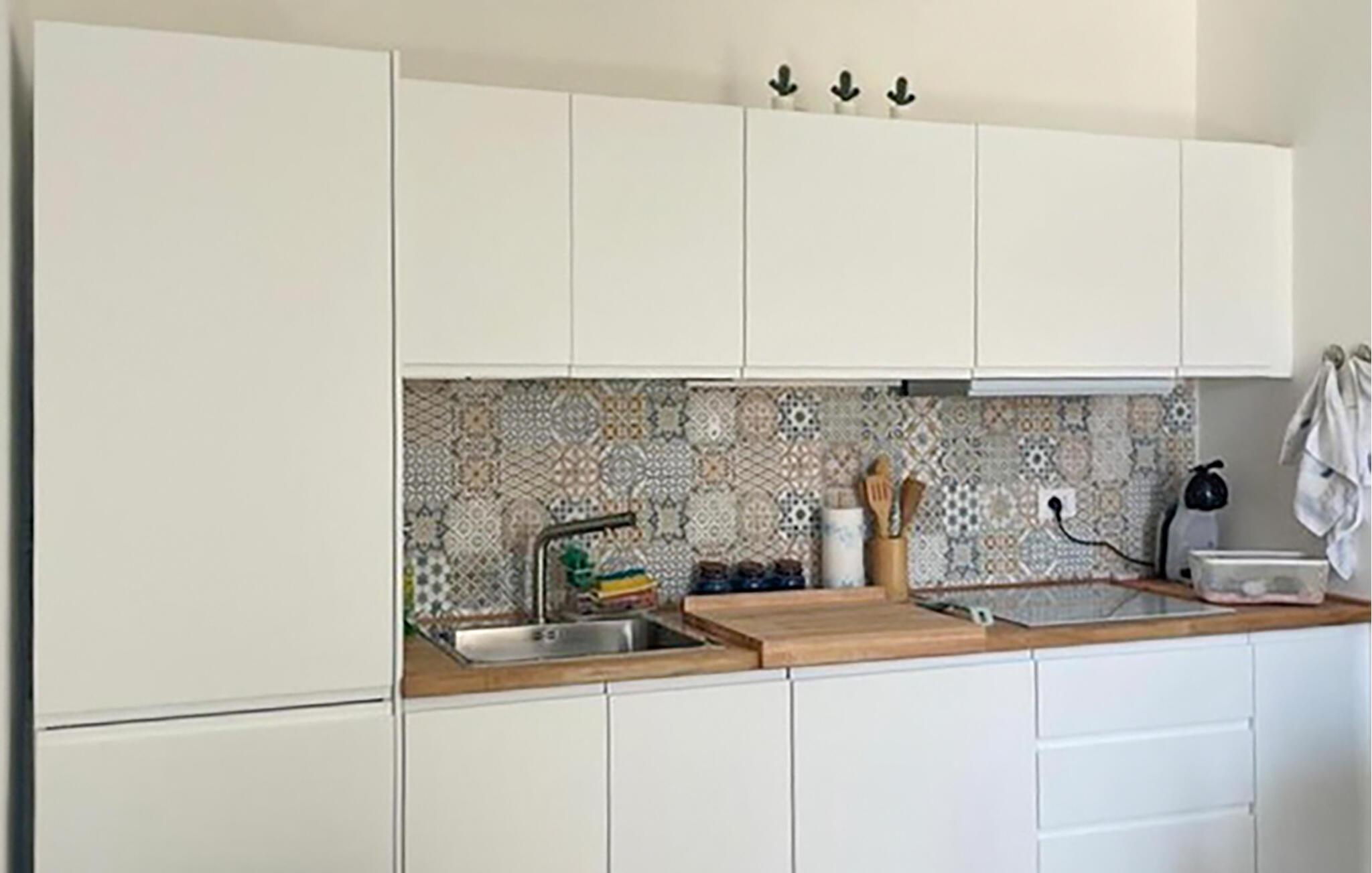Använd det moderna köket med matbord, som är idealiskt utrustat för att förbereda måltider tillsammans. Upptäck den vänliga atmosfären, som betonas av medelhavs kakel accenter, och känn dig som hemma omedelbart. Organisera dina dagar som du vill och njut av den trevliga kombinationen av funktionalitet och eleganta möbler.