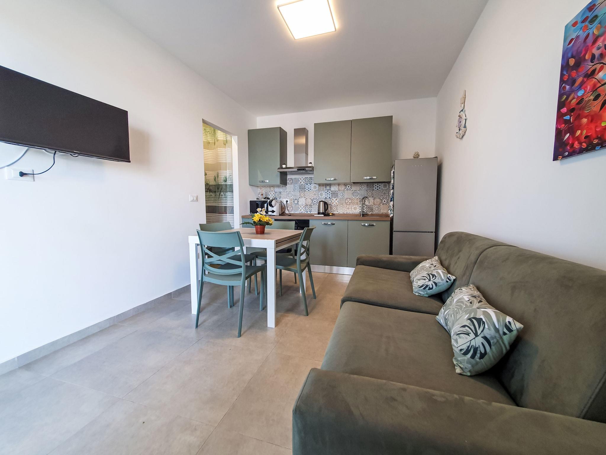 "Sogno di Emanuel", 2-room apartment 40 m2, on the ground floor. Modern and cosy furnishings: living/dining room with 1 double sofabed, TV, air conditioning and forced-air heating. Exit to the terrace. 1 double bedroom with TV, air conditioning and forced-air heating. Exit to the terrace. Kitchenette (oven, 4 induction hot plates, toaster, kettle, microwave, electric coffee machine). Shower/bidet/WC. Heating, forced-air heating, boiler (80 litres). Heating available only from 01.12. to 31.03. Small terrace 5 m2 partly roofed. Terrace furniture, deck chairs (2). Partial view of the sea and the resort. Facilities: washing machine, iron, children's high chair, baby cot for up to 2 year olds (extra). Internet (WiFi, free). Parking (extra, 1 car). Please note: smoke alarm, fire extinguisher. IT089014C2PEMADGNT