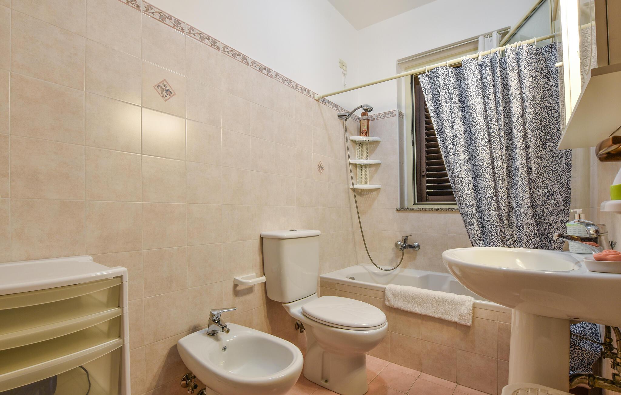 - WC med varmt och kallt vatten, Dusch och badkar