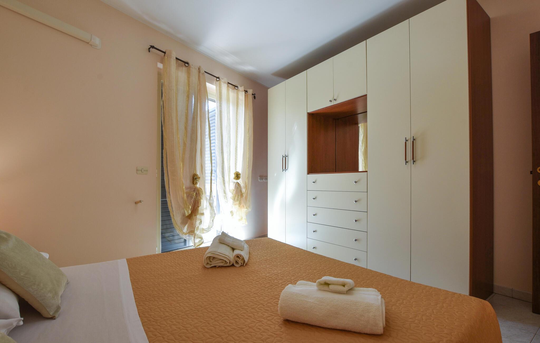 Denna lägenhet välkomnar dig med en inbjudande atmosfär. Tillbringa avkopplande timmar med att chatta i den mysiga soffan eller laga goda rätter i det praktiska köket och servera dem med ett gott italienskt vin.