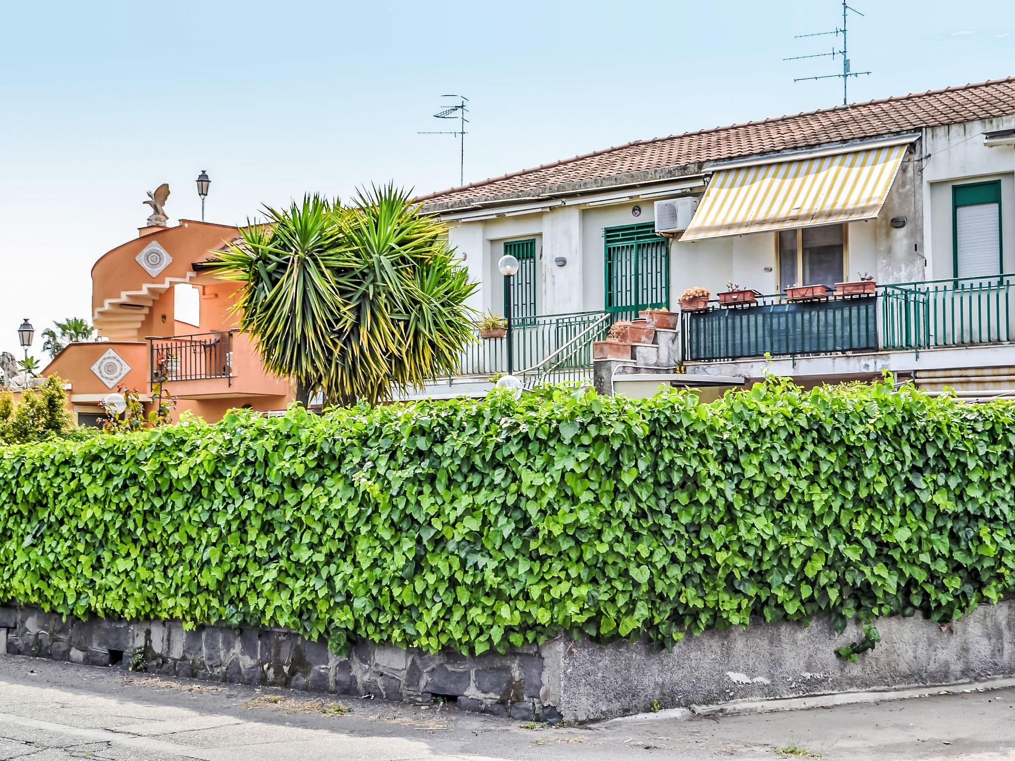 Small apartment block. In the hamlet Fondachello 500 m from the centre of Mascali, in a sunny position, 400 m from the sea, 400 m from the beach, on a main road. For shared use: small garden. Outdoor shower. Private: barbecue, parking on the premises. Grocery 200 m, supermarket, restaurant, bar 400 m, bus stop 2 km, shingle beach "Fondachello" 400 m. Nearby attractions: Giardini Naxos 13 km, Punto escursioni per l'Etna 14 km, Taormina 25 km, Parco Geologico/Botanico Gole Alcantara 20 km, Catania 33 km, Siracusa 99 km. Please note: car recommended. On request: airport transfer to the holiday accommodation.