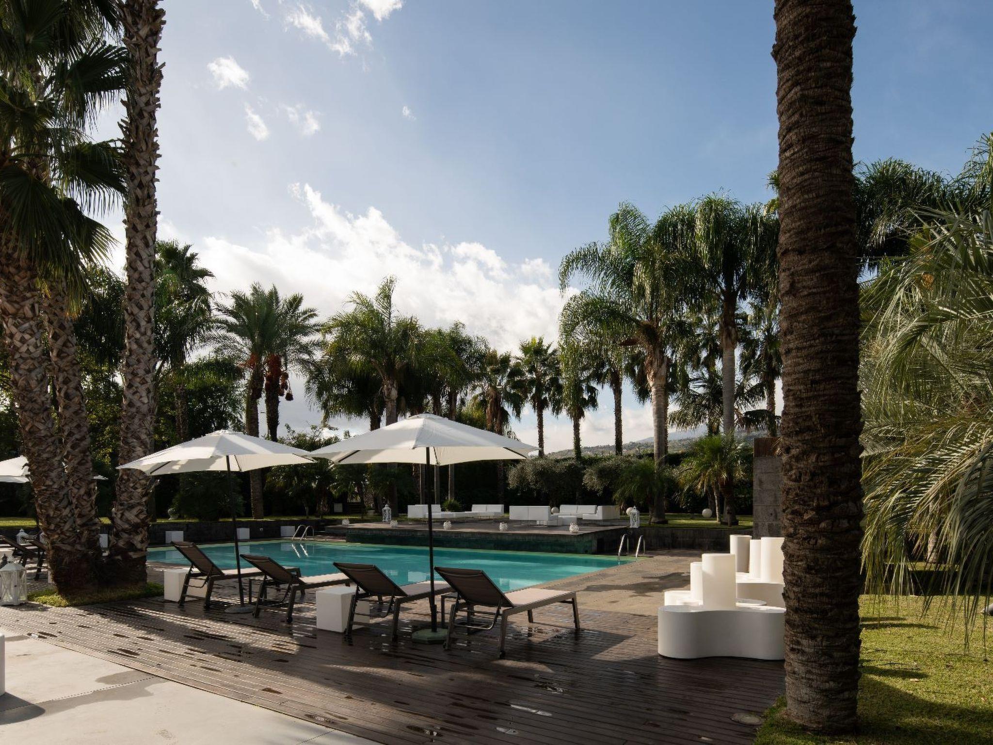 Arranged on two levels, on the ground floor there is a large kitchen and laundry room equipped to provide you with all the necessary comforts (static oven, microwave oven, fridge freezer, toaster, kettle, complete hob, table and chairs, high chair for baby, washing machine and manual wash basin). On the first floor there is a living room with sofa and TV corner, a large hallway and three bedrooms all with their own full bathroom. One of the three bedrooms enjoys access to a lovely furnished terrace with a view of the park, the swimming pool and Mount Etna.