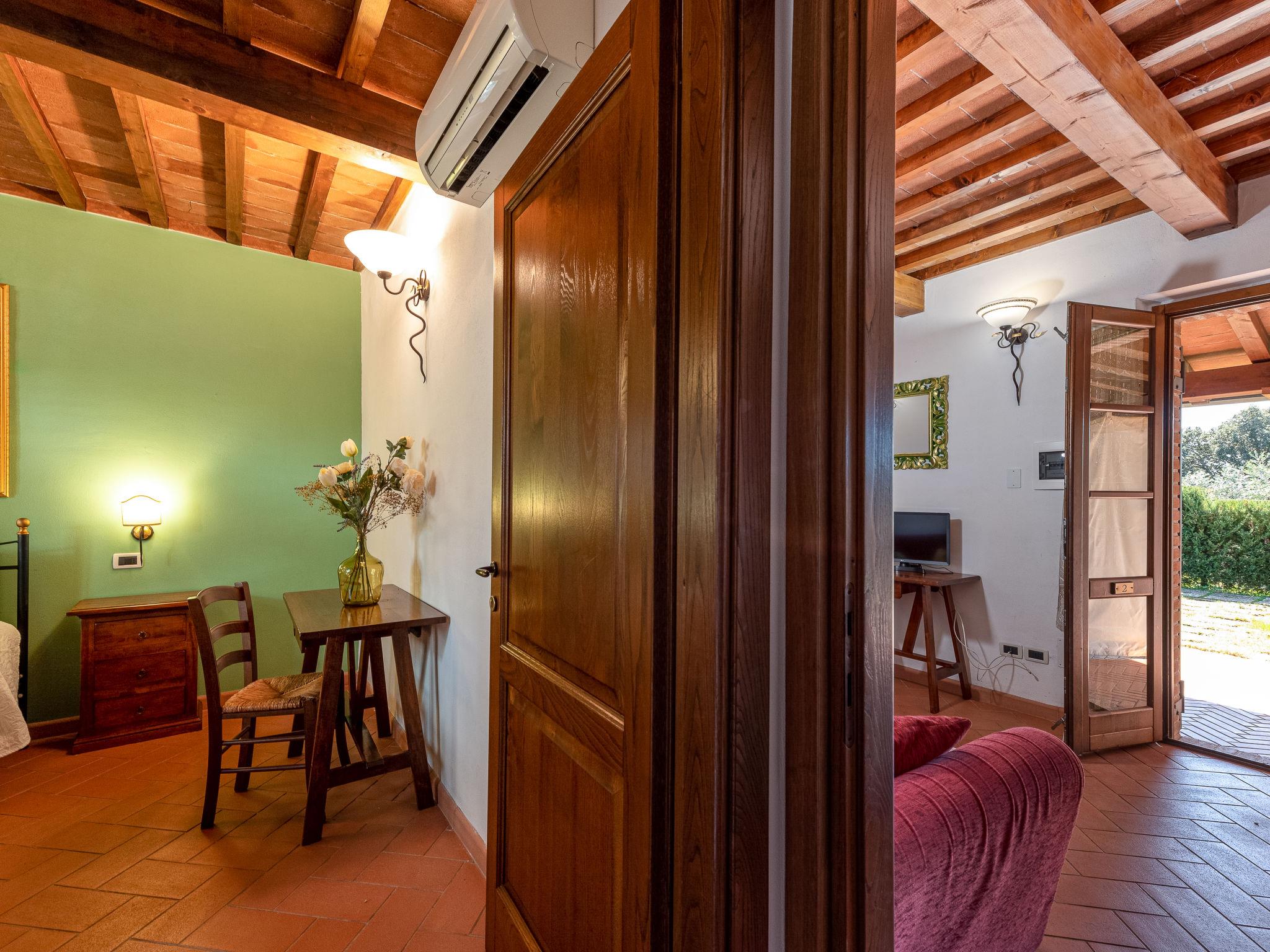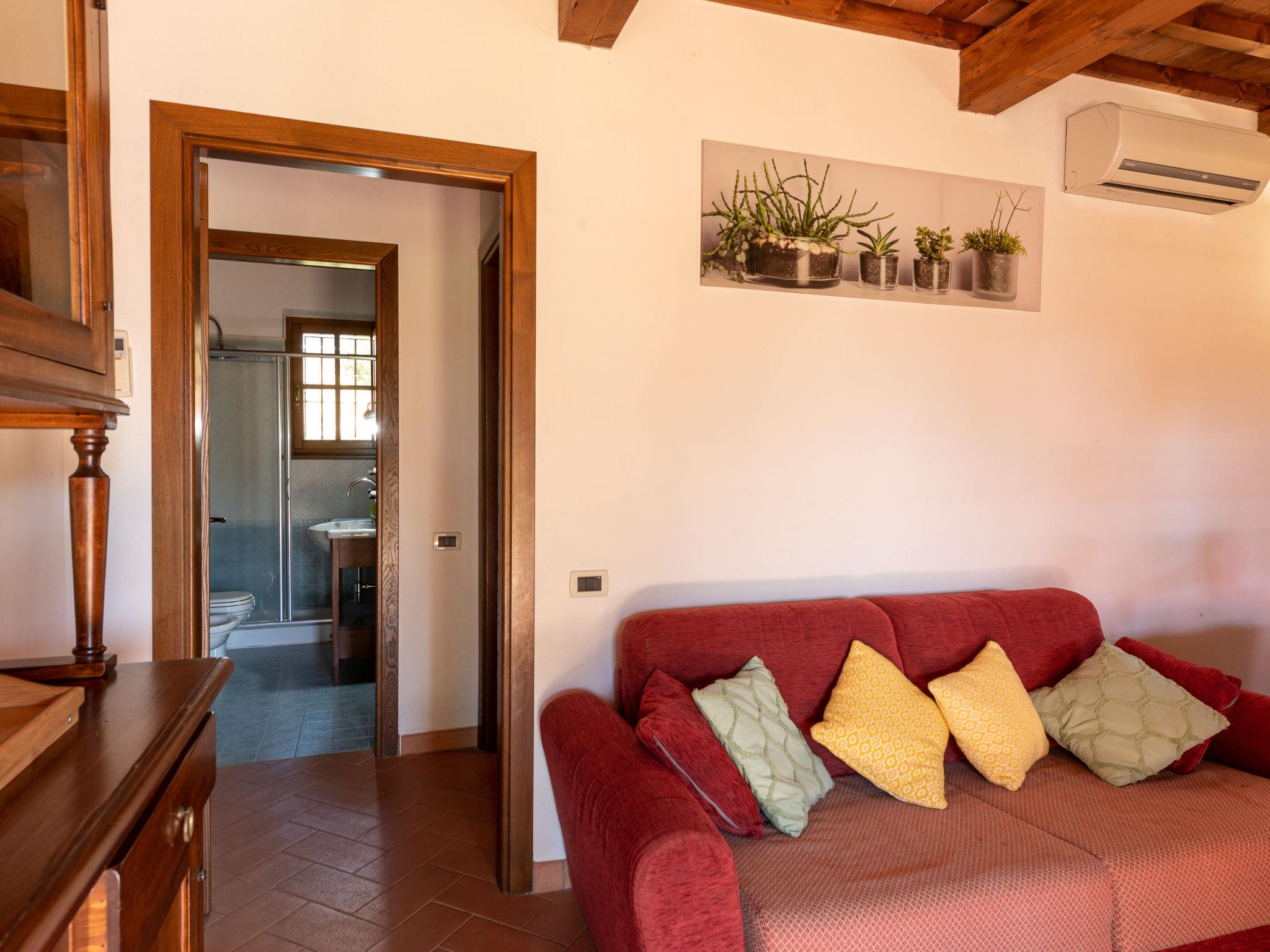 Cosy, rustic terraced house, surrounded by trees. 5 houses in the residence. In the district of La Pesta 9 km from the centre of Massa Marittima, in a sunny position on top of a hill, 17 km from the sea, 1.5 km from the lake, in the countryside. Private: garden 25 m2 with lawn. Terrace, garden furniture, parking at the house. Shop 5 km, grocery 5 km, supermarket 10 km, restaurant, bar 500 m, bicycle rental 10 km, bus stop 5.5 km, sandy beach "Follonica" 9 km. Marina 22 km, golf course (18 hole) 15 km, surf school 20 km, minigolf 20 km, walking paths from the house 50 m. Nearby attractions: Valpiana 5 km, Gavorrano 14 km, Follonica 19 km, Cala Violina 25 km, Roccastrada 20 km. Well-known lakes can easily be reached: Lago dell'Accesa 1.5 km. Hiking paths: Riserva Naturale di Montioni 15 km.