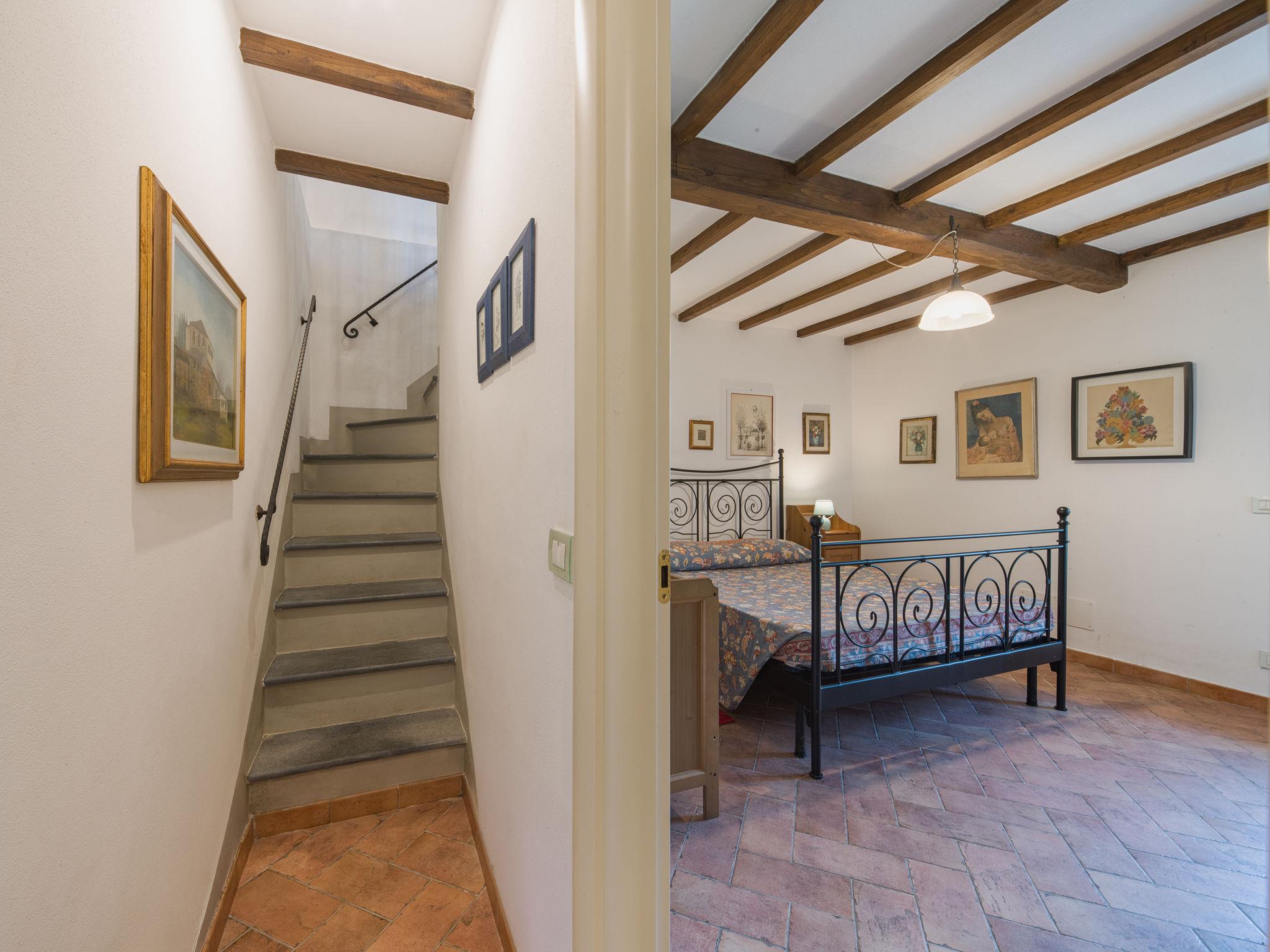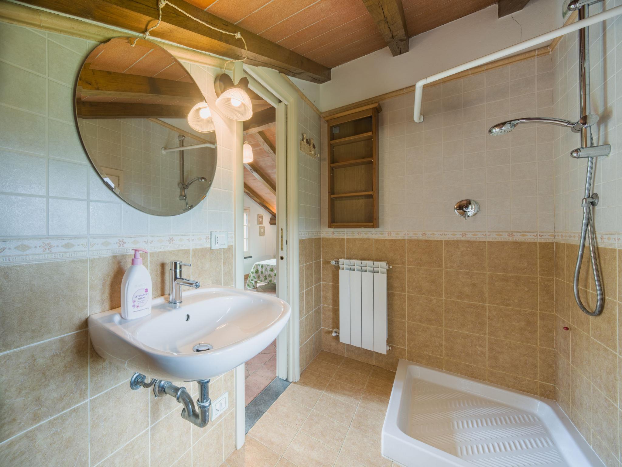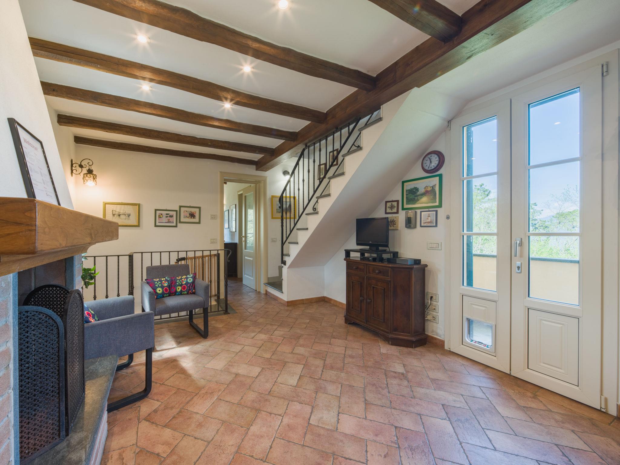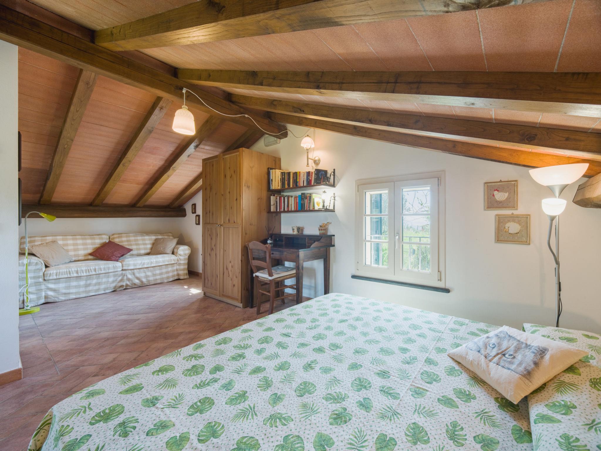 5-room villa 110 m2 on 3 levels. Bright, comfortable and cosy furnishings: open living room with satellite TV. Exit to the garden. Open kitchen (4 hot plates, oven, dishwasher, toaster, kettle, microwave, freezer, electric coffee machine) with dining table. Exit to the veranda. Sep. WC. On the lower ground floor: 1 double bedroom. Exit to the terrace. 1 room with 2 beds. Exit to the terrace. Shower/bidet/WC. Upper floor: living/sleeping room with sloping ceilings with 1 sofabed and 1 double bed. Shower/bidet/WC. Heating. Large garden. Terrace furniture, barbecue, deck chairs (3). View of the mountains and the countryside. Facilities: washing machine, iron, mosquito net, children's high chair, baby cot for up to 2 year olds, hair dryer. Internet (WiFi, extra). Parking (fenced 3 cars) at the house. Please note: non-smoking house. Maximum 1 pet/ dog allowed. Smoke alarm, fire extinguisher. IT046018C2CFXIRQBQ