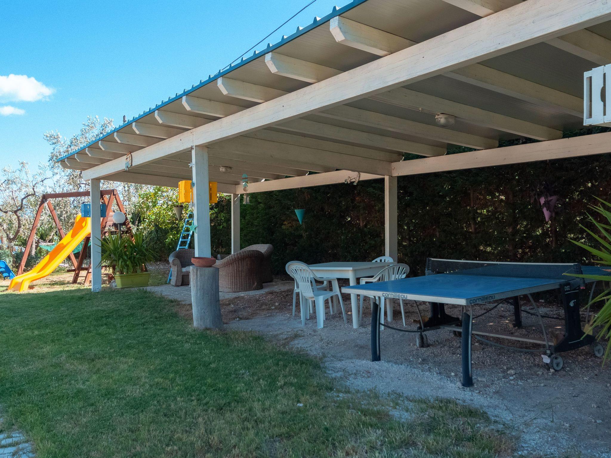 Outside, guests can enjoy a large shared garden, perfect for relaxing under the calm shade of centuries-old olive trees. The garden has a barbecue area ready for evenings of fun and good food outdoors, and a playground where the little ones can play safely. In addition, there is a covered parking space, guaranteeing comfort and safety for your means of transport, protected by an automatic gate.
