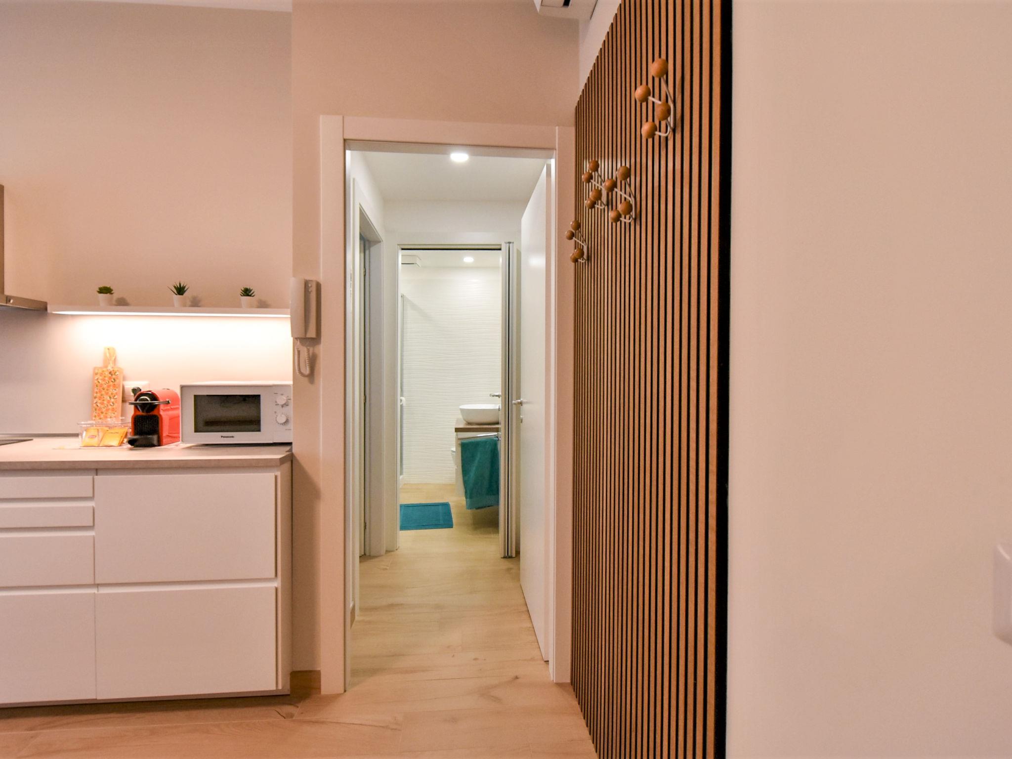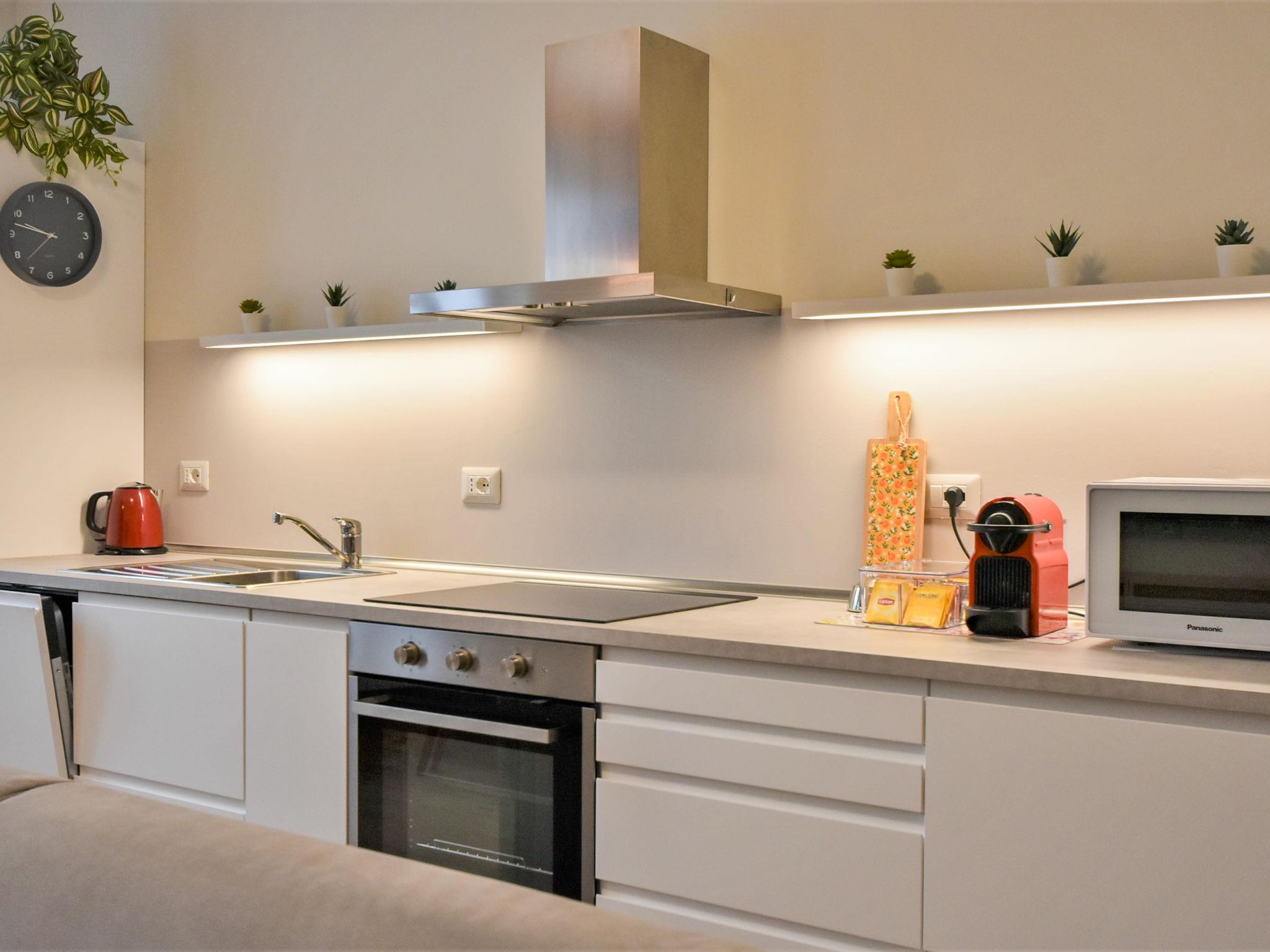 2-room apartment 50 m2 on 1st floor, south facing position. Bright, comfortable and modern furnishings: living/dining room with 1 double sofabed, dining table and TV. 1 double bedroom. Large kitchenette (oven, dishwasher, 4 induction hot plates, toaster, kettle, microwave, electric coffee machine, Capsules for coffee machine (Nespresso) free). Shower/bidet/WC. Heating, air-conditioning. View of the city. Facilities: washing machine, safe, iron, children's high chair, baby cot, hair dryer. Internet (WiFi, free). Please note: apartment street side. Non-smokers only. IT015146C2T9FABSZD