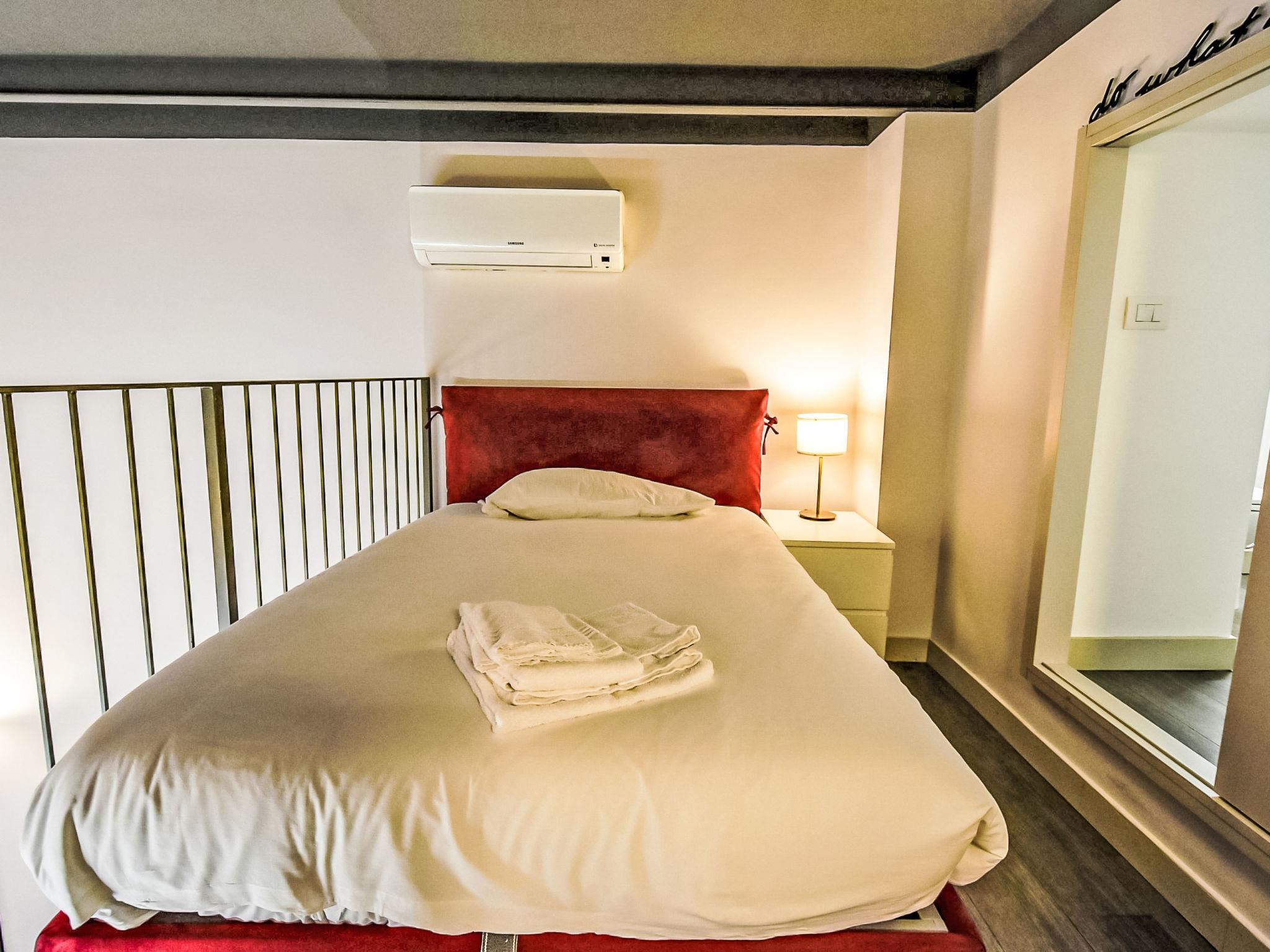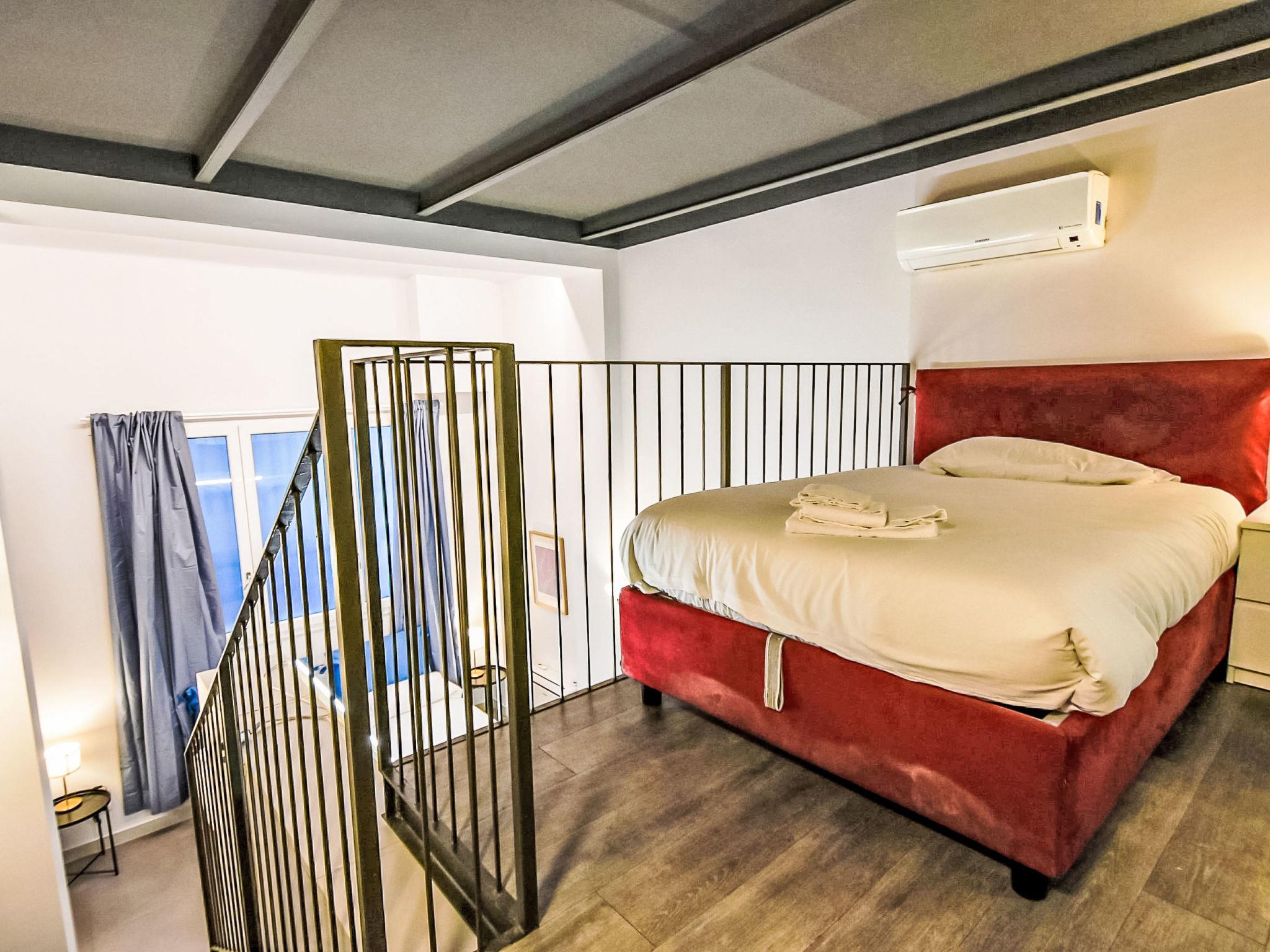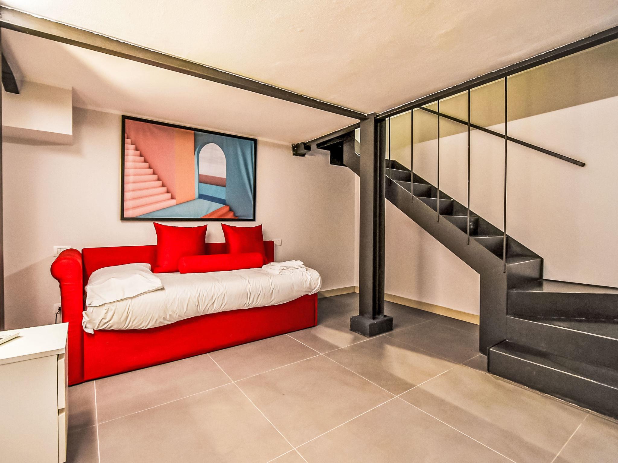 2-room Loft 80 m2 on 3 levels, on the ground floor. Fully renovated in 2024, comfortable and modern furnishings: living/sleeping room with 2 beds and TV. Kitchen in the entrance (oven, dishwasher, 4 induction hot plates, toaster, kettle, microwave, electric coffee machine, Capsules for coffee machine (Nespresso) free) with dining table. Exit to the patio. Shower/bidet/WC. On the lower ground floor: 1 open room, without window with 1 bed. Upper floor: open gallery with 1 french bed and separate WC. Air-conditioning, forced-air heating. Small. Balcony furniture. Facilities: washing machine, iron, children's high chair, baby cot, hair dryer. Internet (WiFi, free). Please note: non-smoking house. Private entrance. IT015146C2R6JWAZYV