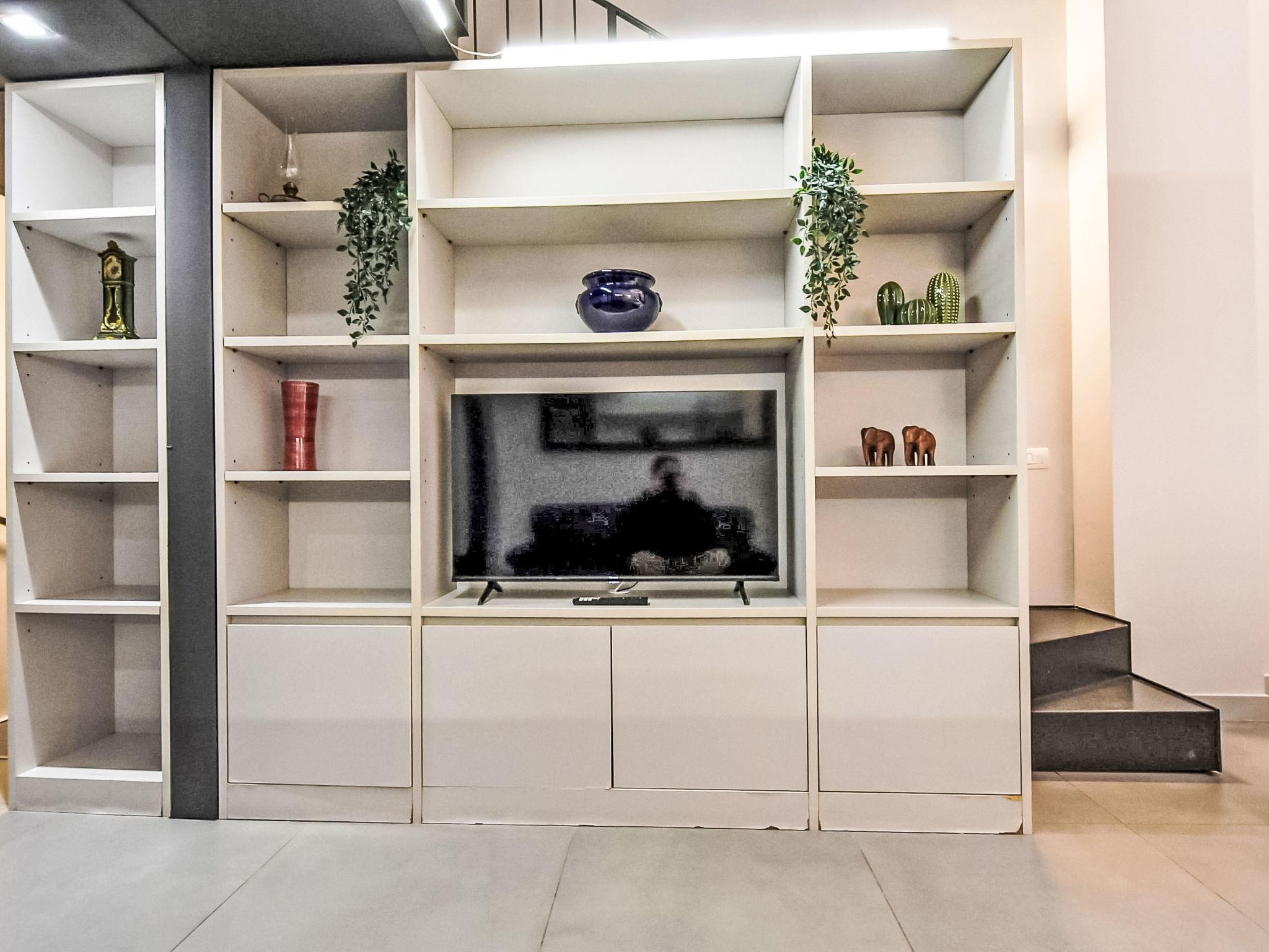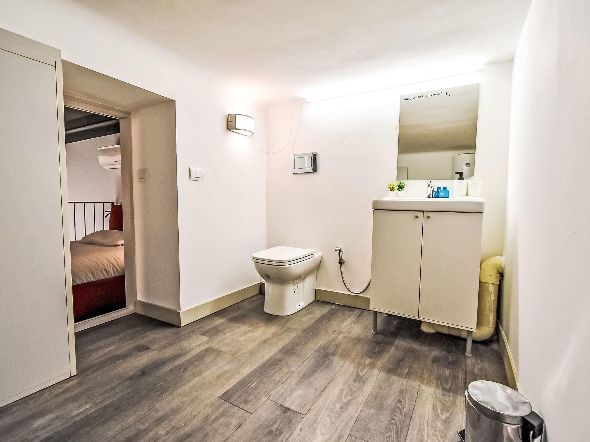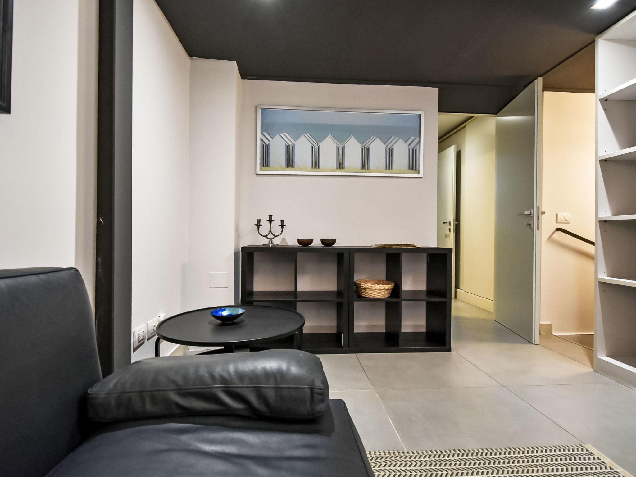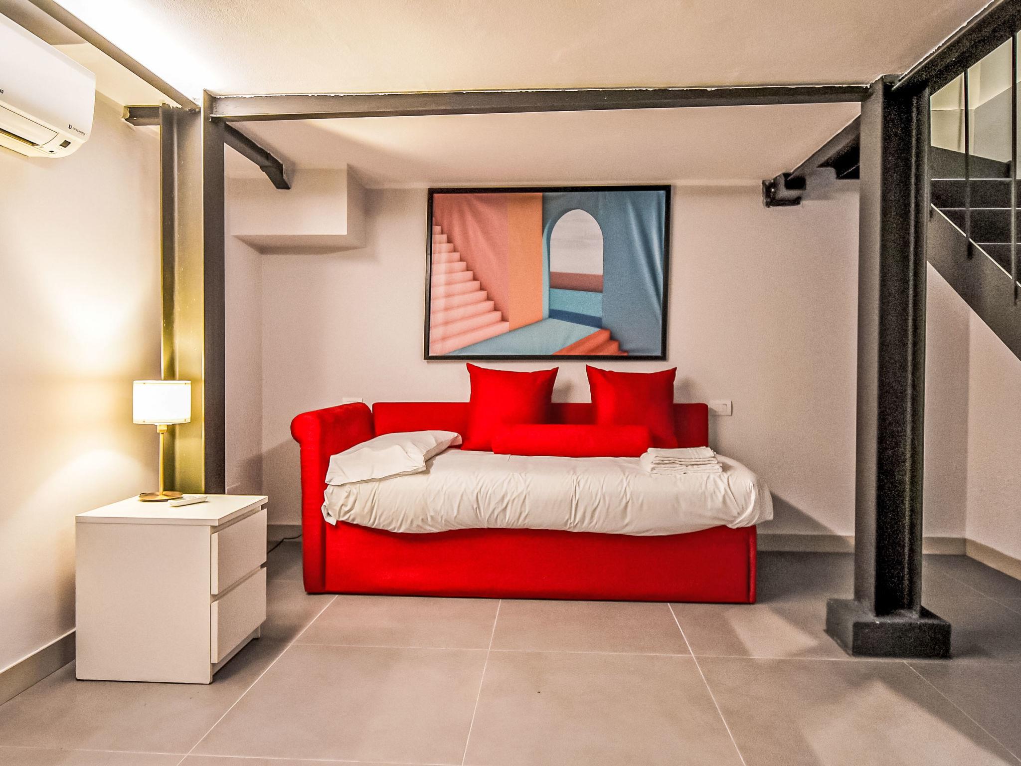 2-room Loft 80 m2 on 3 levels, on the ground floor. Fully renovated in 2024, comfortable and modern furnishings: living/sleeping room with 2 beds and TV. Kitchen in the entrance (oven, dishwasher, 4 induction hot plates, toaster, kettle, microwave, electric coffee machine, Capsules for coffee machine (Nespresso) free) with dining table. Exit to the patio. Shower/bidet/WC. On the lower ground floor: 1 open room, without window with 1 bed. Upper floor: open gallery with 1 french bed and separate WC. Air-conditioning, forced-air heating. Small. Balcony furniture. Facilities: washing machine, iron, children's high chair, baby cot, hair dryer. Internet (WiFi, free). Please note: non-smoking house. Private entrance. IT015146C2R6JWAZYV