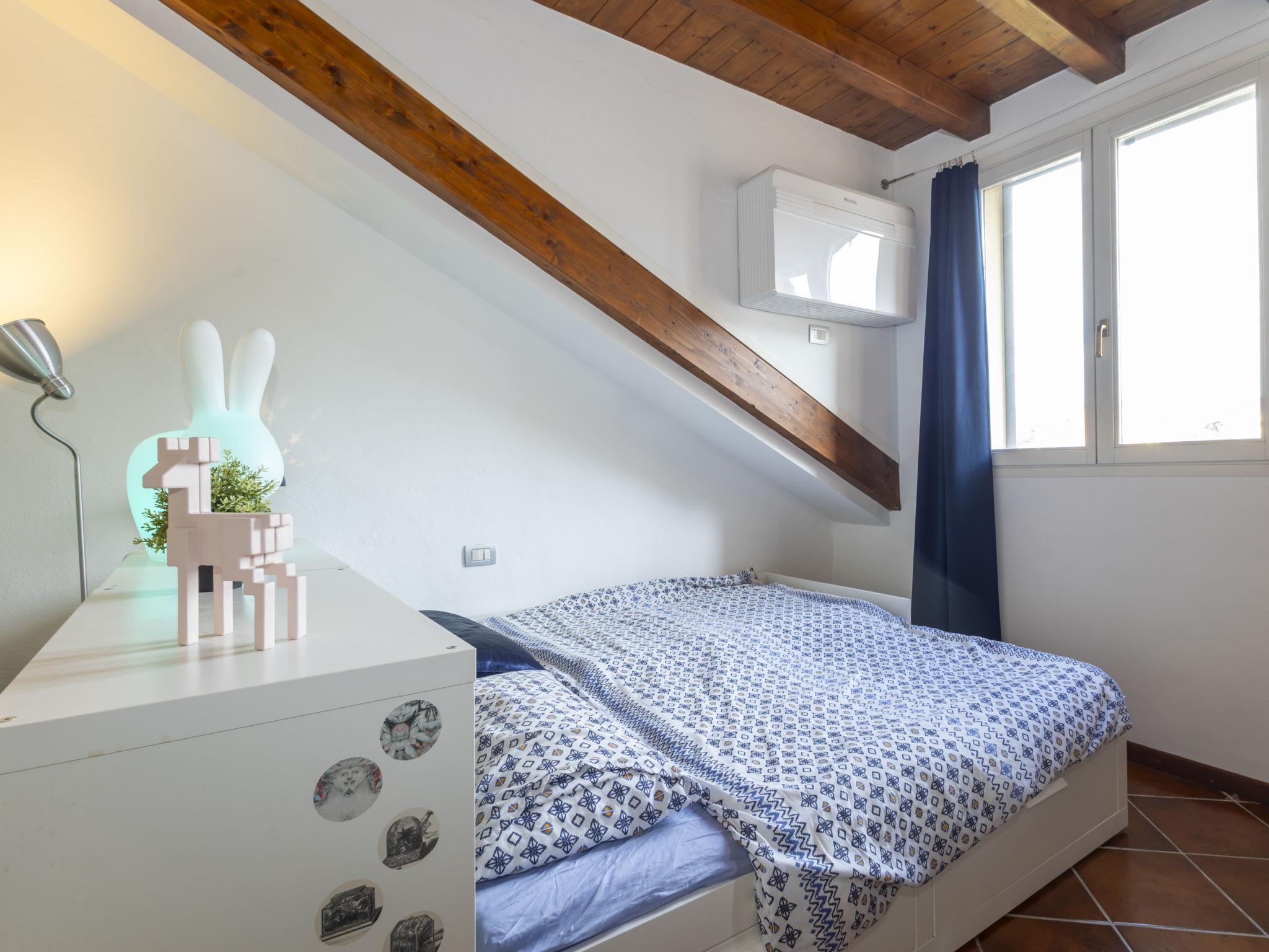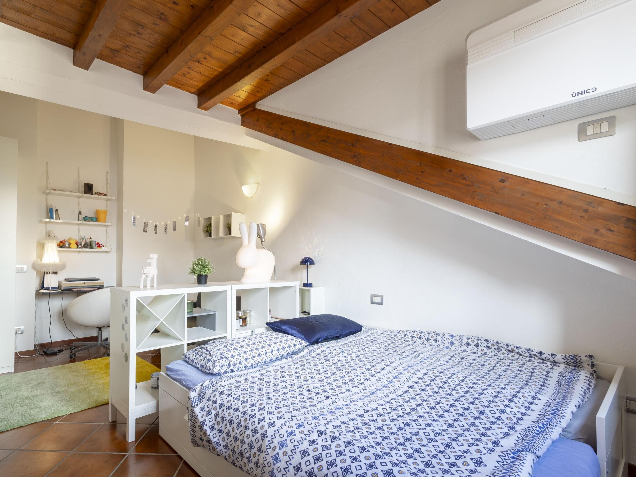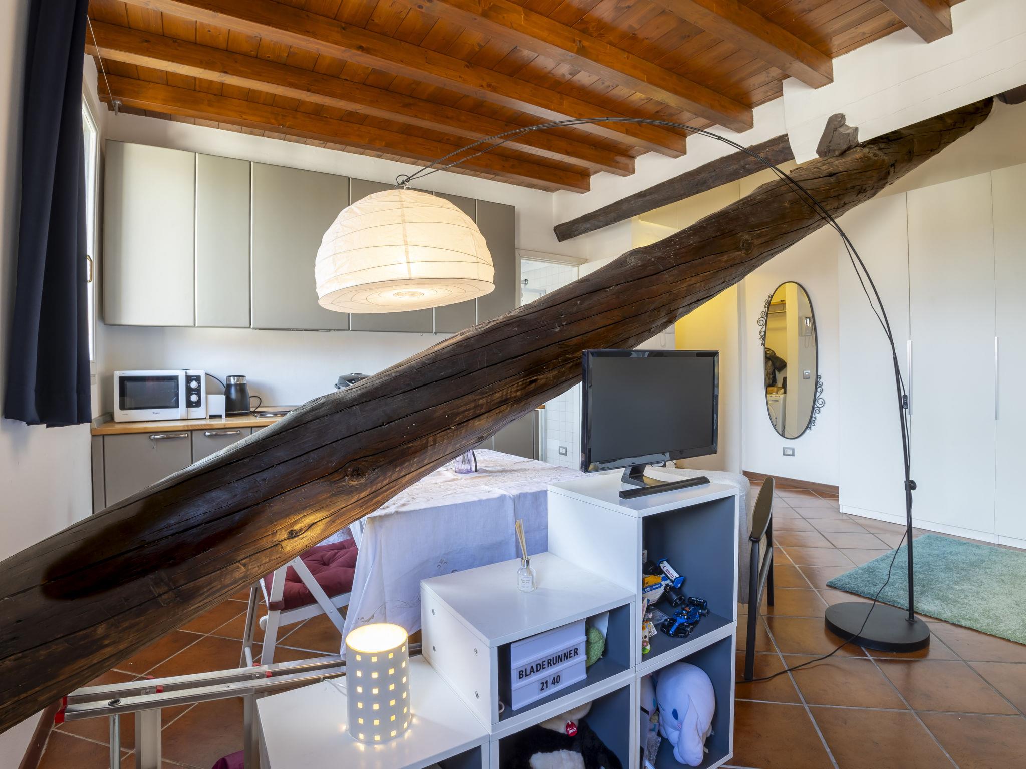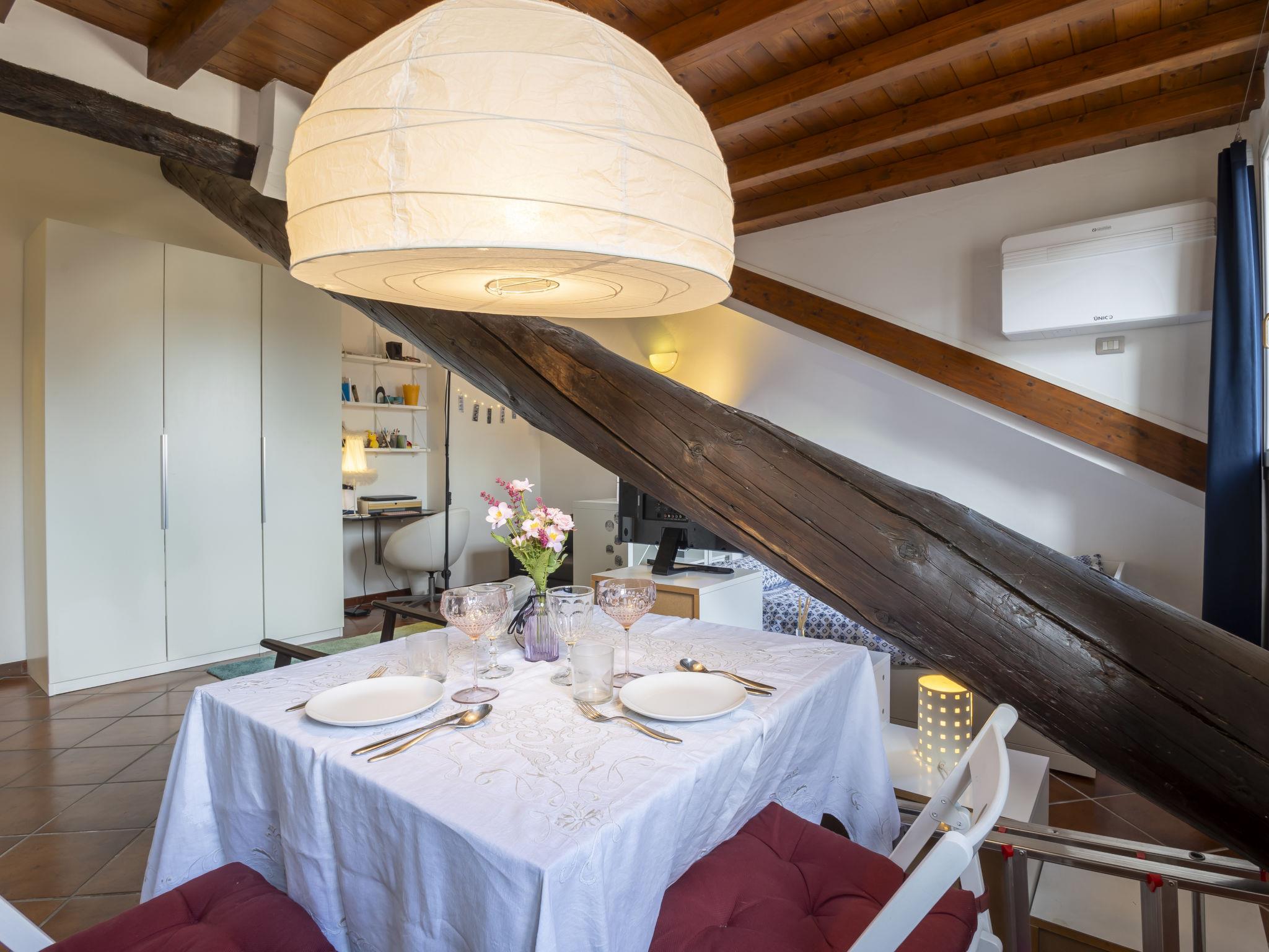 1-room studio 38 m2 on 4th floor, south facing position. Spacious and bright, with sloping ceilings, practical and comfortable furnishings: living/dining room with 1 double sofabed, dining table and TV. Kitchenette (2 hot plates, toaster, kettle, microwave). Shower/bidet/WC. Air-conditioning, forced-air heating, boiler. Facilities: washing machine, iron, hair dryer. Internet (WiFi, free). Please note: apartment courtyard side. Fridge without freezer, non-smokers only. Smoke alarm, fire extinguisher. IT015146C28VIYSZ2Y