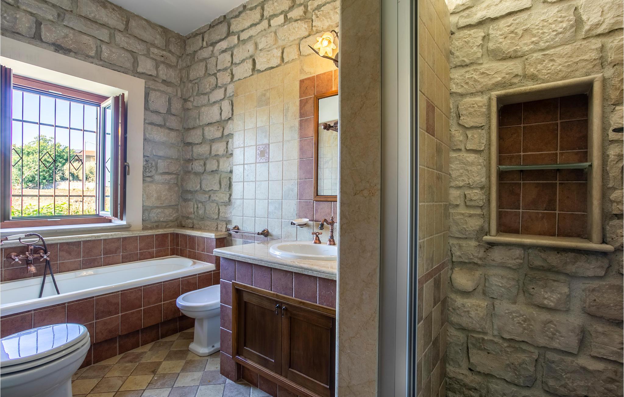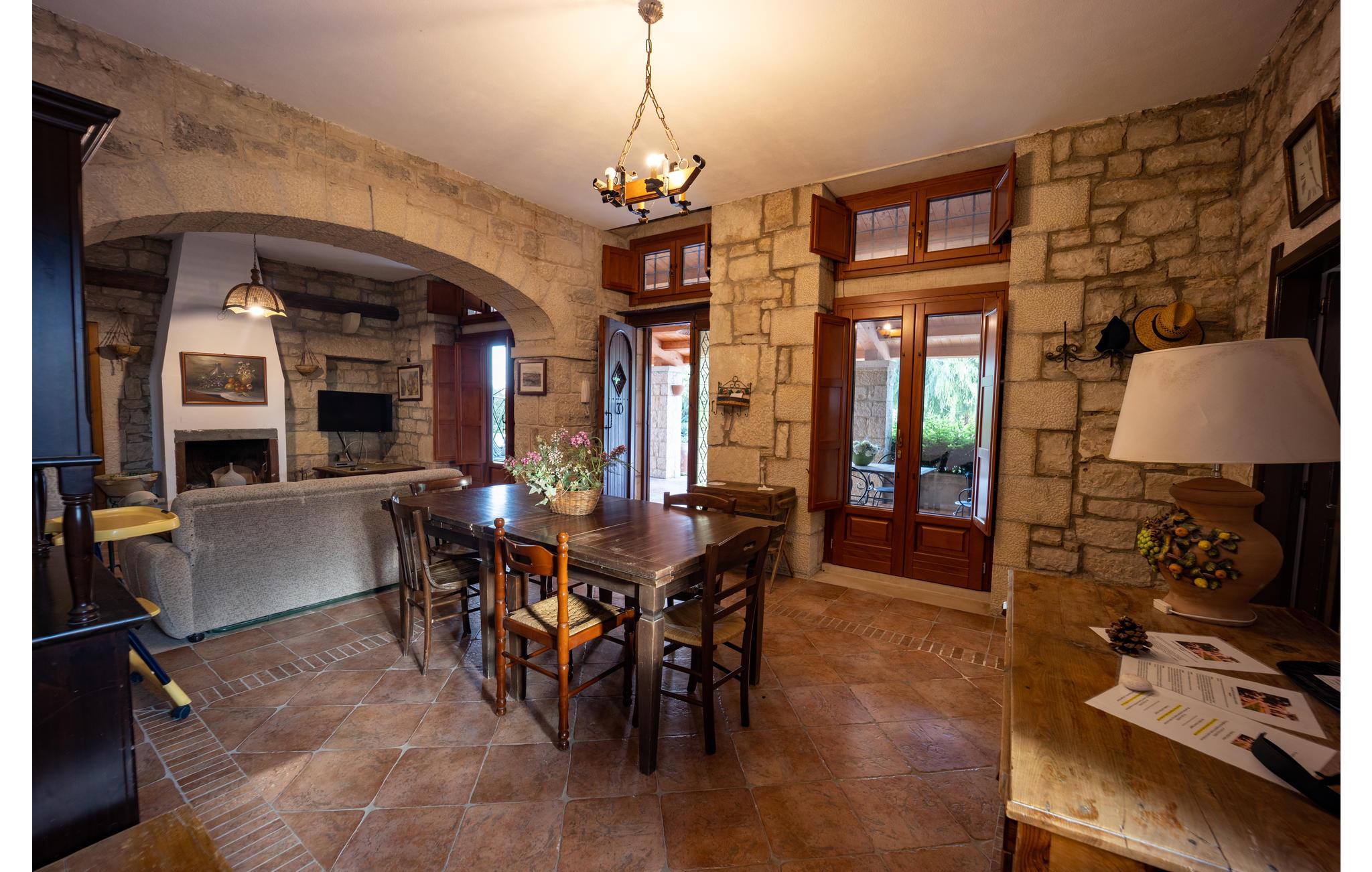 Upptäck den inbjudande interiören med sina naturstensväggar, varma färger och kärleksfullt utvalda detaljer. Koppla av i det mysiga vardagsrummet eller tillaga läckra måltider i det traditionella köket med trätak och mönstrat kakel. Dra nytta av den direkta tillgången till den stora, täckta terrassen för att äta i skuggan. En speciell höjdpunkt är det privata wellnessområdet med bubbelpool, bastu, skotsk dusch och mysig relaxavdelning, perfekt för avkoppling när som helst på året.