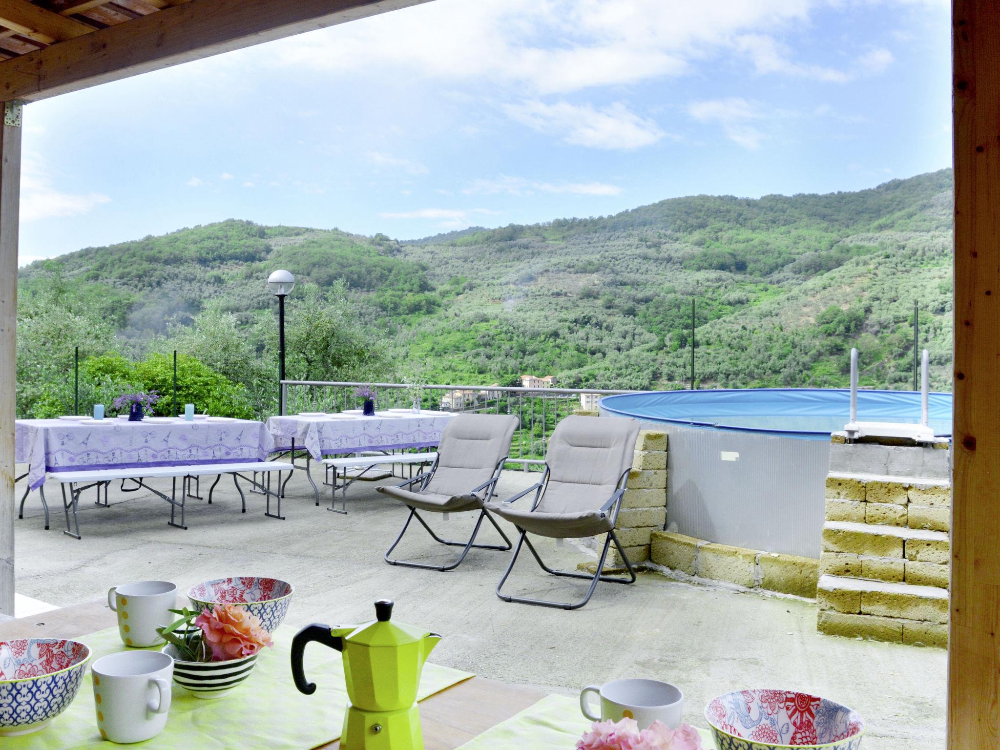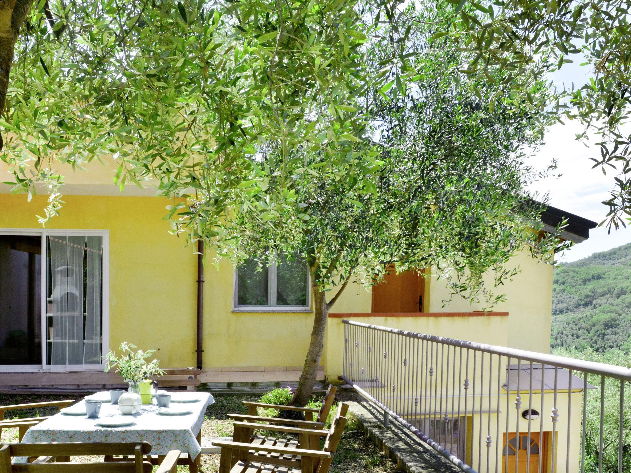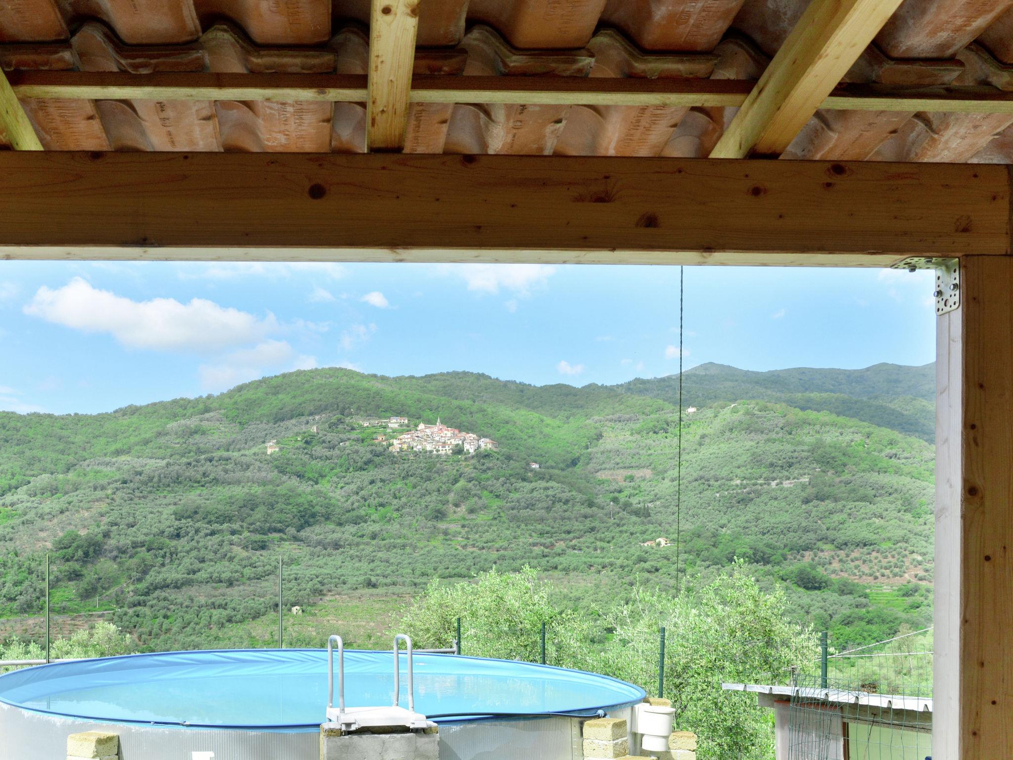 Small, beautiful residence "Clara", built in 2014, surrounded by trees. 4 apartments in the residence. In the hamlet Canneto 3 km from the centre of Prelà, 5 km from the centre of Dolcedo, 12 km from the centre of Imperia, in a quiet, sunny position on a slope, 15 km from the sea, in a cul-de-sac, in the countryside. For shared use: natural state property 1'200 m2 (fenced) with trees, natural garden, swimming pool (above ground) kidney-shaped (8 x 4 m, depth 120 cm, seasonal availability: 01.Jan. - 31.Dec.). Outdoor shower. 50 m long steep, narrow motor access to the house (ramp). Parking (limited number of spaces) at the house. Shop 3 km, supermarket 12 km, restaurant 3 km, bar 3 km, bakery 3 km, café 3 km, bus stop 300 m, railway station "Porto Maurizio" 15 km, sandy beach "Imperia - Porto Maurizio" 15 km. Please note: car recommended.