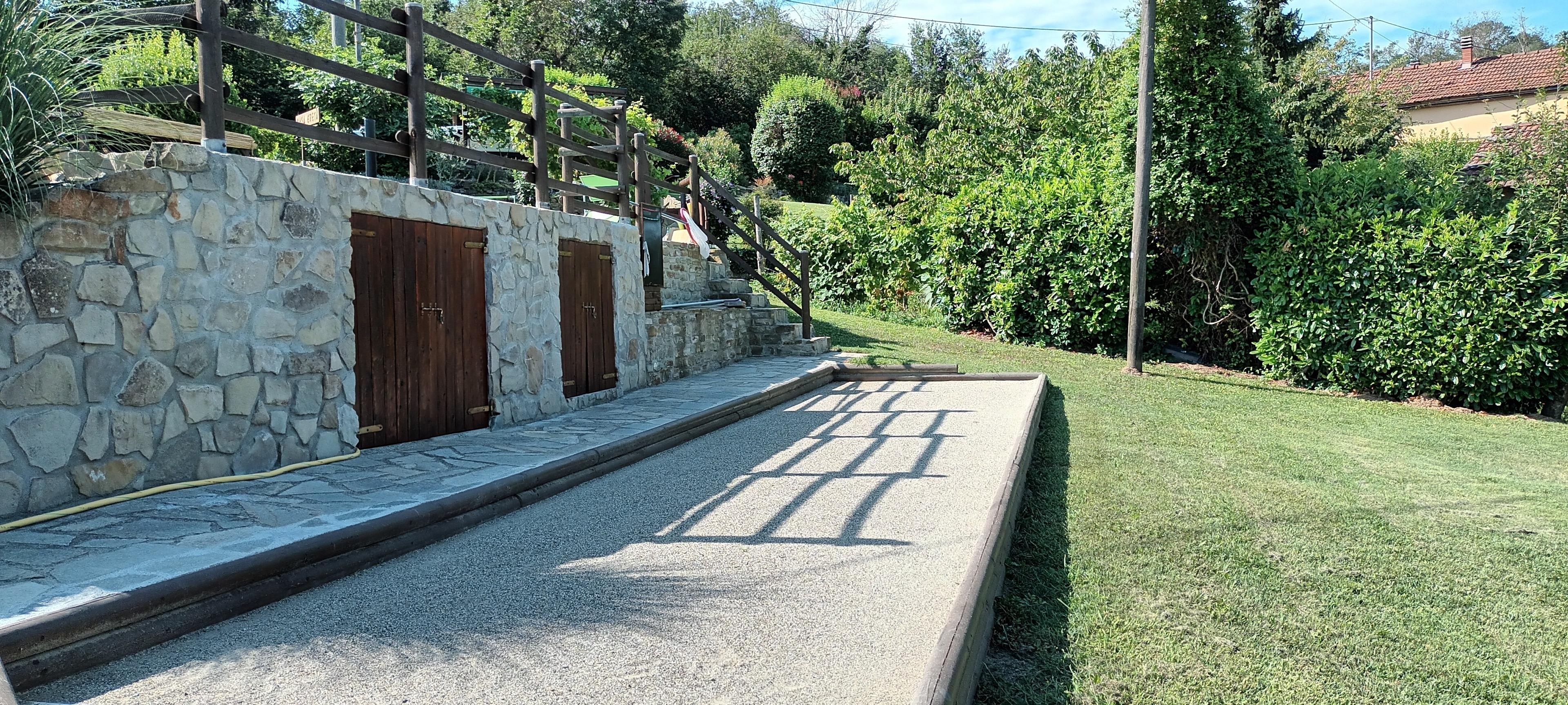 Entspannen am Pool, lesen in der warmen Sonne. Gleichzeitig sportlich aktiv: Bocciabahn, Kleinfeldtennisplatz und eine Dartscheibe dürfen gern genutzt werden.