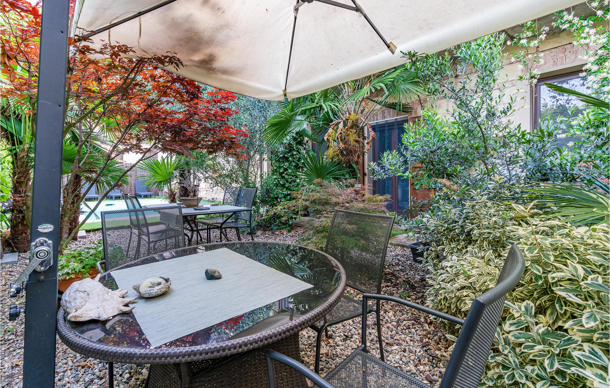 Charmigt semesterhus med privat pool och bastu på den berömda vinvägen som slingrar sig genom de omgivande vingårdarna i Monferrato (UNESCO:s världsarv). Detta är en strategisk plats för att koppla av efter dina dagliga utflykter och för att lära känna den lokala kulturen och den utmärkta gastronomin. Några kilometer bort med bil kan du besöka karakteristiska byar omgivna av odlade fält, kyrkor och medeltida slott, eftersom territoriet i de närliggande Langhe, Roero och Monferrato är ett mikrokosmos av olika miljöer där människa och natur går hand i hand. När du vandrar längs dessa böljande kullar får du inte missa att smaka på typiska produkter som vin, salami, ost och äkta tryffel som lockar turister från hela världen året runt. För sportentusiaster finns det möjligheter till ridning och mountainbike-stigar i närområdet, och för golfälskare finns det två 18-håls golfbanor mindre än 10 km bort. För de mer äventyrliga finns det möjlighet till fallskärmshoppning och flyglektioner på San Germanos flygplats. Med tanke på läget är ett besök i städerna Milano och Turin ett måste, liksom en dag vid Lago Maggiore och Ortasjön. På mindre än 120 km når du Genua med sin charmiga historiska stadskärna och sitt stora akvarium, och sedan kan du njuta av ett dopp i Liguriska havets kristallklara vatten i både den västra och östra provinsen. Husägaren använder ibland den intilliggande delen av huset.