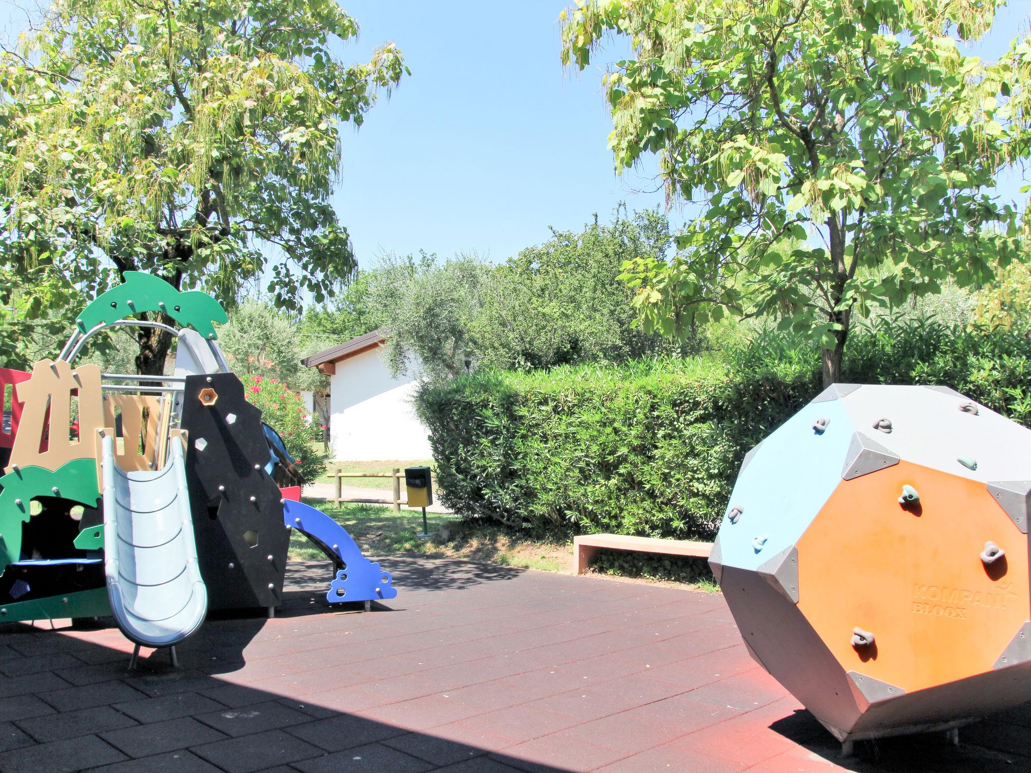Child friendly holiday village "San Giorgio Vacanze". 69 apartments in the residence. In the hamlet San Sivino, outside the resort, 5 km from the centre of Moniga del Garda, on a slope, 200 m from the lake, 200 m from the beach, direct access to the beach, in a cul-de-sac, in the countryside. For shared use: property 32'000 m2, lawn and trees, swimming pool (31 x 15 m, seasonal availability: 18.Apr. - 22.Sep. pool opening hours: 10:00-13:00 and 15:00-19:00). WC in the pool area, children's pool, outdoor shower, tennis (extra), table tennis, boccia, volleyball court, children's playground. In the complex: reception, restaurant, bar, WiFi, shopping facilities, washing machine (extra), tumble dryer (for shared use, extra). Bread roll service. Parking on the premises. Shop 2 km, bus stop 1.4 km. Golf course (27 hole) 6 km. Nearby attractions: Manerba del Garda 5 km, Desenzano 12 km, Salò 14 km. Please note: baby equipment on request (extra). The owner does not accept any youth groups.