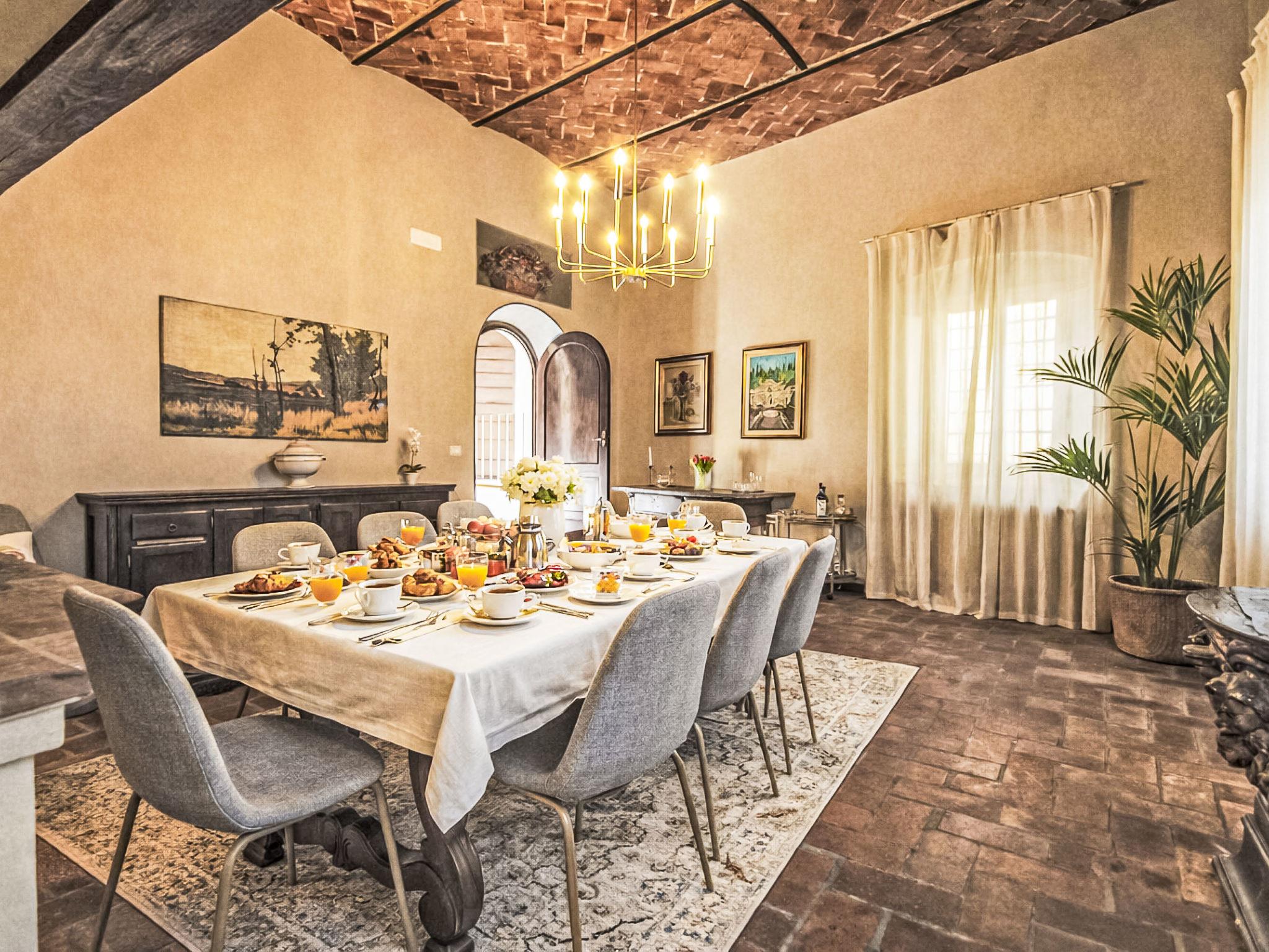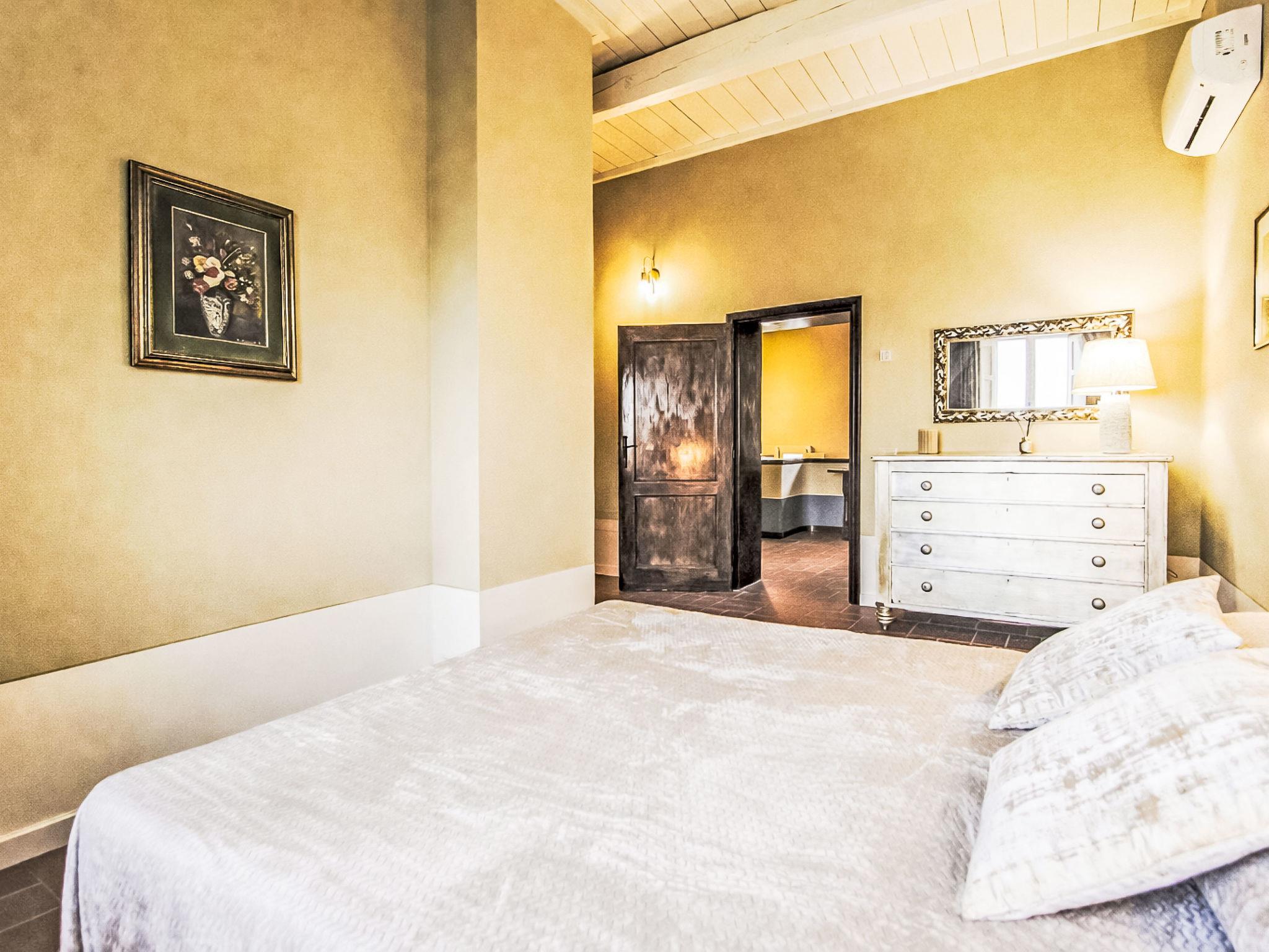 10-room house 250 m2 on 2 levels, on the upper ground floor. Renovated in 2025, stylish and cosy furnishings: entrance hall. Living room with satellite TV. Dining room. Living room. Exit to the terrace. Living/dining room with satellite TV. Large kitchen (5 hot plates, oven, dishwasher, toaster, kettle, microwave, freezer, electric coffee machine) with dining table. Sep. WC. On the lower ground floor: 1 room with 1 french bed (140 cm, length 190 cm), air conditioning. 1 room with 1 double bed and air conditioning. 2 showers/bidet/WC. Upper floor: 1 room with 1 double bed, shower/bidet/WC and air conditioning. 1 room with 1 double bed, shower/bidet/WC and air conditioning. 1 room with 1 double bed, shower/bidet/WC and air conditioning. 1 room with 2 beds, shower/bidet/WC and air conditioning. Large terrace 20 m2, roofed. Terrace furniture, barbecue. Very beautiful, of the countryside. Facilities: washing machine, iron, mosquito net, children's high chair, baby cot for up to 2 year olds, hair dryer. Internet (WiFi, free). Suitable for families. Maximum 1 pet/ dog allowed. No internal connecting door between the separated properties. IT047012B5NFRBJ2HH