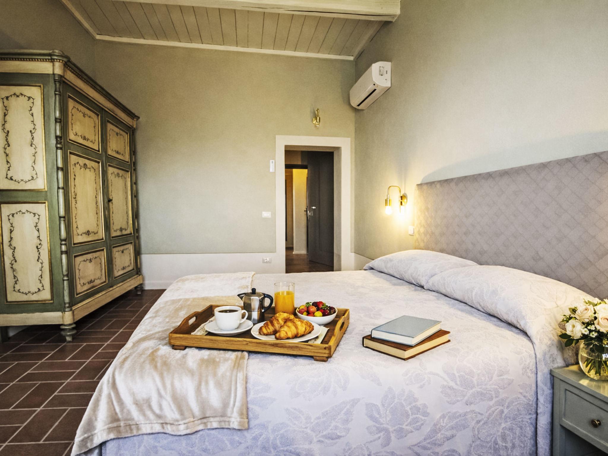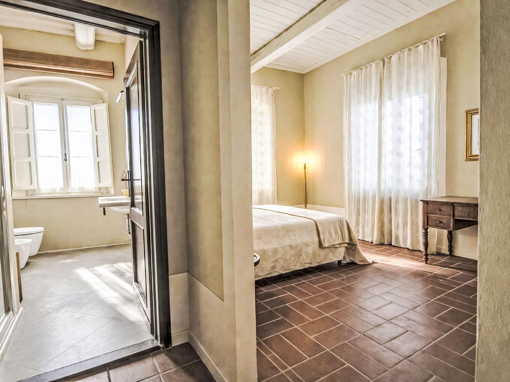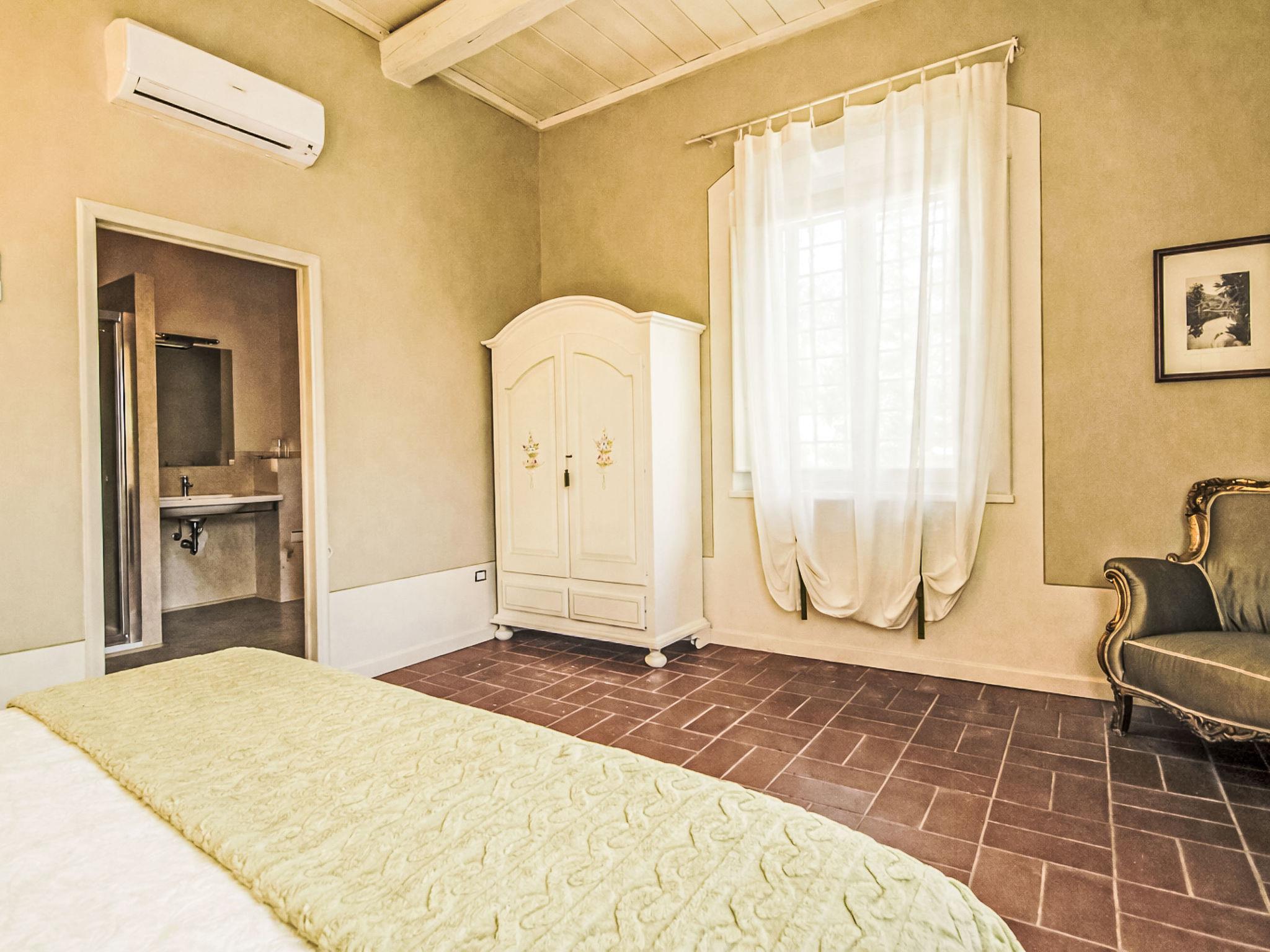 country house "Villa Casale Belvedere", 250 m a.s.l., detached, renovated in 2025. Property composed of main house and outbuilding 4.4 km from the centre of Monsummano Terme, 38 km from the centre of Lucca, 70 km from the centre of Firenze, in a quiet, sunny position on top of a hill, in the countryside. Private: terraced garden, 1 ha (fenced), swimming pool (11 x 8 m, depth 100 - 150 cm, seasonal availability: 01.May. - 30.Oct.). Outdoor shower, garden furniture, barbecue, pool maintenance by the owner/gardener. In the house: central heating system, heating to be paid on the spot, heating available only from 01.Nov. - 27.Mar.. Cook on request (extra). Parking. Shop 5 km, supermarket 5 km, bus stop 5 km, sandy beach "Versilia" 60 km, thermal baths "Grotta Giusti" 5.7 km. Golf course (18 hole) 10 km. Nearby attractions: Montecatini Terme 6.8 km, Pistoia 15 km, Montecarlo, Vinci 20 km, Collodi 25 km, San Miniato 30 km, Pisa 50 km.