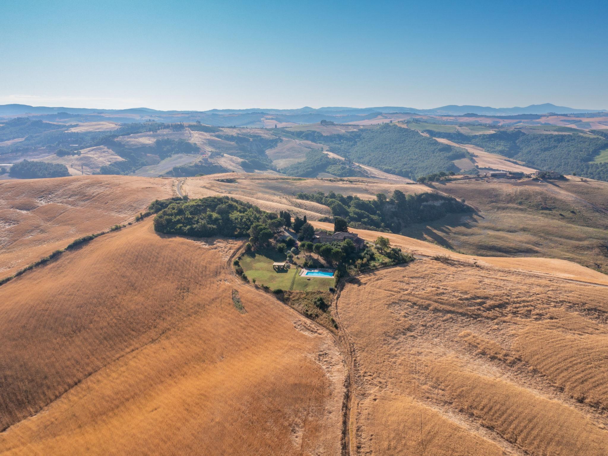 Montalcino: Country house "Podere San Giuseppe", renovated, surrounded by fields and vineyards. 6 apartments in the residence. 7.5 km from the centre of Buonconvento, 16 km from the centre of Montalcino, in a sunny position on top of a hill, in the countryside. For shared use: natural state property, swimming pool (8 x 16 m, depth 140 - 140 cm, seasonal availability: 01.Apr. - 30.Oct.). Children's pool, outdoor shower, terrace, pool maintenance by the owner/gardener. In the house: reception, WiFi, washing machine. Linen change (suppl. charge extra). Room cleaning on request (extra). Cook on request (extra). 3 km long bumpy motor access to the grounds. Parking on the premises. Shop 7.5 km, grocery 7.5 km, supermarket 7.5 km, restaurant 7.5 km, bus stop "Buonconvento" 7.5 km, railway station "Buonconvento" 7.5 km. Nearby attractions: Siena 35 km, Pienza 35 km, Montepulciano 50 km. Please note: baby equipment (included). Suitable for events. The photo is just an example. All houses/apartments are individually designed/furnished. Obligation to wear bathing caps.