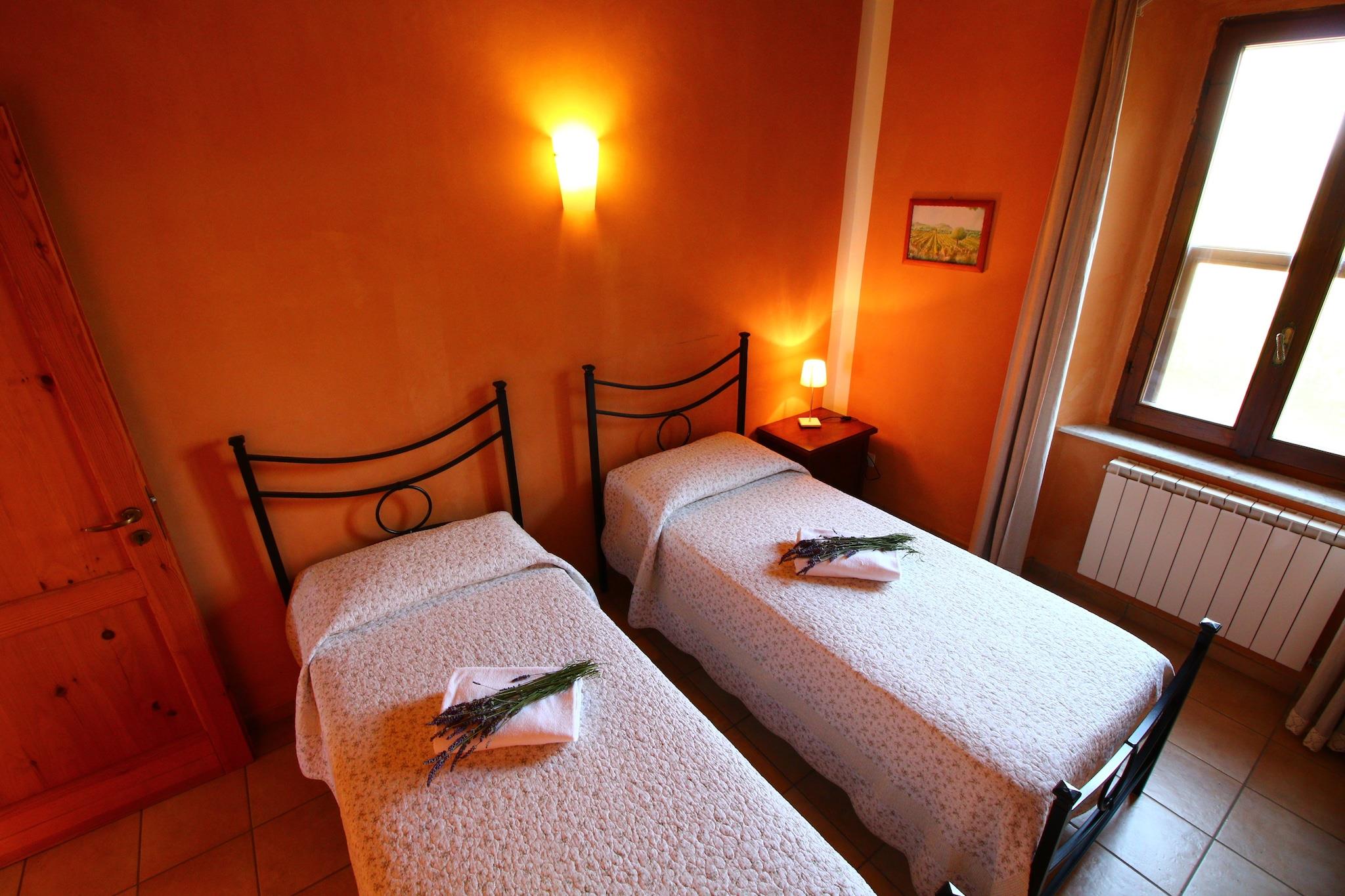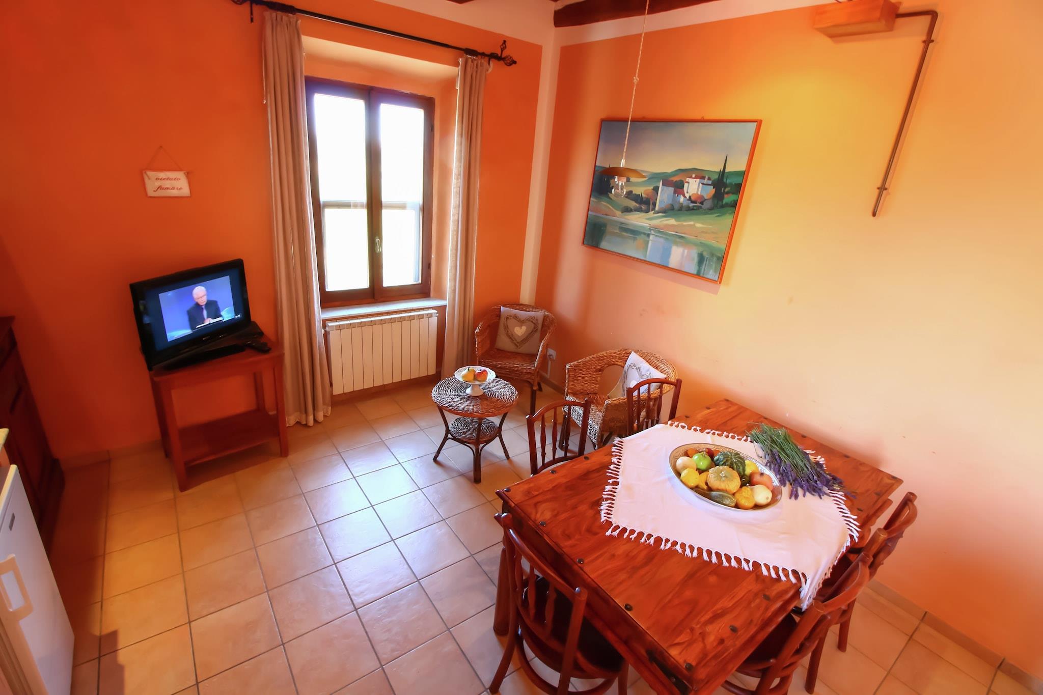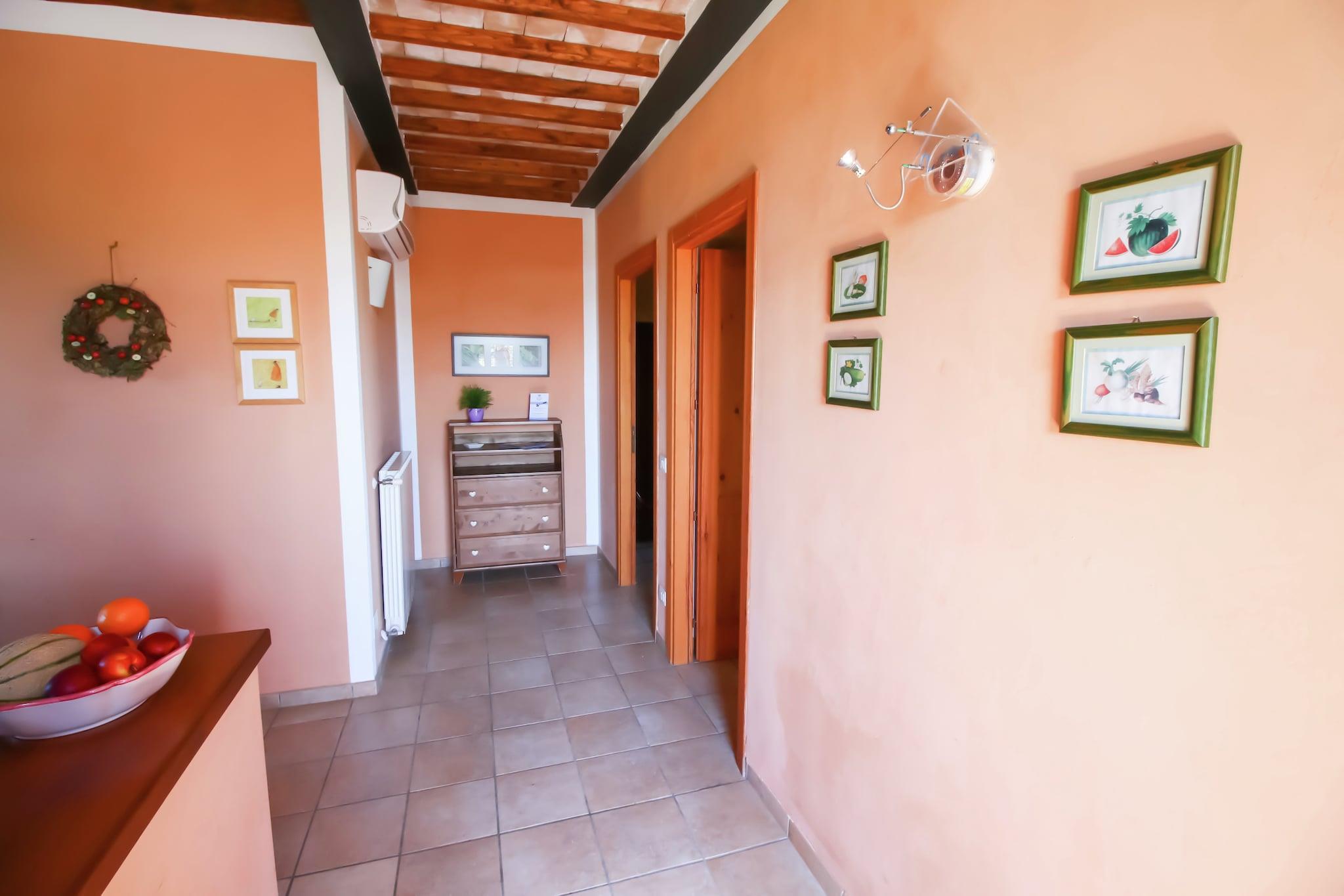 Detta bondgårdshus med 2 sovrum, beläget i Montalto di Castro, rymmer 4 personer. Lämpligt för familjer, gästerna kan ta ett dopp i den gemensamma poolen och använda gratis WiFi på denna husdjursvänliga fastighet. Du kan promenera ner till stadens centrum, 500 meter bort, där du också hittar flera butiker och restauranger att utforska. Om du vill tillbringa din dag i solen med sand kan du gå ner till havet, 3 km bort. Gästerna kan koppla av här och njuta av lugnet på landsbygden. En värmeanläggning finns tillgänglig för värme och luftkonditionering finns också tillgänglig. För rekreation kan gästerna spela ett spel på bordtennisbordet eller ta en promenad runt verandan. Denna barnvänliga fastighet har också en barnsäng och lekutrustning, medan en spjälsäng finns tillgänglig mot en liten avgift. Köket är utrustat med en ugn. Kollektivtrafik finns 2 km bort.