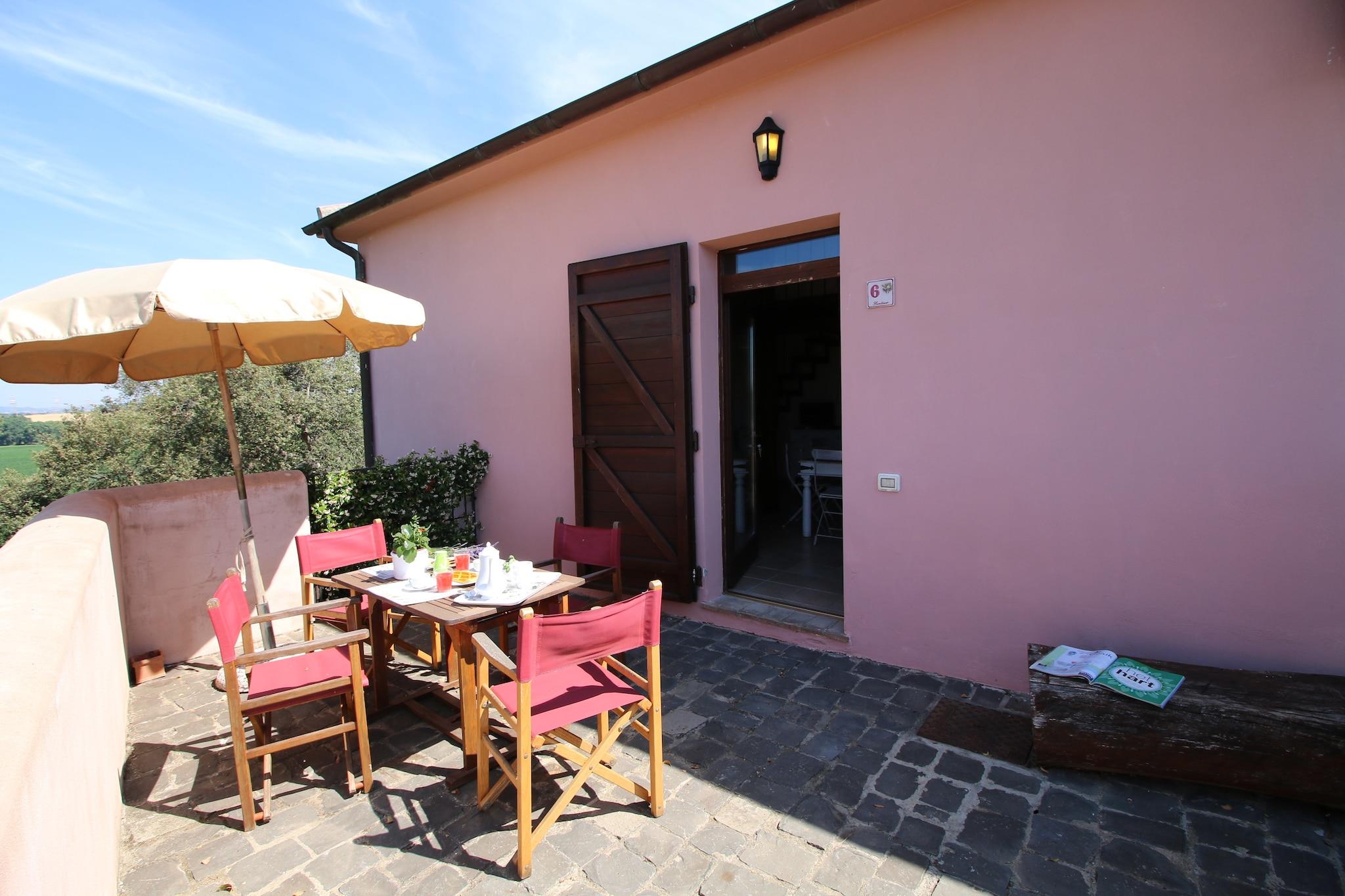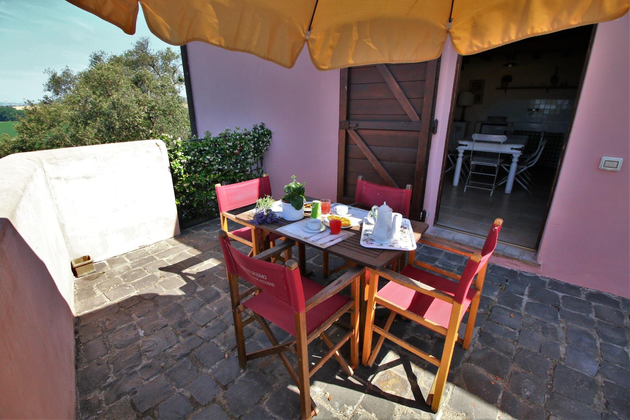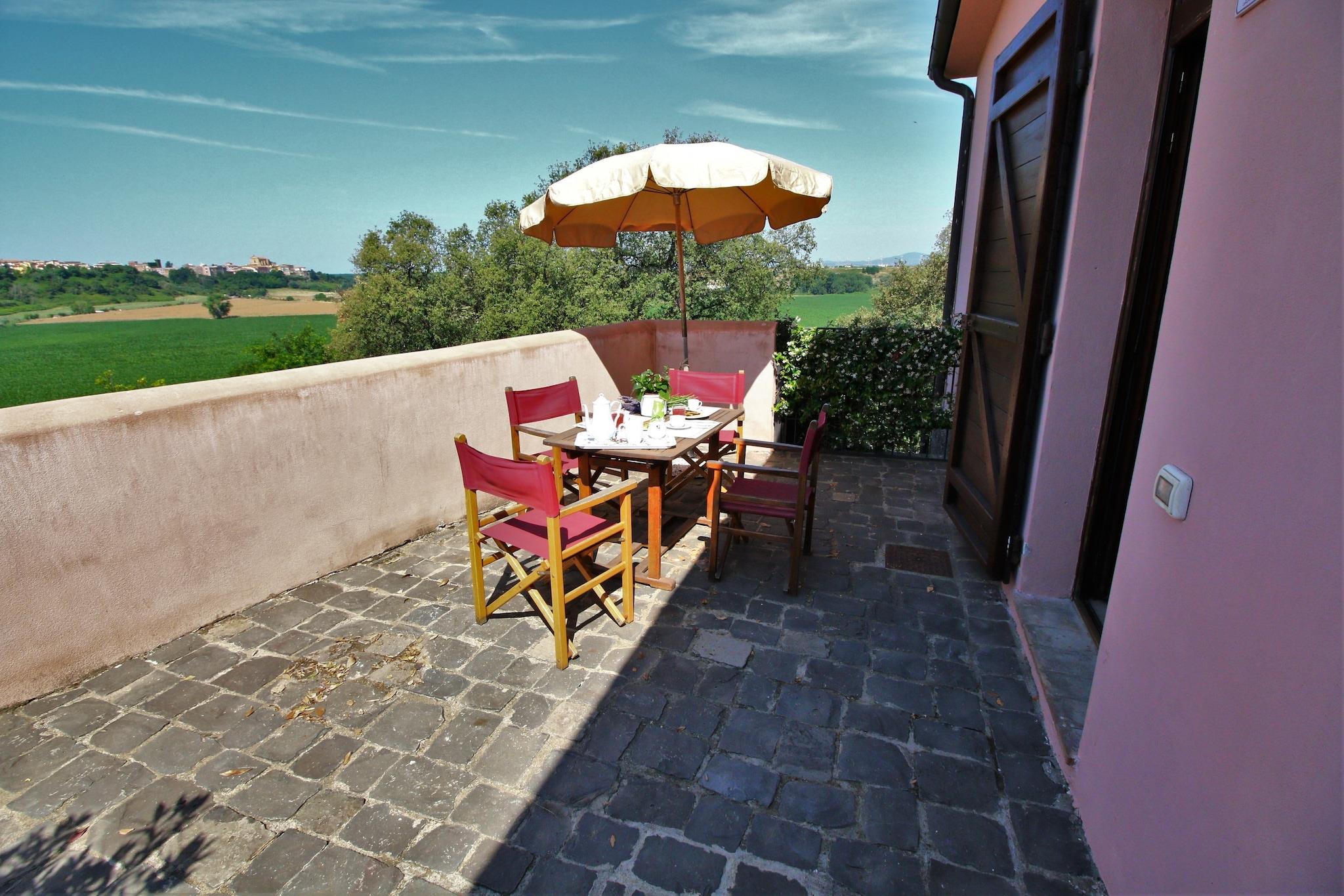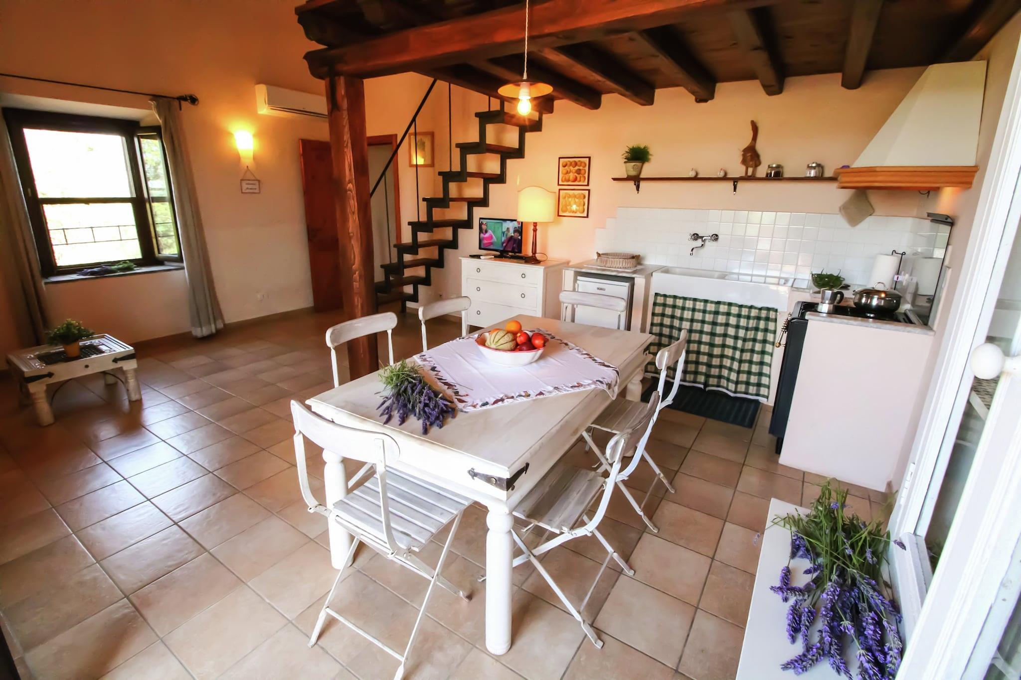 Välkommen till denna mysiga bondgårdslägenhet belägen på den fridfulla landsbygden i Montalto di Castro, Lazio. Perfekt för en familj eller en liten grupp på fyra personer, huset har ett sovrum på bottenvåningen med en dubbelsäng, ett rymligt kök med TV och ett badrum med all nödvändig utrustning. Den övre våningen i galleristil har två enkelsängar, perfekt för barn eller vänner. Beläget på en charmig lantgård, erbjuder detta boende komfort och karaktär för en avkopplande vistelse. Gästerna har tillgång till en rad gemensamma bekvämligheter, inklusive en stor pool (öppen maj–september), en soldränkt terrass och välskötta trädgårdsmöbler för att njuta av måltider utomhus. Familjer kommer att uppskatta lekutrustningen och bordtennisbordet, medan bekvämligheter som luftkonditionering, värme och en gemensam tvättmaskin säkerställer komfort året runt. Privat parkering finns också på plats. Omgivet av natursköna landskap ligger huset bara 3 km från havet och 5 km från den livliga stadskärnan. Utforska närliggande stränder, njut av promenader längs sjön Bolsenasjön (20 km) eller ät på lokala restauranger bara 4 km bort. Med enkel tillgång till kollektivtrafik (1 km) är du väl positionerad för både avkoppling och äventyr längs Lazios kust.