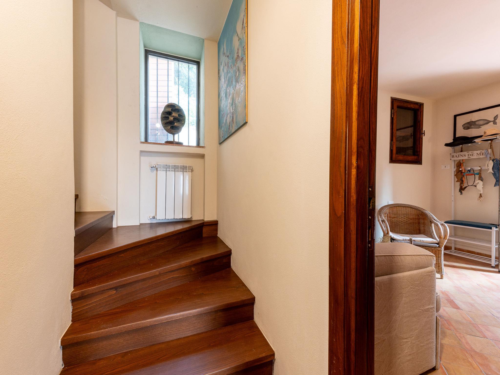 The property is located within the Cala Piccola District, a group of villas overlooking one of the most beautiful seas of the Argentario, with private access to the sea (rock). Beautiful, comfortable villa "Cala Piccola", 3 storeys, surrounded by trees. Property composed of main house and outbuilding, Comprensorio Cala Piccola 7 km from the centre of Porto Santo Stefano, in a quiet, sunny position on a slope, residential area (villas), 1.2 km from the sea, in the countryside. Private: beautiful, well-kept terraced garden with flowers and trees. Terrace, garden furniture, barbecue. In the house: sun terrace. Stepped path (40 steps) to the house. Parking (for 2 cars) on the premises. Supermarket 7 km, restaurant 250 m, bar 1.2 km, sandy beach "Giannella" 11 km, shingle beach "Cala Piccola" 1.2 km, thermal baths "Saturnia" 60 km. Golf course (18 hole) 14 km. Nearby attractions: Orbetello 16 km, Talamone 30 km, Porto Ercole 18 km, Capalbio / Giardino dei Tarocchi 40 km. Hiking paths: Parco Naturale della Maremma 45 km. Please note: car recommended, no lift. Not suitable for small children. It is not allowed to organise events. Guests have a sun umbrella and two deckchairs at their disposal in the exclusive bathing establishment of Cala Piccola, with bar and snack bar and free shuttle service. Opening times June-September. About 300m from the house is the Boutique Hotel in Cala Piccola, with a restaurant open from breakfast to dinner.